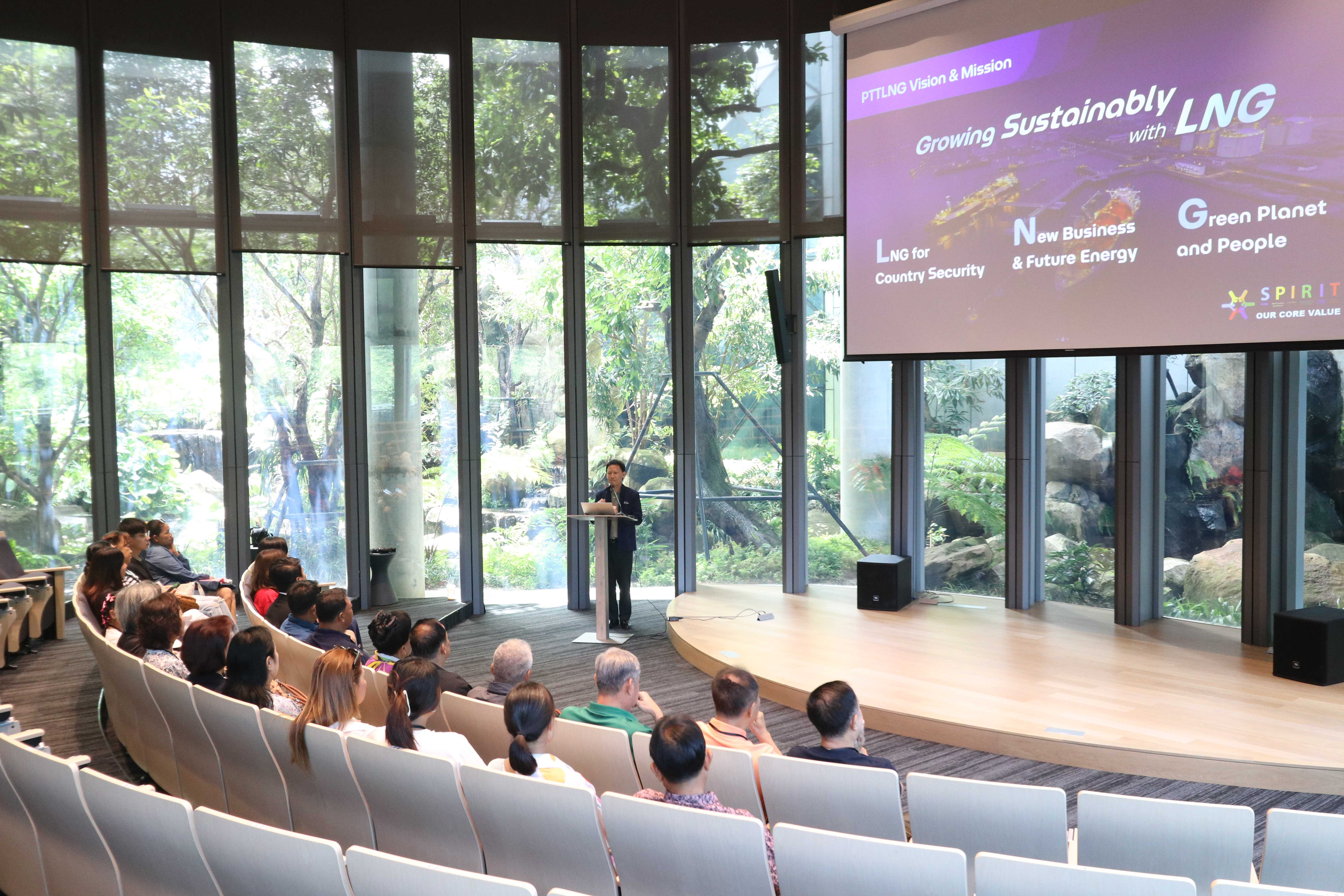 วันที่ 17 พฤษภาคม พ.ศ. 2568 PTTLNG ให้การต้อนรับบริษัท ฉัตรการช่าง แหลมฉบัง จำกัด และคณะ  เนื่องในโอกาสเยี่ยมชม PTTLNG เพื่อศึกษาดูงานระบบการบริหารจัดการที่ดีของบริษัทฯ และระบบการจัดการพลังงานควบคู่กับการอนุรักษ์สิ่งแวดล้อมได้อย่างมีประสิทธิภาพ โดยการนำความเย็นจากกระบวนการแปรสภาพก๊าซธรรมชาติเหลว (LNG) มาใช้ให้เกิดประโยชน์สูงสุด ควบคู่กับการอนุรักษ์สิ่งแวดล้อมได้อย่างยั่งยืน โดยคณะฯได้รับฟังการบรรยายสรุป “ภาพรวมการดำเนินธุรกิจ PTTLNG” โดย คุณกิติภูมิ ตั้งวงษ์พิมุข ผู้จัดการส่วนสื่อสารองค์กรและกิจการเพื่อสังคม หลังจากนั้นคณะฯได้เข้าเยี่ยมชมไม้เมืองหนาวภายในอาคารนิทรรศน์พรรณพฤกษา ศูนย์เลิศพนานุรักษ์ ที่นำพลังงานความเย็นจากก๊าซธรรมชาติเหลว (LNG) มาใช้ประโยชน์กับระบบปรับอากาศภายในอาคาร
