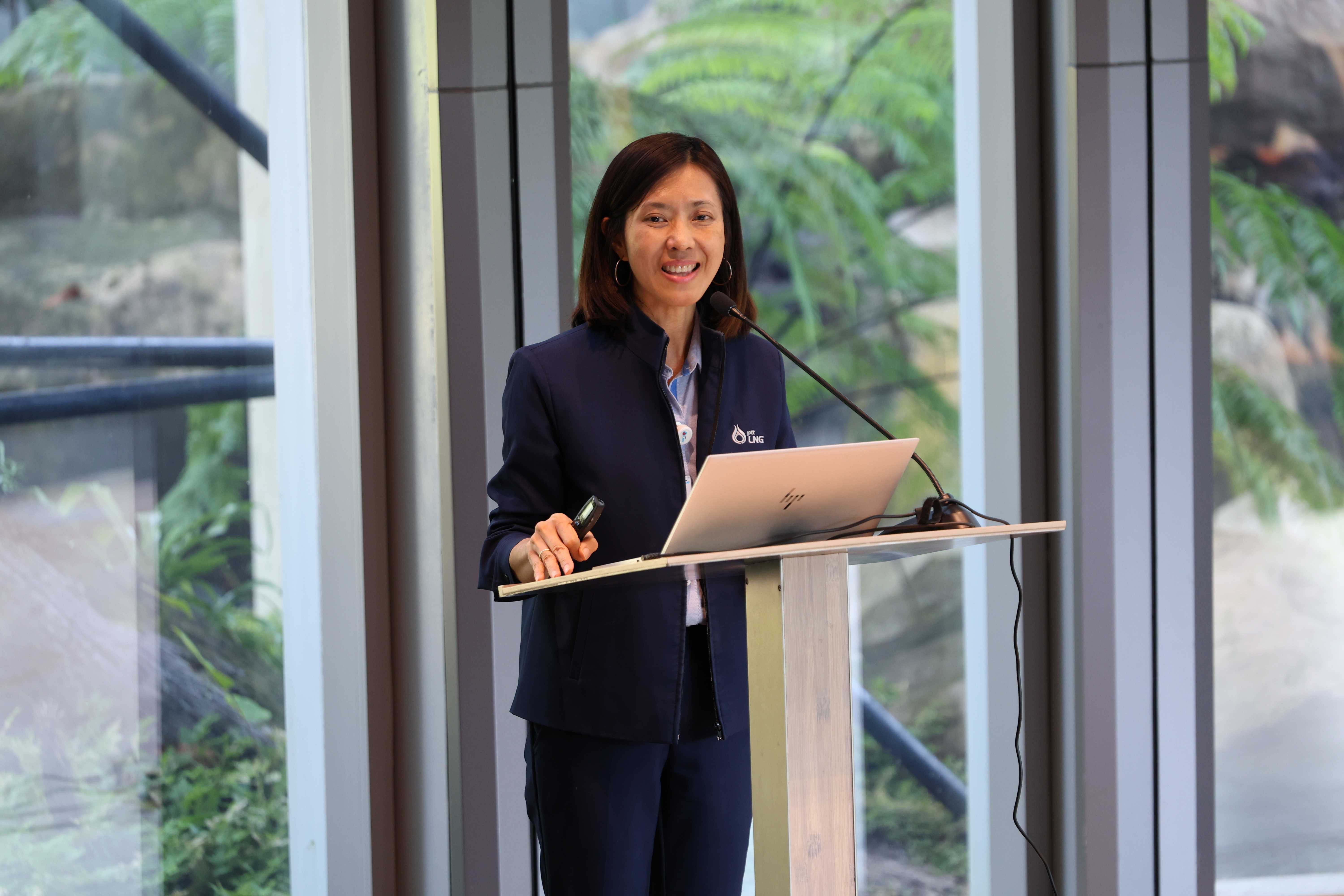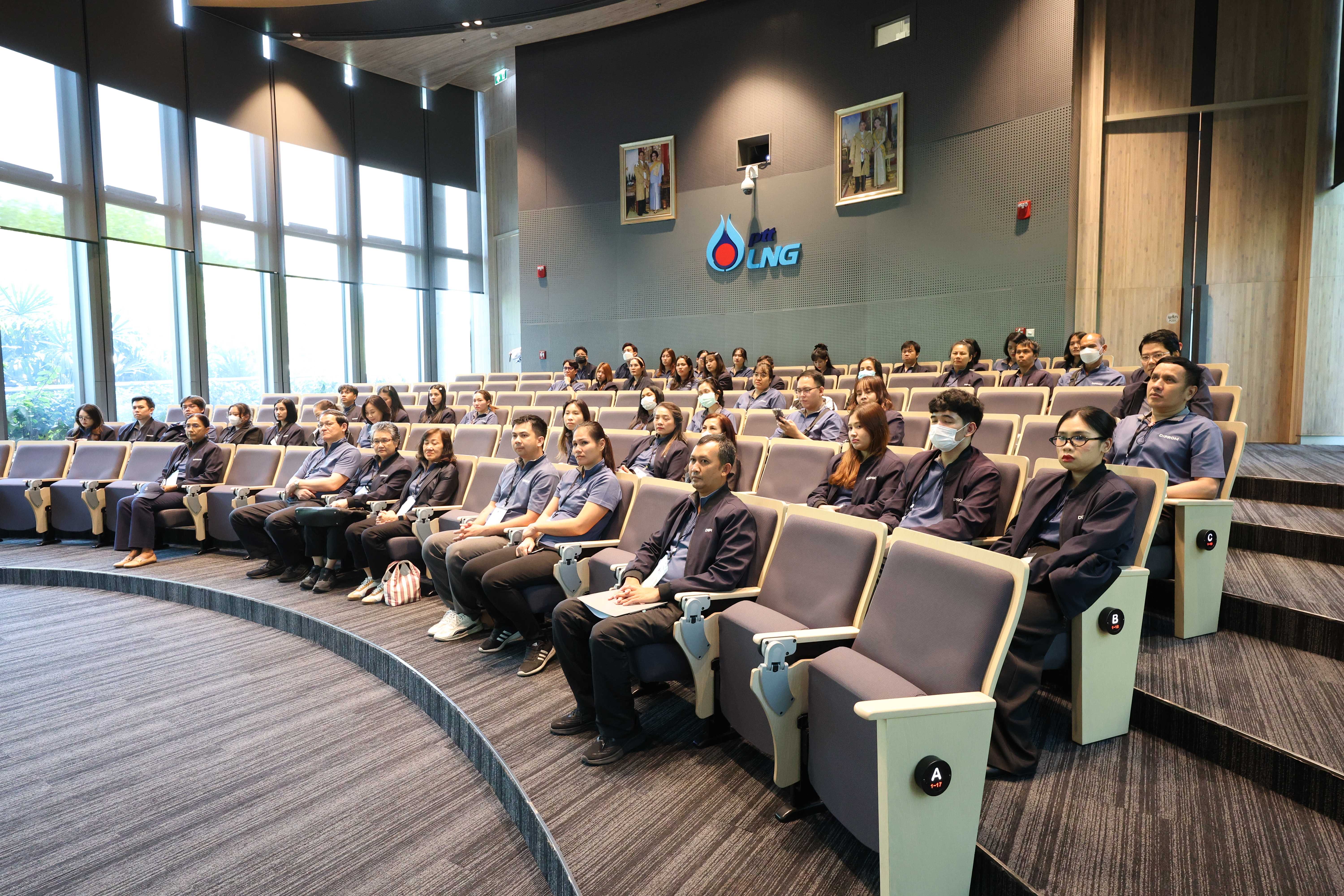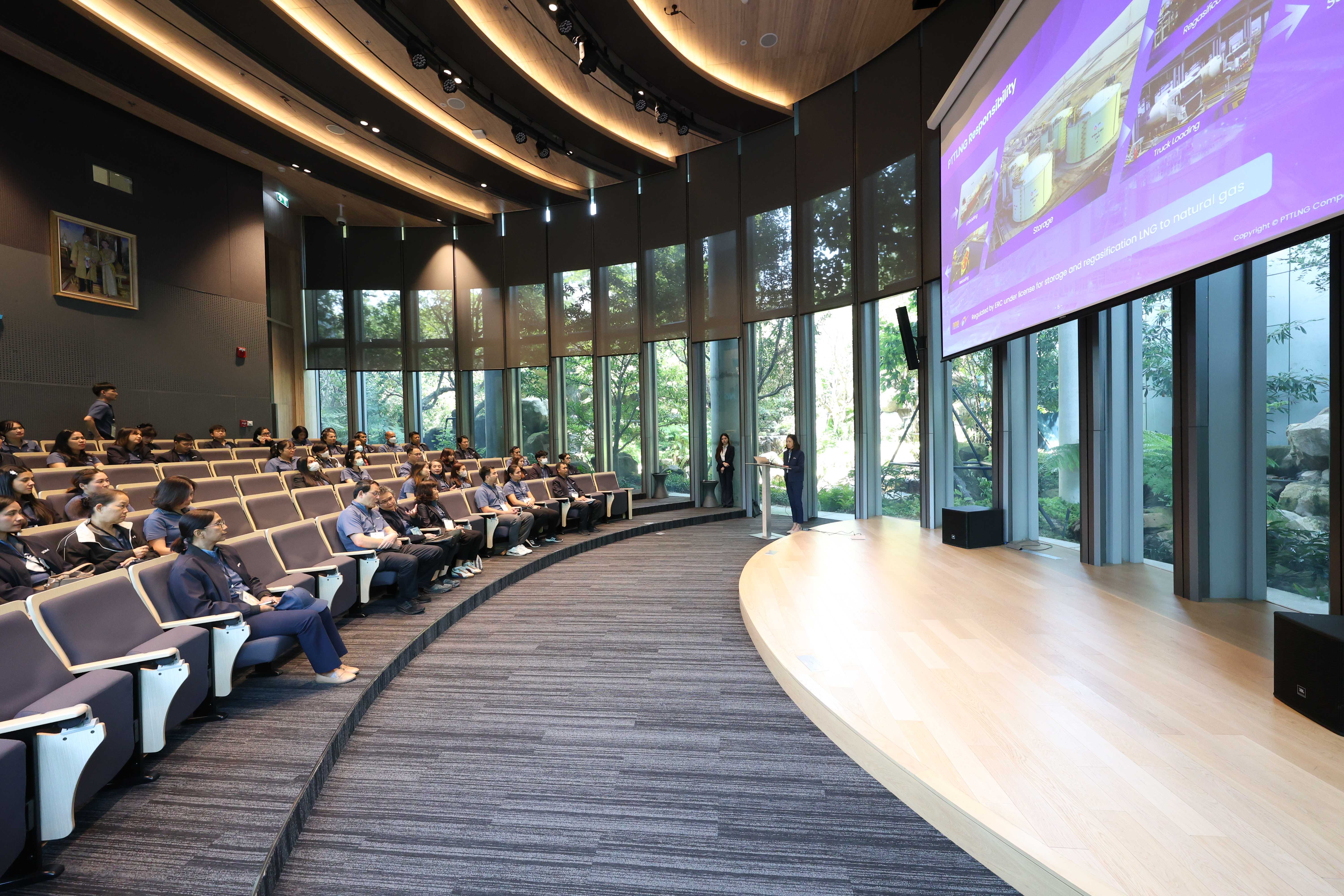 วันที่ 20 พฤษภาคม พ.ศ. 2568 PTTLNG ให้การต้อนรับคณะเจ้าหน้าที่ผู้เข้าร่วมโครงการ "การเสริมสร้างองค์ความรู้และเชื่อมโยงเครือข่ายด้านเทคโนโลยีดิจิทัลแก่เจ้าหน้าที่ผู้ปฏิบัติงาน" กองพัฒนาดิจิทัลอุตสาหกรรม กรมส่งเสริมอุตสาหกรรม เนื่องในโอกาสเยี่ยมชม PTTLNG เพื่อศึกษาดูงานด้านเทคโนโลยีดิจิทัลที่เพิ่มประสิทธิภาพในการดำเนินงานของบริษัท รวมถึงการบริหารจัดการพลังงานควบคู่กับการอนุรักษ์สิ่งแวดล้อมได้อย่างยั่งยืน โดยคณะได้รับฟังการบรรยายสรุป “ภาพรวมการดำเนินธุรกิจ PTTLNG” โดย คุณจุฑารัตน์ พิทักษ์วาทิน พนักงานประชาสัมพันธ์อาวุโส หลังจากนั้นคณะฯได้เข้าเยี่ยมชมไม้เมืองหนาวภายในอาคารนิทรรศน์พรรณพฤกษา ศูนย์เลิศพนานุรักษ์ ที่นำพลังงานความเย็นจากก๊าซธรรมชาติเหลว (LNG) มาใช้ประโยชน์กับระบบปรับอากาศภายในอาคาร