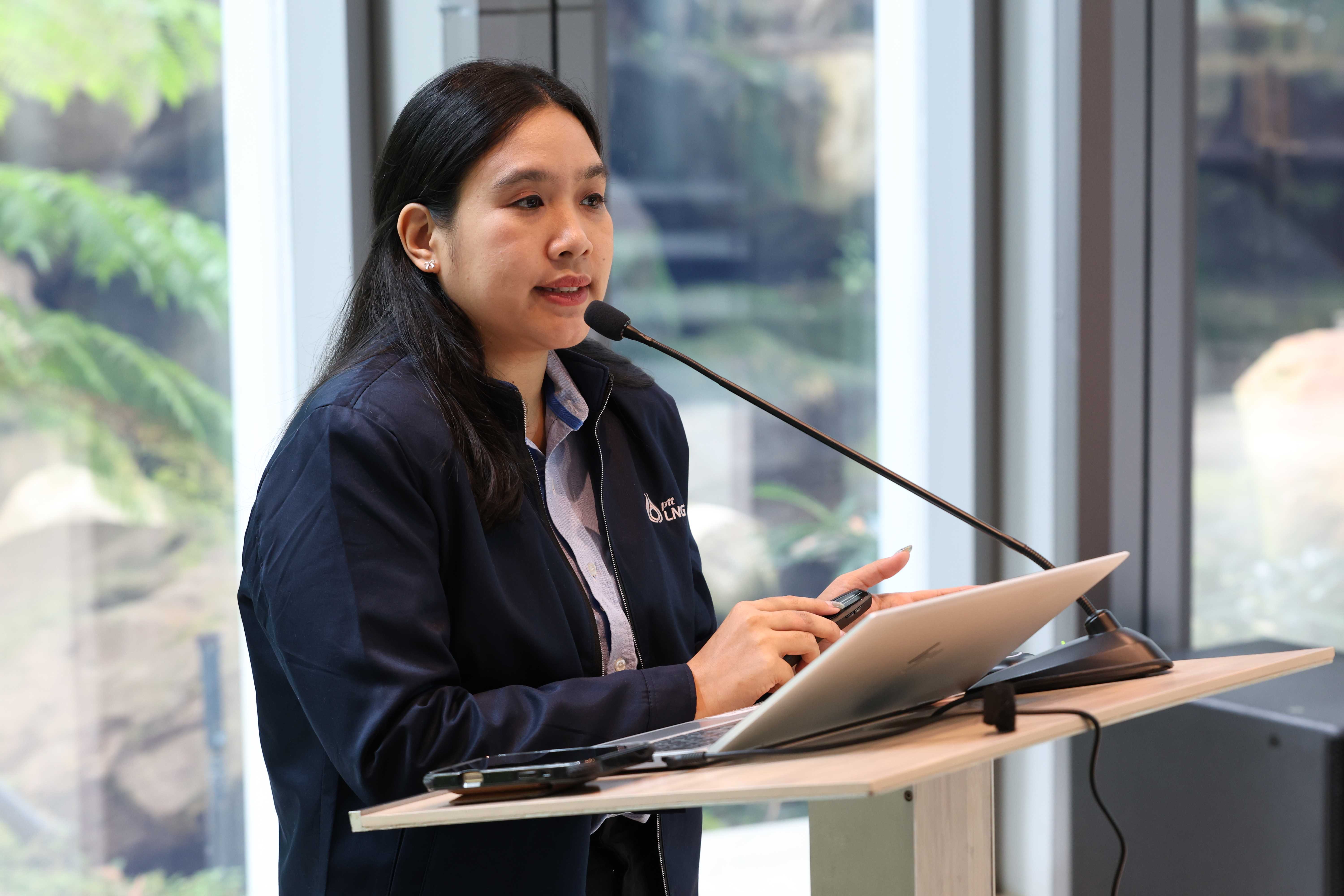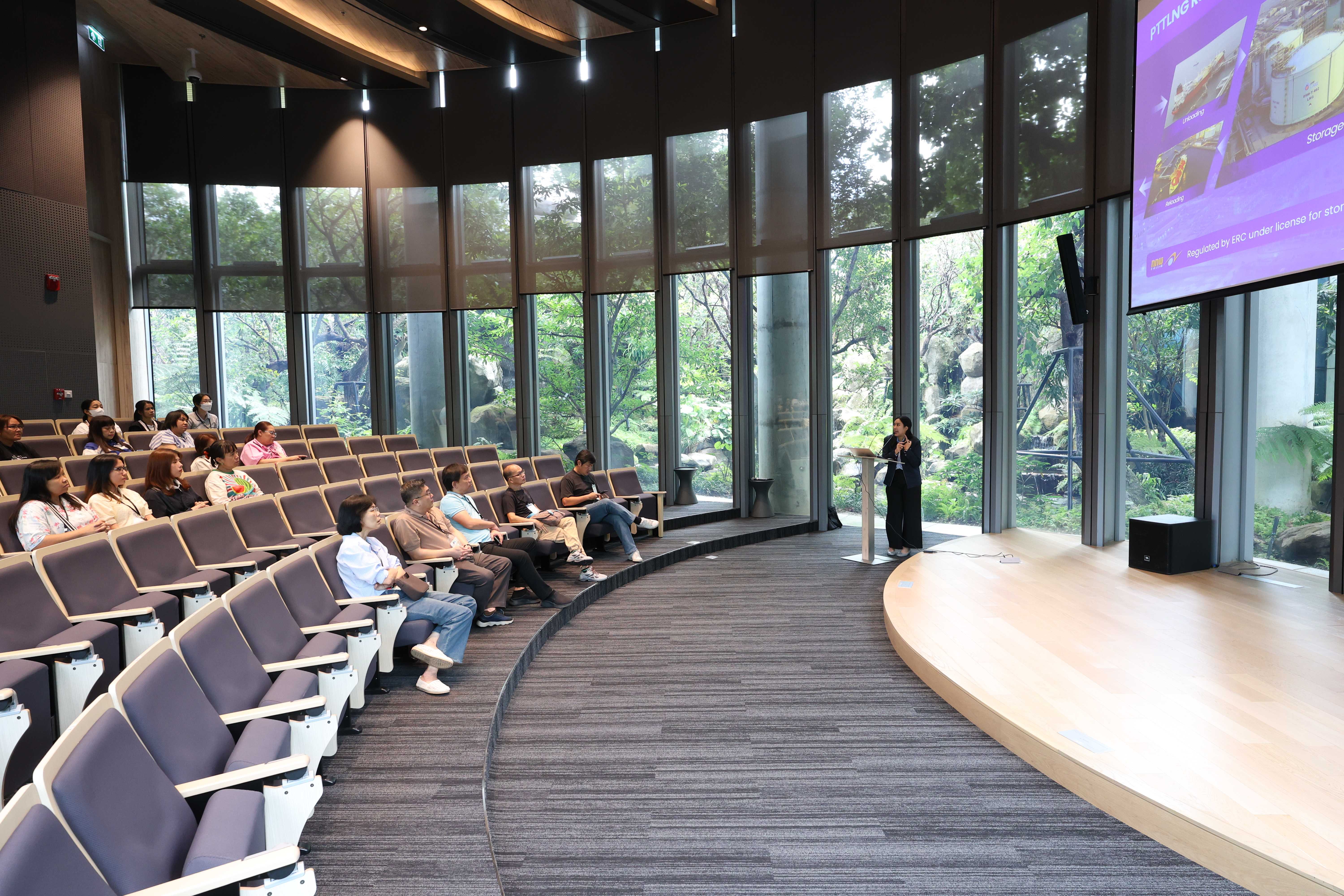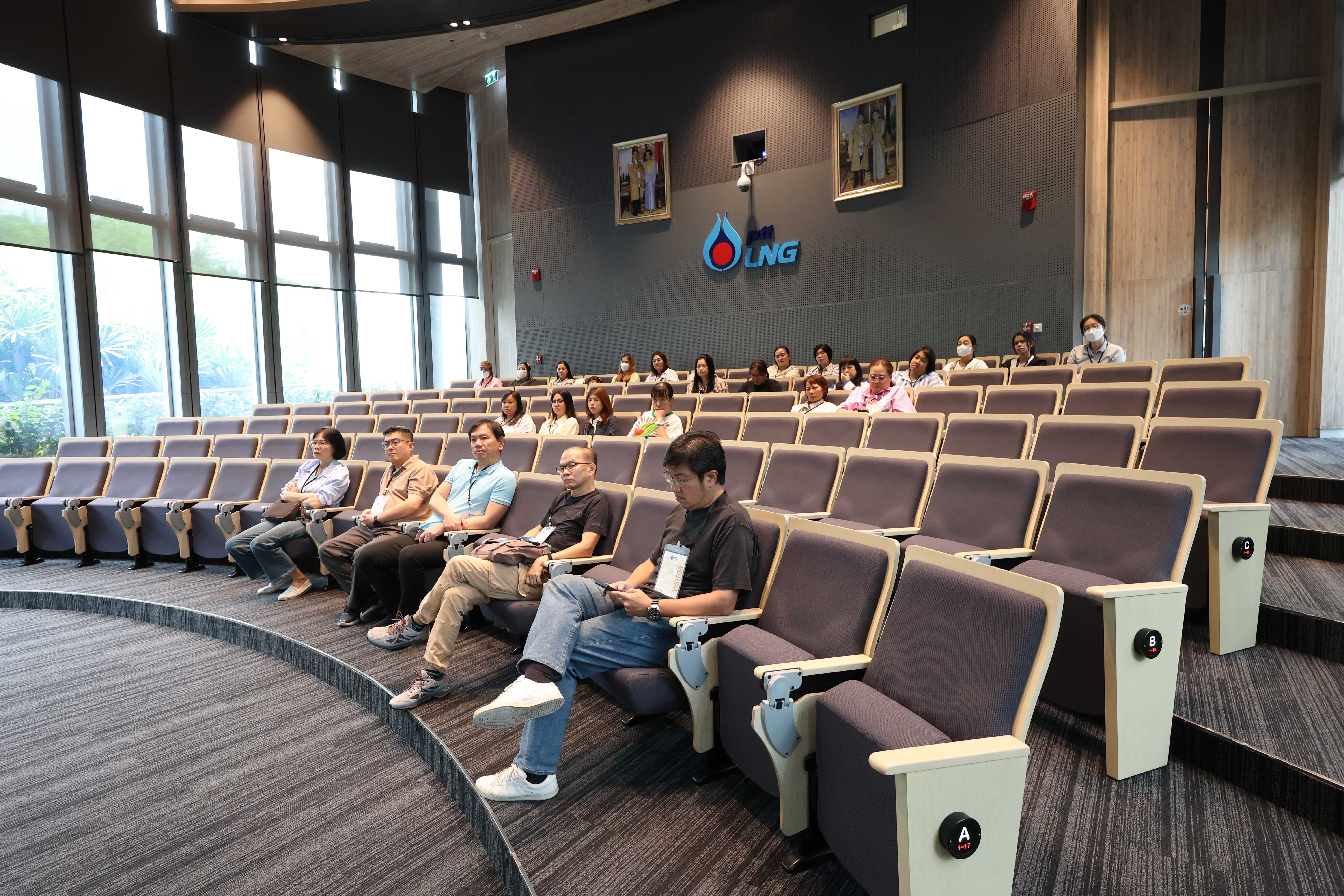 วันที่ 20 พฤษภาคม พ.ศ. 2568 PTTLNG ให้การต้อนรับคณะเจ้าหน้าที่ผู้เข้าร่วมโครงการ "การเสริมสร้างองค์ความรู้และเชื่อมโยงเครือข่ายด้านเทคโนโลยีดิจิทัลแก่เจ้าหน้าที่ผู้ปฏิบัติงาน" กองพัฒนาดิจิทัลอุตสาหกรรม กรมส่งเสริมอุตสาหกรรม เนื่องในโอกาสเยี่ยมชม PTTLNG เพื่อศึกษาดูงานด้านเทคโนโลยีดิจิทัลที่เพิ่มประสิทธิภาพในการดำเนินงานของบริษัท รวมถึงการบริหารจัดการพลังงานควบคู่กับการอนุรักษ์สิ่งแวดล้อมได้อย่างยั่งยืน โดยคณะได้รับฟังการบรรยายสรุป “ภาพรวมการดำเนินธุรกิจ PTTLNG” โดย คุณจุฑารัตน์ พิทักษ์วาทิน พนักงานประชาสัมพันธ์อาวุโส หลังจากนั้น คณะได้เข้าเยี่ยมชมไม้เมืองหนาวภายในอาคารนิทรรศน์พรรณพฤกษา ศูนย์เลิศพนานุรักษ์ ที่นำพลังงานความเย็นจากก๊าซธรรมชาติเหลว (LNG) มาใช้ประโยชน์กับระบบปรับอากาศภายในอาคาร