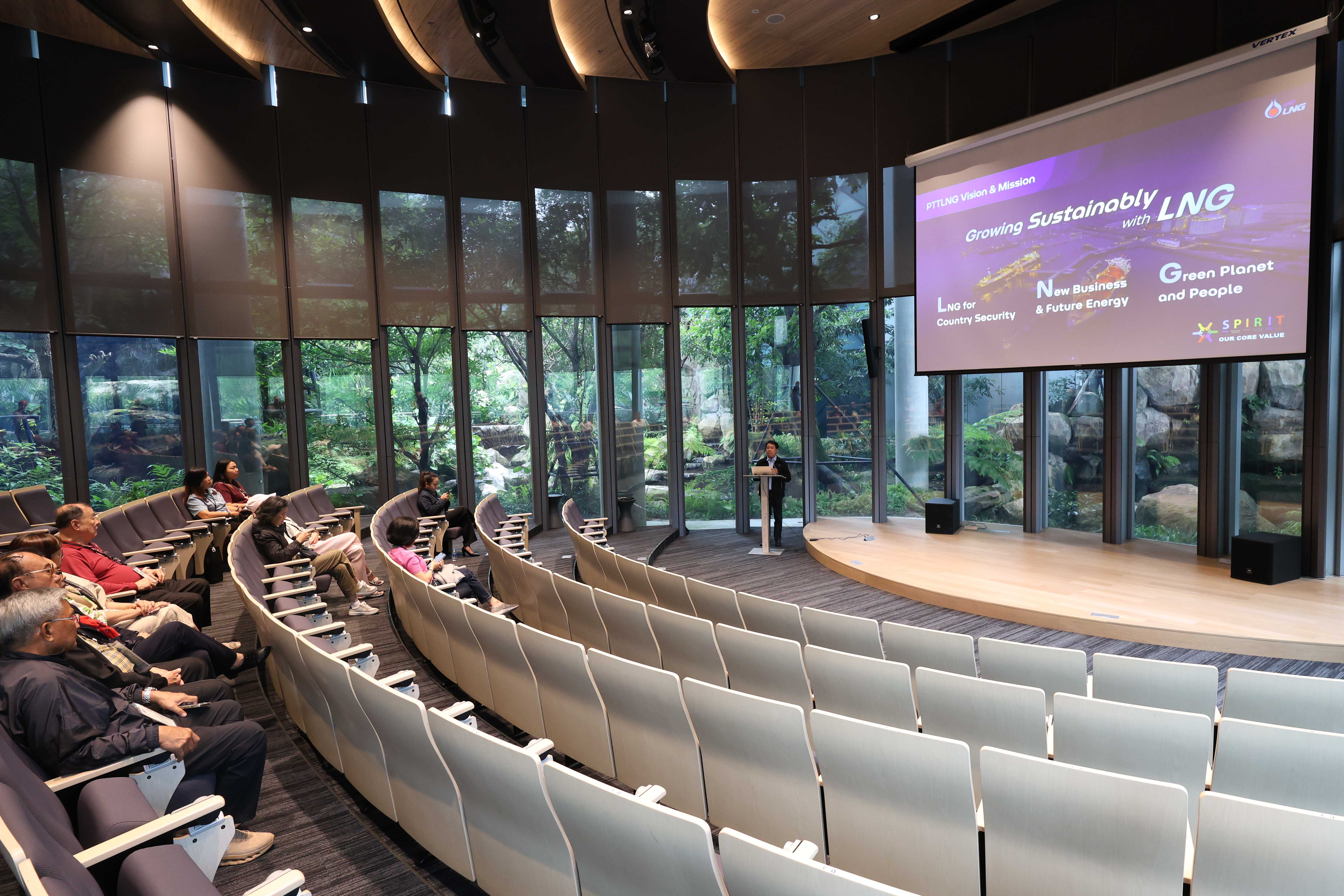 วันที่ 21 พฤษภาคม พ.ศ. 2568 PTTLNG ให้การต้อนรับคณะกรรมการ ที่ปรึกษา และจิตอาสาของมูลนิธิ ดร.พิชนี โพธารามิก เพื่อเด็กและคนชรา ร่วมกับ สมาคมวิศวกรหญิงไทย เนื่องในโอกาสเยี่ยมชม PTTLNG เพื่อศึกษาดูงานระบบการบริหารจัดการที่ดีของบริษัทฯ และระบบการจัดการพลังงานควบคู่กับการอนุรักษ์สิ่งแวดล้อมได้อย่างมีประสิทธิภาพ โดยการนำความเย็นจากกระบวนการแปรสภาพก๊าซธรรมชาติเหลว (LNG) มาใช้ให้เกิดประโยชน์สูงสุด ควบคู่กับการอนุรักษ์สิ่งแวดล้อมได้อย่างยั่งยืน โดยคณะได้รับฟังการบรรยายสรุป “ภาพรวมการดำเนินธุรกิจ PTTLNG” โดย คุณนรา โตแย้ม ผู้จัดการส่วนบริการกลาง จัดหาและคลังพัสดุ หลังจากนั้น คณะได้เข้าเยี่ยมชมไม้เมืองหนาวภายในอาคารนิทรรศน์พรรณพฤกษา ศูนย์เลิศพนานุรักษ์ ที่นำพลังงานความเย็นจากก๊าซธรรมชาติเหลว (LNG) มาใช้ประโยชน์กับระบบปรับอากาศภายในอาคาร