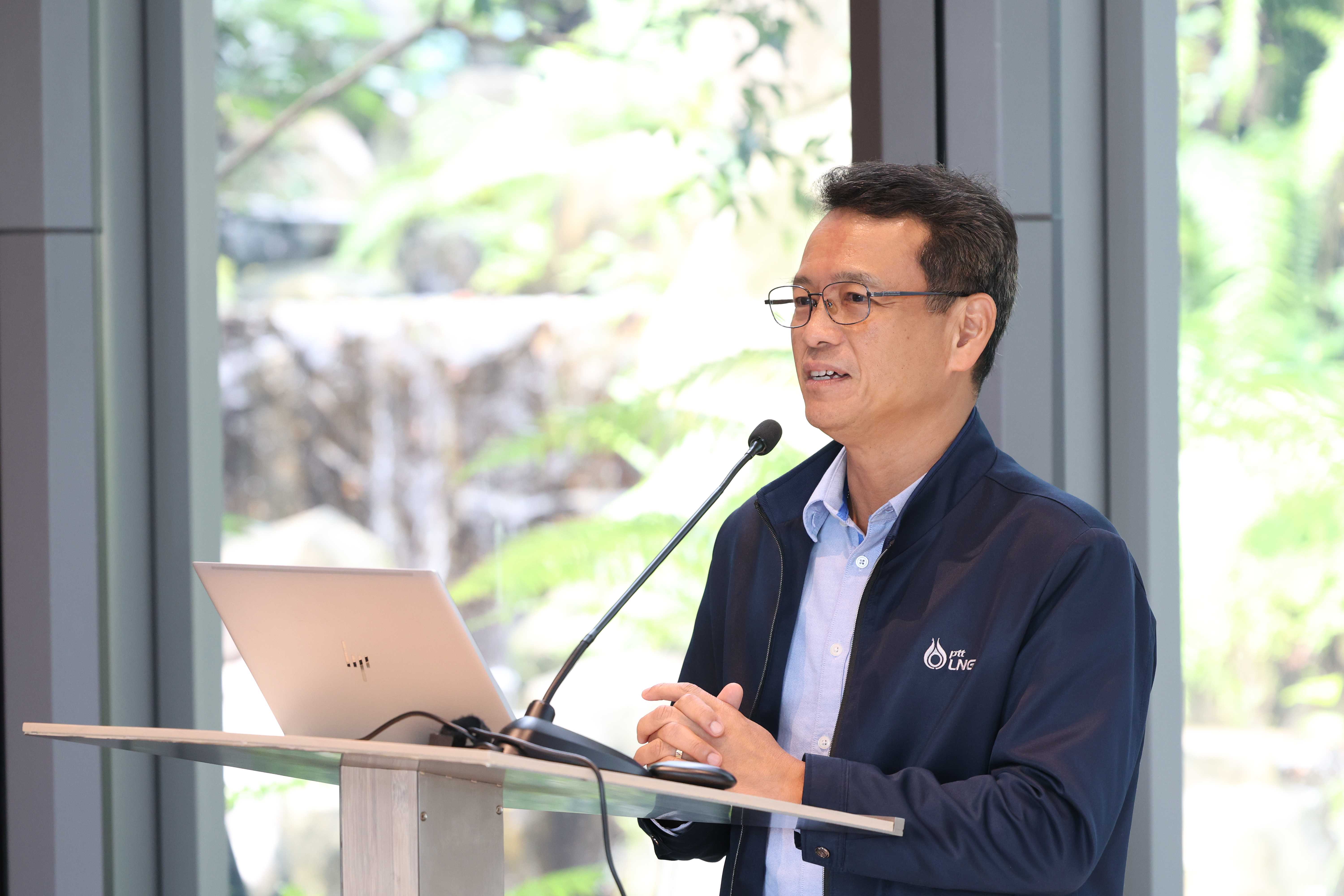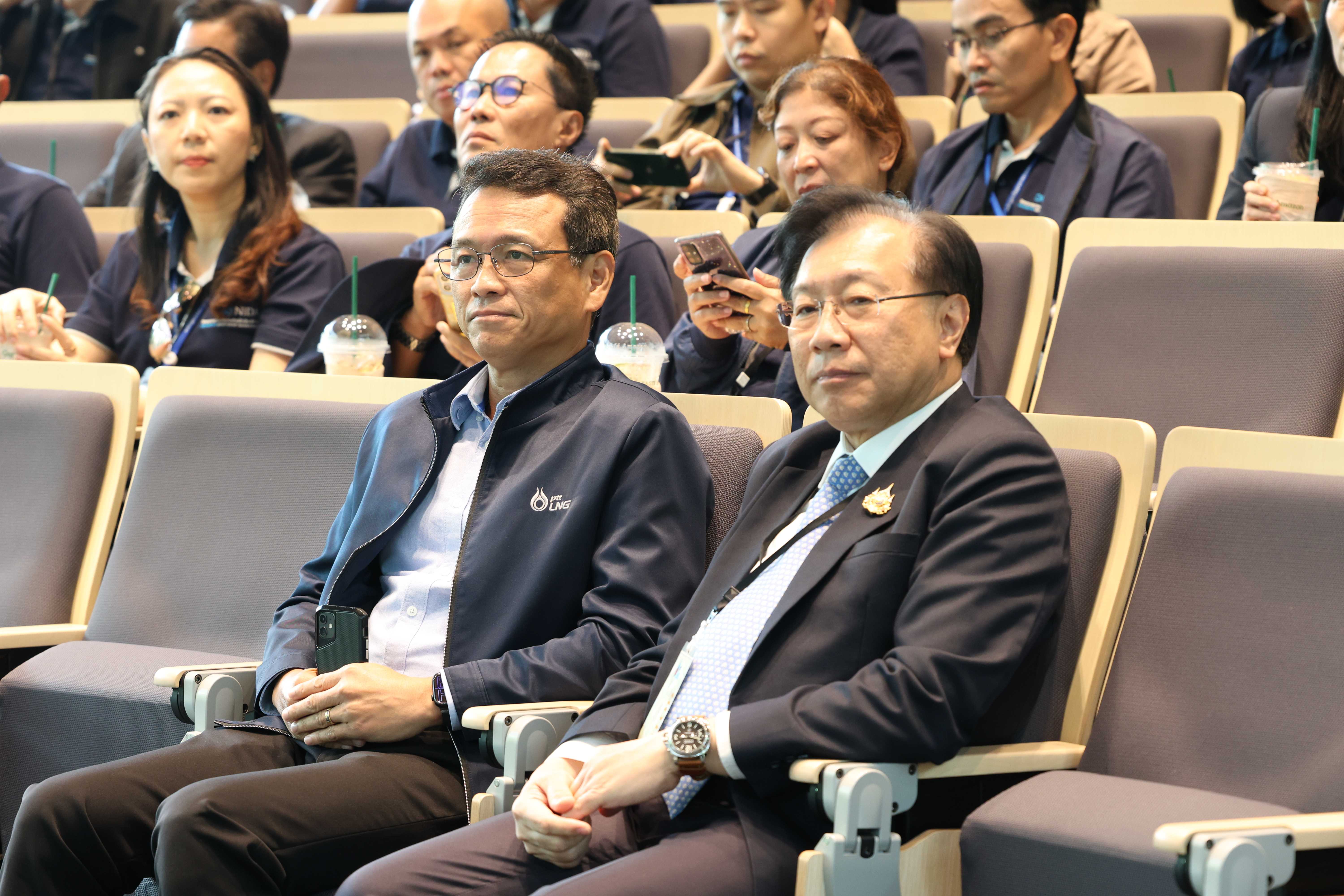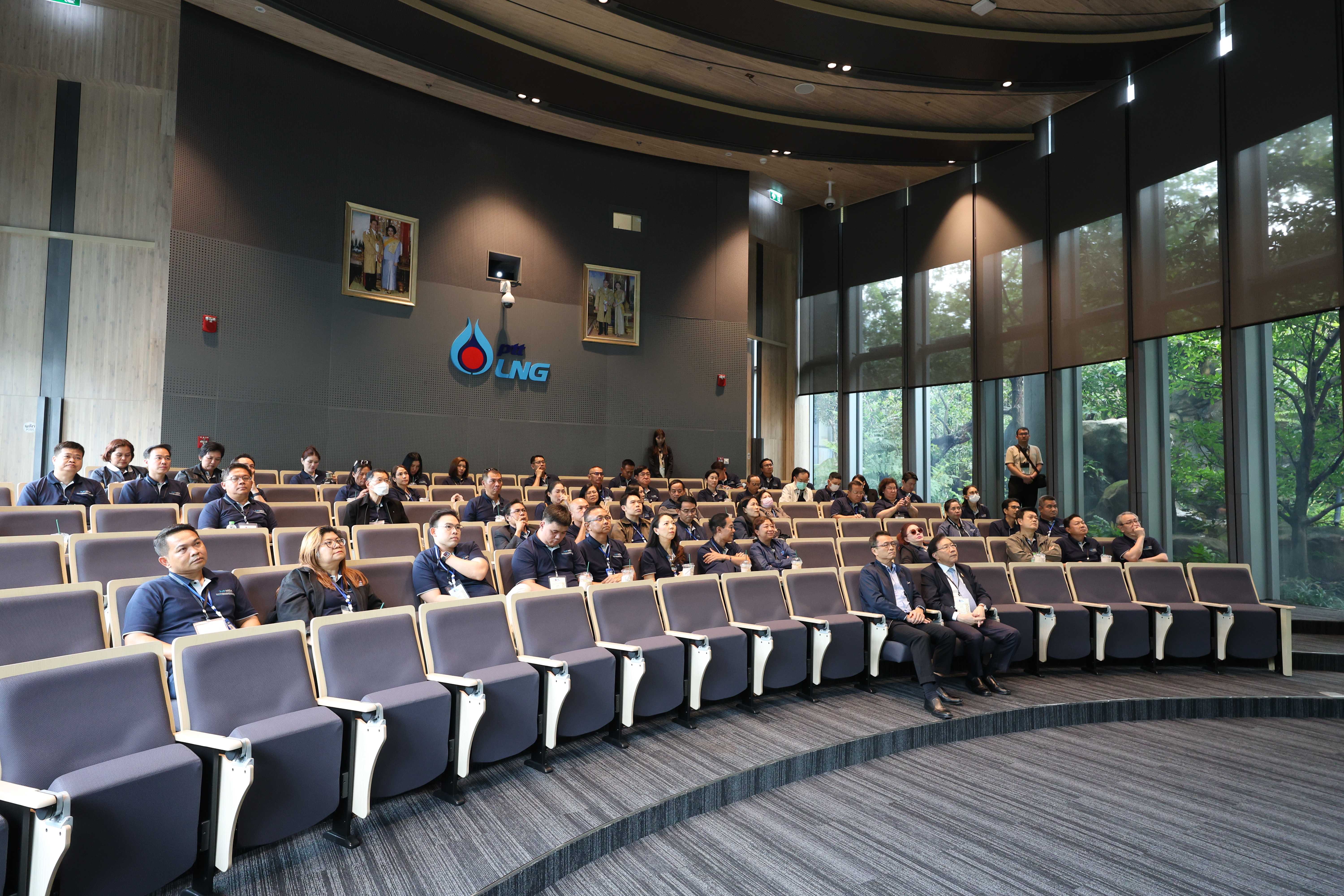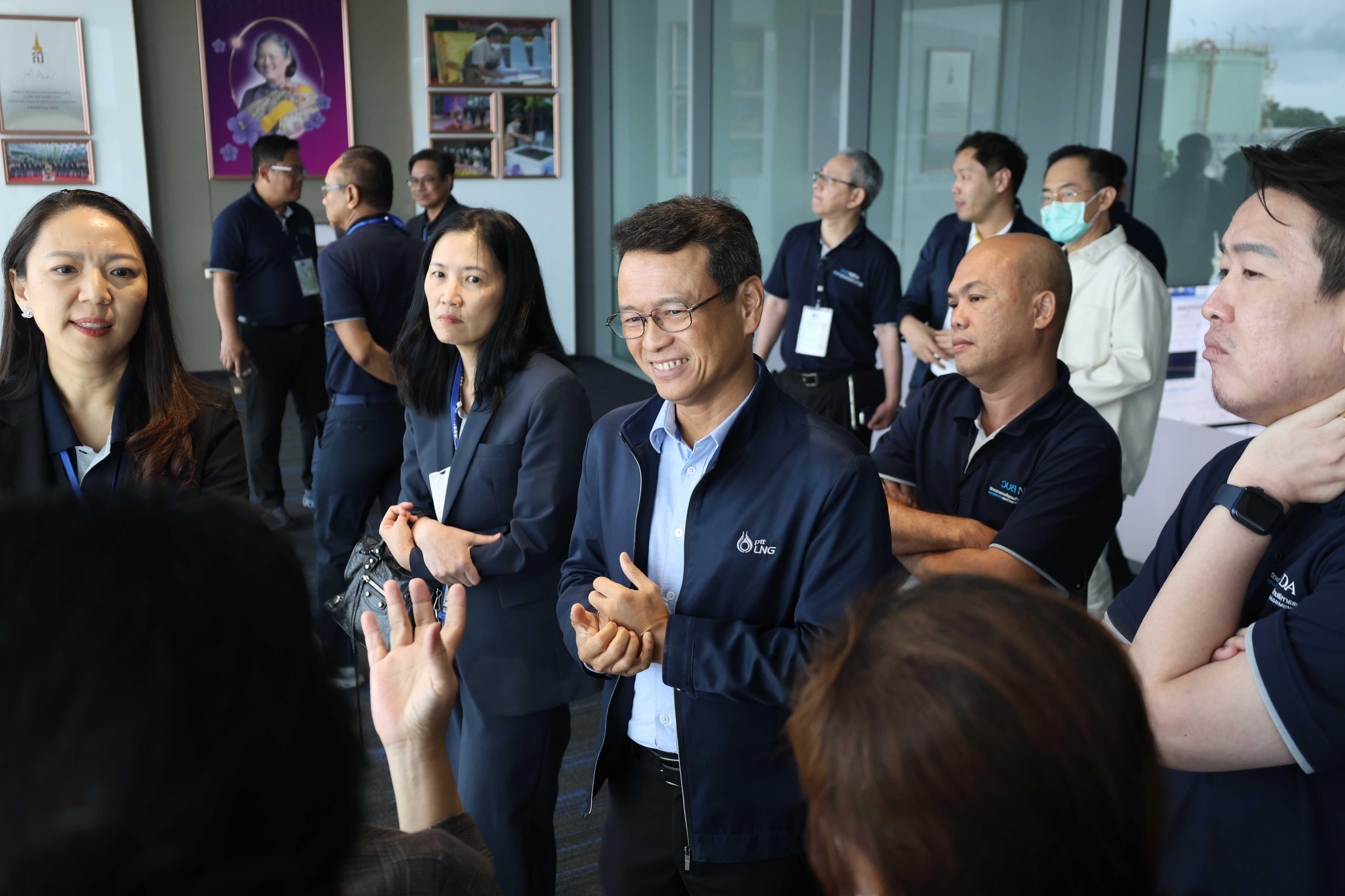 วันที่ 30 พฤษภาคม พ.ศ. 2568 คุณสมชาย ระมาศ กรรมการผู้จัดการ บริษัท พีอี แอลเอ็นจี จำกัด ให้การต้อนรับคณะผู้บริหารที่เข้าร่วมอบรมหลักสูตรวิทยาการการจัดการสำหรับนักบริหารระดับสูง (วบส.) รุ่นที่ 13 เนื่องในโอกาสเยี่ยมชมและศึกษาดูงาน ณ PTTLNG โดยคุณสมชาย ระมาศ ได้บรรยายสรุปในหัวข้อ “ภาพรวมการดำเนินธุรกิจ PTTLNG” เพื่อให้คณะผู้เข้าร่วมอบรมฯได้รับความรู้ ความเข้าใจเกี่ยวกับบทบาทของบริษัทฯในการจัดการพลังงานของประเทศ รวมถึงนวัตกรรมการนำพลังงานความเย็นที่เหลือใช้จากกระบวนการแปรสภาพก๊าซธรรมชาติเหลว (LNG) มาพัฒนาให้เกิดประโยชน์สูงสุดทั้งในด้านพลังงาน การประหยัดทรัพยากร และการอนุรักษ์สิ่งแวดล้อมอย่างยั่งยืน หลังจากนั้น คณะฯได้เข้าเยี่ยมชมเทคโนโลยีระบบปฏิบัติการที่ศูนย์ควบคุมการปฏิบัติการส่วนกลาง (Central Control Room) โดยมีคุณอิสร์รัชช์ ขจรรุ่งศิลป์ ผู้จัดการส่วนวิศวกรรม LMPT2 ร่วมตอบข้อซักถามของคณะฯ ตลอดจนเข้าเยี่ยมชมพรรณไม้เมืองหนาวภายในอาคารนิทรรศน์พรรณพฤกษา ซึ่งควบคุมอุณหภูมิที่ 15 องศาเซลเซียส โดยใช้พลังงานความเย็นจาก LNG มาใช้ประโยชน์อย่างสร้างสรรค์และเป็นมิตรต่อสิ่งแวดล้อม