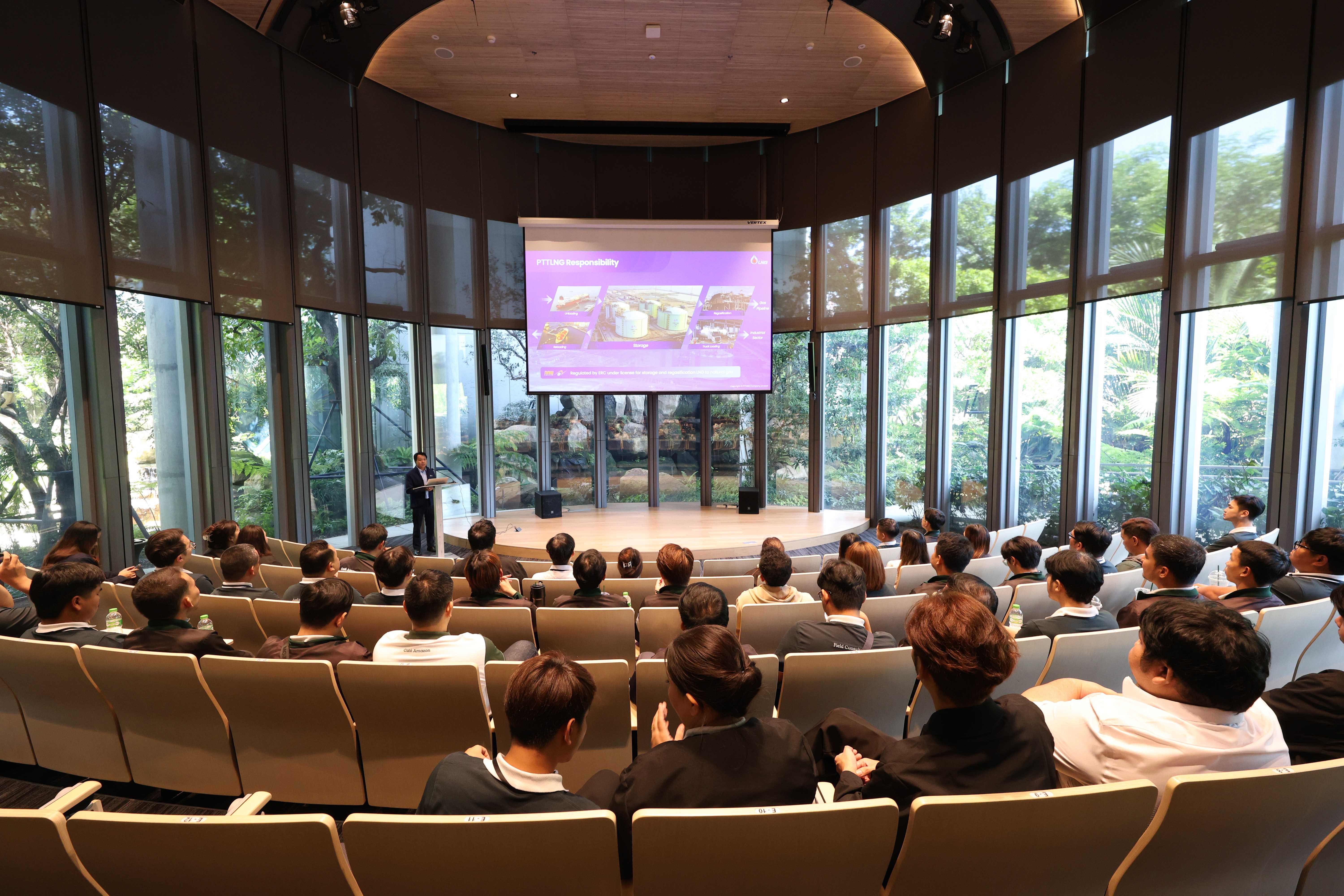 วันที่ 28 พฤษภาคม พ.ศ. 2568 PTTLNG ให้การต้อนรับ คณะผู้แทนของบริษัท ปตท.น้ำมันและการค้าปลีก จำกัด (มหาชน) ประกอบด้วยพนักงานของธุรกิจคาเฟ่อเมซอน (ส่วนพัฒนามาตรฐานและอบรมคาเฟ่อเมซอน, ส่วนตรวจสอบและควบคุมคุณภาพคาเฟ่อเมซอน และส่วนปฏิบัติการร้านแฟรนไชส์คาเฟ่อเมซอนส่วนภูมิภาค) เนื่องในโอกาสเยี่ยมชม PTTLNG เพื่อศึกษาดูงานการดำเนินงานตามภารกิจ โดยคำนึงถึงการมีส่วนรับผิดชอบต่อชุมชนและสังคมได้อย่างยั่งยืน และระบบการจัดการพลังงานควบคู่กับการอนุรักษ์สิ่งแวดล้อมได้อย่างมีประสิทธิภาพ โดยคณะฯได้รับฟังการบรรยายสรุป “ภาพรวมการดำเนินธุรกิจ PTTLNG” โดย คุณนรา โตแย้ม ผู้จัดการส่วนบริการกลาง จัดหาและคลังพัสดุ หลังจากนั้นคณะฯได้เข้าเยี่ยมชมไม้เมืองหนาวภายในอาคารนิทรรศน์พรรณพฤกษา ศูนย์เลิศพนานุรักษ์ ที่นำพลังงานความเย็นจากก๊าซธรรมชาติเหลว (LNG) มาใช้ประโยชน์กับระบบปรับอากาศภายในอาคาร