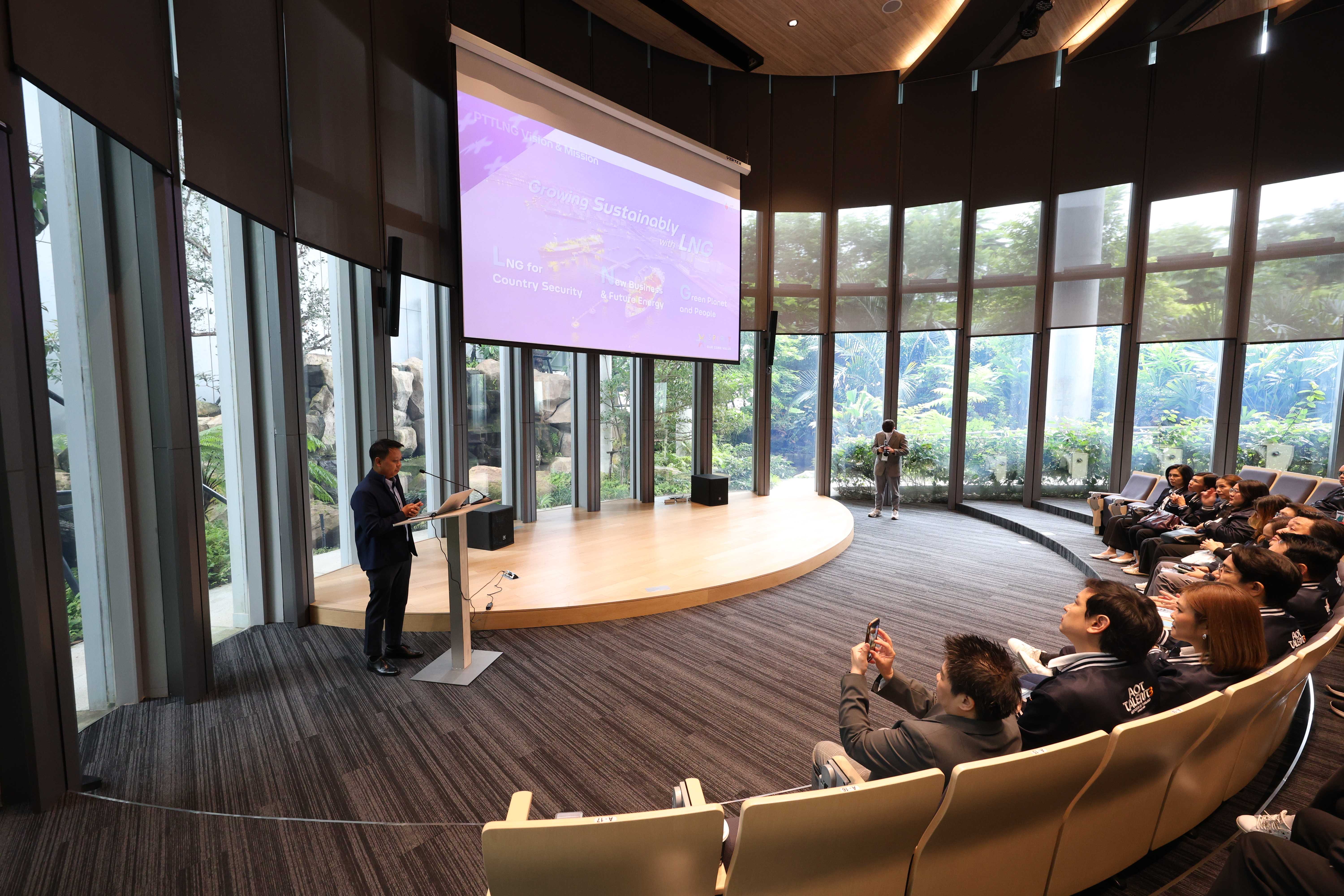 วันที่ 11 มิถุนายน พ.ศ. 2568 PTTLNG ให้การต้อนรับคณะผู้บริหารและพนักงาน AOT ที่เข้าร่วมโครงการพัฒนาพนักงานผู้มีศักยภาพของ บริษัท ท่าอากาศยานไทย จำกัด (มหาชน) ประจำปี 2568 (AOT Talent Program 2025) เนื่องในโอกาสเยี่ยมชมและศึกษาดูงานการดำเนินธุรกิจของ PTTLNG เพื่อสร้างความรู้ ความเข้าใจเกี่ยวกับบทบาทและความสำคัญต่อการเสริมสร้างความมั่นคงทางพลังงานของประเทศ และการนำนวัตกรรมด้านพลังงานมาใช้ให้เกิดประโยชน์สูงสุด โดยเฉพาะการนำพลังงานความเย็นเหลือใช้จากกระบวนการแปรสภาพก๊าซธรรมชาติเหลว (LNG) มาพัฒนาต่อยอดและสนับสนุนความยั่งยืนด้านพลังงาน โดยคณะฯได้รับฟังการบรรยายสรุป “ภาพรวมการดำเนินธุรกิจ PTTLNG” โดย คุณนรา โตแย้ม ผู้จัดการส่วนบริการกลาง จัดหา และคลังพัสดุ หลังจากนั้นคณะฯได้เข้าเยี่ยมชมไม้เมืองหนาวภายในอาคารนิทรรศน์พรรณพฤกษา ศูนย์เลิศพนานุรักษ์ ที่นำพลังงานความเย็นจากก๊าซธรรมชาติเหลว (LNG) มาใช้ประโยชน์กับระบบปรับอากาศภายในอาคาร