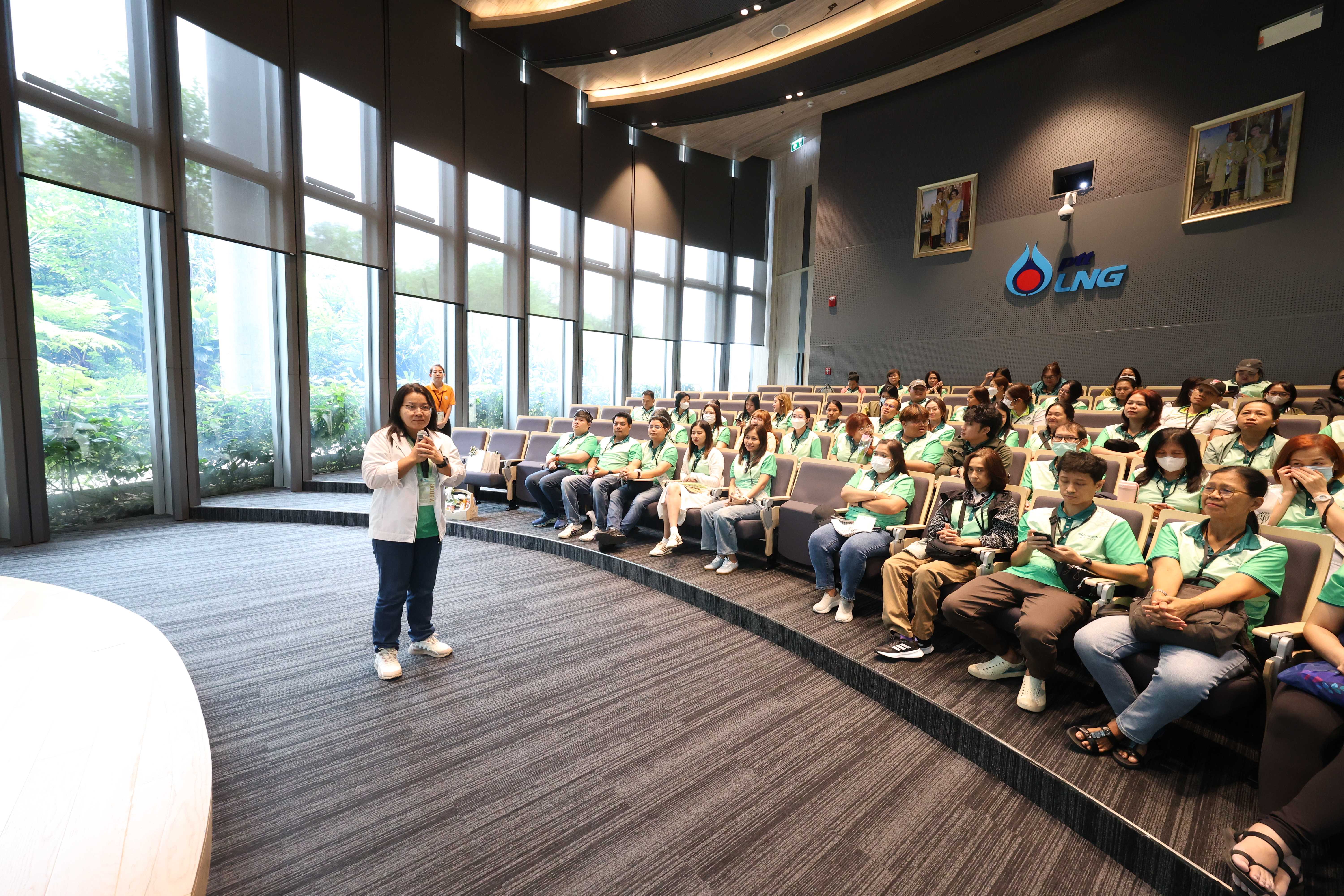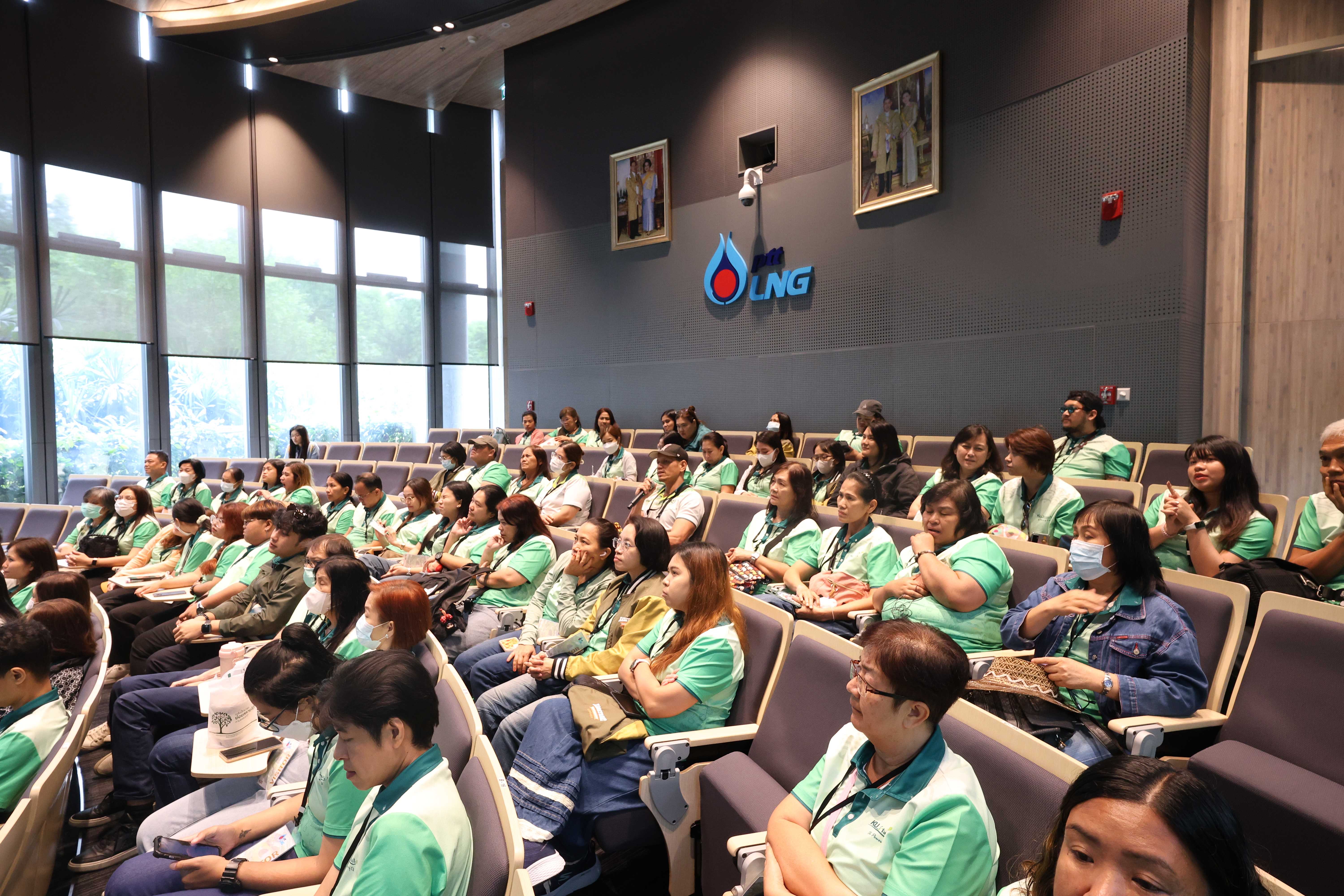วันที่ 12 มิถุนายน พ.ศ. 2568 PTTLNG ให้การต้อนรับคณะผู้บริหารและบุคลากรสำนักหอสมุด มหาวิทยาลัยเกษตรศาสตร์ เนื่องในโอกาสเยี่ยมชม PTTLNG เพื่อศึกษาดูงานให้เกิดความรู้ ความเข้าใจ ที่มาของการดำเนินธุรกิจของ PTTLNG และการดำเนินงานตามภารกิจ โดยคำนึงถึงการมีส่วนรับผิดชอบต่อชุมชนและสังคมอย่างยั่งยืน โดยคณะฯได้รับฟังการบรรยายสรุป “ภาพรวมการดำเนินธุรกิจ PTTLNG” โดย คุณจุฑารัตน์ พิทักษ์วาทิน พนักงานประชาสัมพันธ์อาวุโส หลังจากนั้นคณะฯได้เข้าเยี่ยมชมไม้เมืองหนาวภายในอาคารนิทรรศน์พรรณพฤกษา ศูนย์เลิศพนานุรักษ์ ที่นำพลังงานความเย็นจากก๊าซธรรมชาติเหลว (LNG) มาใช้ประโยชน์กับระบบปรับอากาศภายในอาคาร