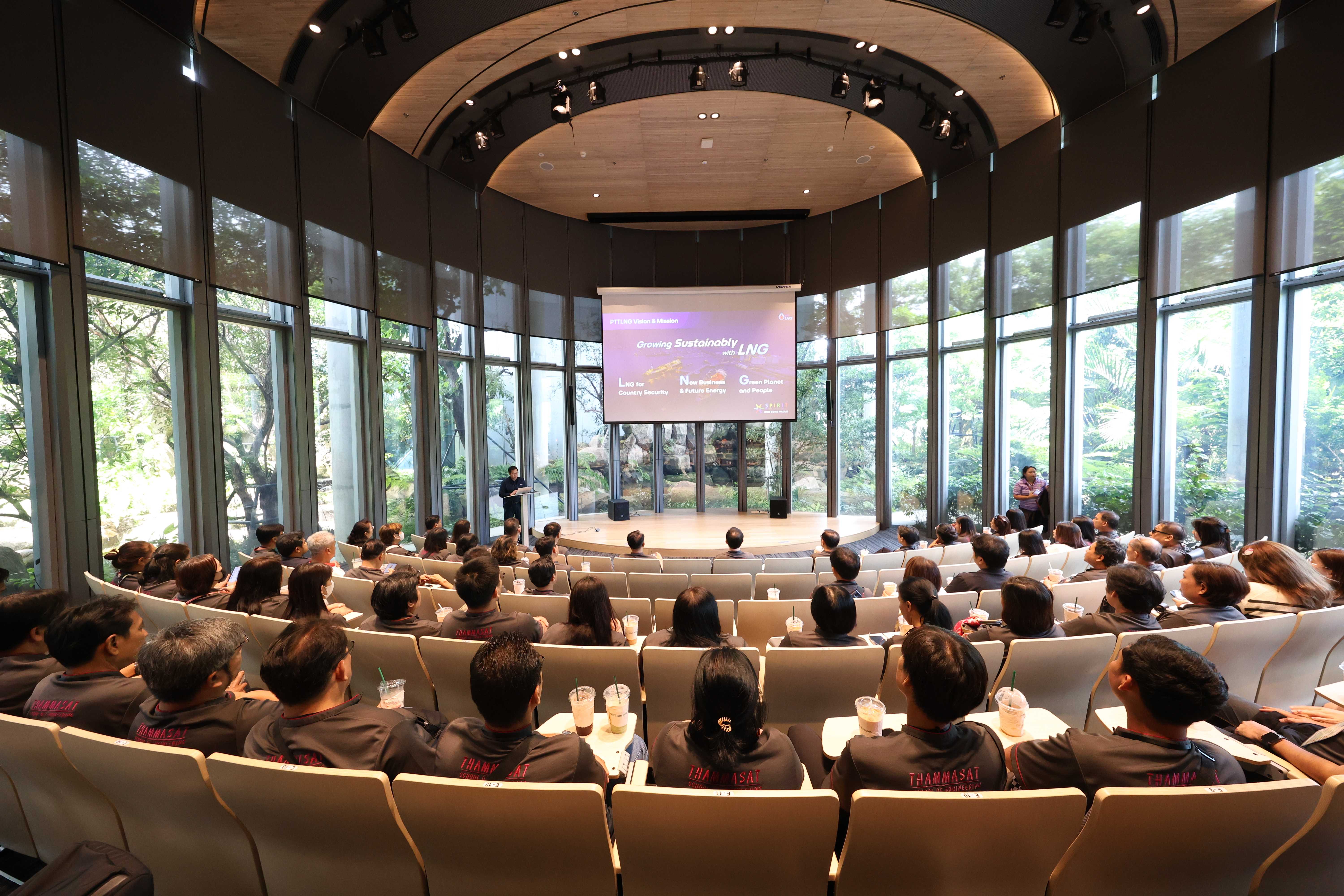 วันที่ 18 มิถุนายน พ.ศ. 2568 PTTLNG ให้การต้อนรับคณาจารย์และเจ้าหน้าที่จากคณะวิศวกรรมศาสตร์ มหาวิทยาลัยธรรมศาสตร์  เนื่องในโอกาสเยี่ยมชม PTTLNG เพื่อศึกษาดูงานการดำเนินธุรกิจของ PTTLNG และให้เกิดความรู้ ความเข้าใจ ที่มาและการดำเนินด้านนวัตกรรมการนำพลังงานความเย็นจาก LNG ที่เหลือใช้มาพัฒนาให้เกิดประโยชน์สูงสุด รวมถึงระบบการจัดการพลังงานควบคู่กับการอนุรักษ์สิ่งแวดล้อมได้อย่างยั่งยืน โดยคณะฯได้รับฟังการบรรยายสรุป “ภาพรวมการดำเนินธุรกิจ PTTLNG” โดย คุณอิสร์รัชช์ ขจรรุ่งศิลป์ ผู้จัดการส่วนวิศวกรรม LMPT2 พร้อมกันนี้ คณะได้เข้าเยี่ยมชมไม้เมืองหนาวภายในอาคารนิทรรศน์พรรณพฤกษา นับเป็นอาคารที่นำพลังงานความเย็นจากก๊าซธรรมชาติเหลว (LNG) มาใช้ในการจัดแสดงพรรณไม้เมืองหนาวที่อุณหภูมิ 15 องศาเซลเซียส