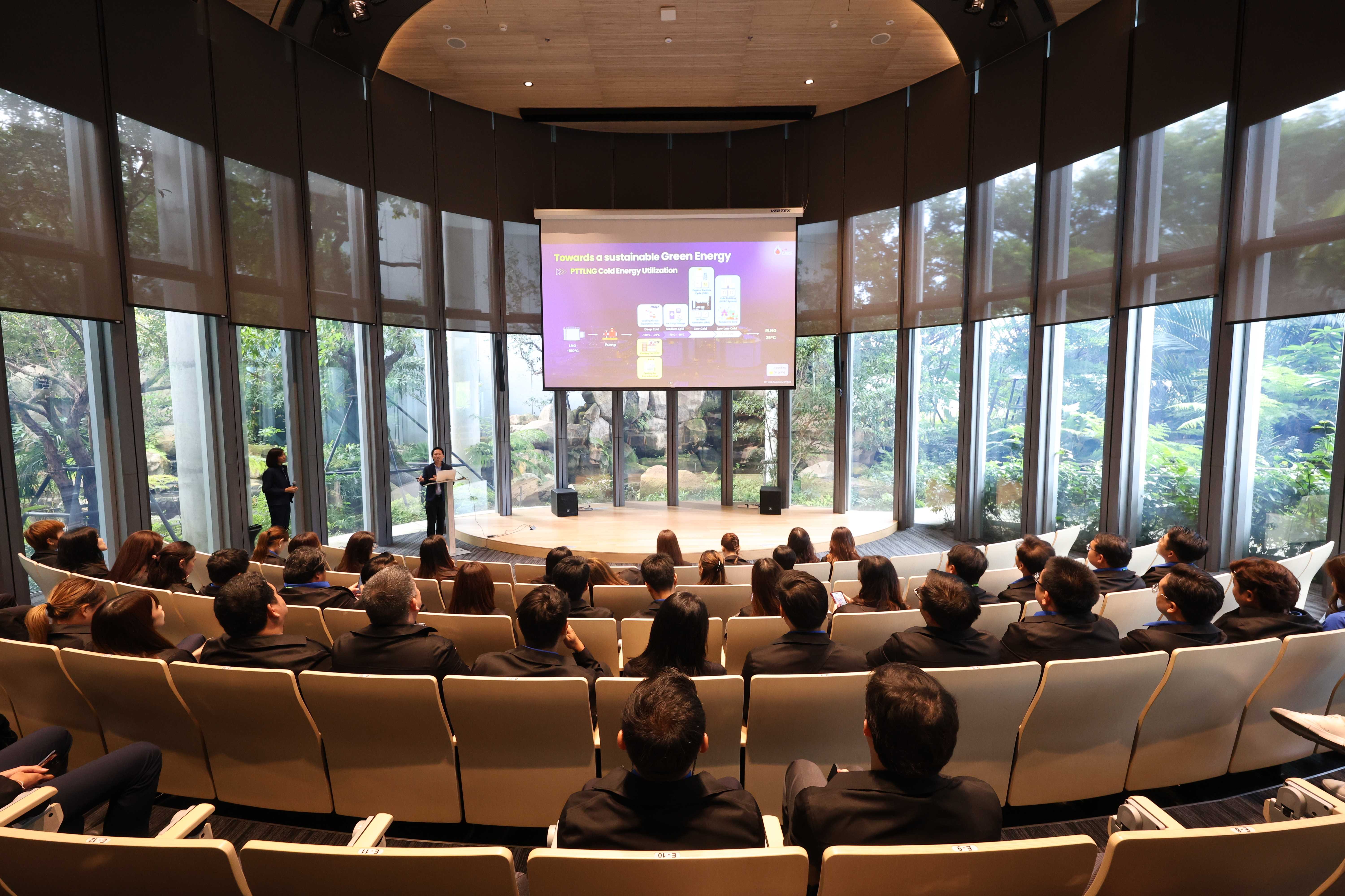 วันที่ 24 มิถุนายน พ.ศ. 2568 PTTLNG ให้การต้อนรับคณะผู้บริหารที่เข้าร่วมหลักสูตรด้านวิทยาการพลังงานสำหรับนักบริหารรุ่นใหม่ รุ่นที่ 11 (วพม.11) เนื่องในโอกาสเยี่ยมชม PTTLNG เพื่อศึกษาดูงานการดำเนินธุรกิจของ PTTLNG และให้เกิดความรู้ ความเข้าใจ ที่มาและการดำเนินด้านนวัตกรรมการนำพลังงานความเย็นจาก LNG ที่เหลือใช้มาพัฒนาให้เกิดประโยชน์สูงสุด รวมถึงระบบการจัดการพลังงานควบคู่กับการอนุรักษ์สิ่งแวดล้อมได้อย่างยั่งยืน โดยคณะฯได้รับฟังการบรรยายสรุป “ภาพรวมการดำเนินธุรกิจ PTTLNG” โดย คุณกิติภูมิ ตั้งวงษ์พิมุข ผู้จัดการส่วนสื่อสารองค์กรและกิจการเพื่อสังคม และรับชมการสาธิตคุณสมบัติก๊าซธรรมชาติเหลว โดย คุณวรัญญู วรธงไชย (พนักงานประชาสัมพันธ์) พร้อมกันนี้ คุณจุฑารัตน์ พิทักษ์วาทิน พนักงานประชาสัมพันธ์อาวุโส ได้พาคณะฯเข้าเยี่ยมชมเทคโนโลยีระบบปฏิบัติการที่ศูนย์ควบคุมการปฏิบัติการส่วนกลาง (Central Control Room) และให้ข้อมูลเกี่ยวกับพื้นที่กระบวนการผลิต ตลอดจนคณะฯเข้าเยี่ยมชมไม้เมืองหนาวภายในอาคารนิทรรศน์พรรณพฤกษา นับเป็นอาคารที่นำพลังงานความเย็นจากก๊าซธรรมชาติเหลว (LNG) มาใช้ในการจัดแสดงพรรณไม้เมืองหนาวที่อุณหภูมิ 15 องศาเซลเซียส