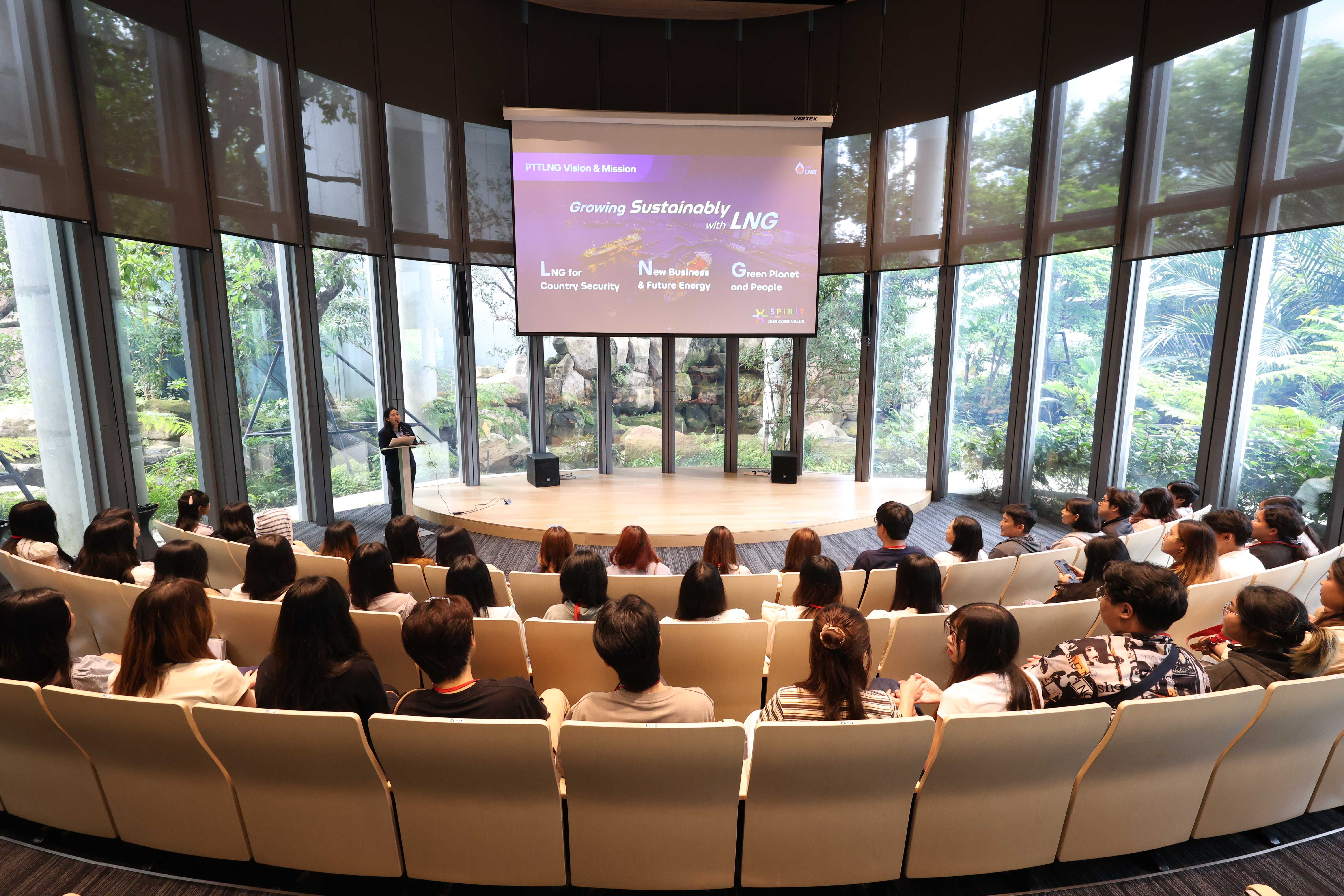 วันที่ 24 มิถุนายน พ.ศ. 2568  PTTLNG ให้การต้อนรับคณาจารย์และนักศึกษาที่เข้าร่วมโครงการสัมมนาผู้นำนักศึกษาคณะบัญชี ปีการศึกษา 2568 มหาวิทยาลัยหอการค้าไทย เนื่องในโอกาสเยี่ยมชม PTTLNG เพื่อศึกษาเรียนรู้แนวปฏิบัติที่ดีด้านความรับผิดชอบต่อสังคมและสิ่งแวดล้อมที่สอดคล้องกับกระบวนการทำงานของบริษัทฯ และระบบการจัดการพลังงานได้อย่างมีประสิทธิภาพ โดยการนำความเย็นจากกระบวนการแปรสภาพก๊าซธรรมชาติเหลว (LNG) มาใช้ให้เกิดประโยชน์สูงสุด ควบคู่กับการอนุรักษ์สิ่งแวดล้อมได้อย่างยั่งยืน โดยคณะฯได้รับฟังการบรรยายสรุป “ภาพรวมการดำเนินธุรกิจ PTTLNG” โดย คุณวรัญญู วรธงไชย พนักงานประชาสัมพันธ์ หลังจากนั้น คณะฯได้เข้าเยี่ยมชมไม้เมืองหนาวภายในอาคารนิทรรศน์พรรณพฤกษา ที่นำพลังงานความเย็นจากก๊าซธรรมชาติเหลว (LNG) มาใช้ประโยชน์กับระบบปรับอากาศภายในอาคาร