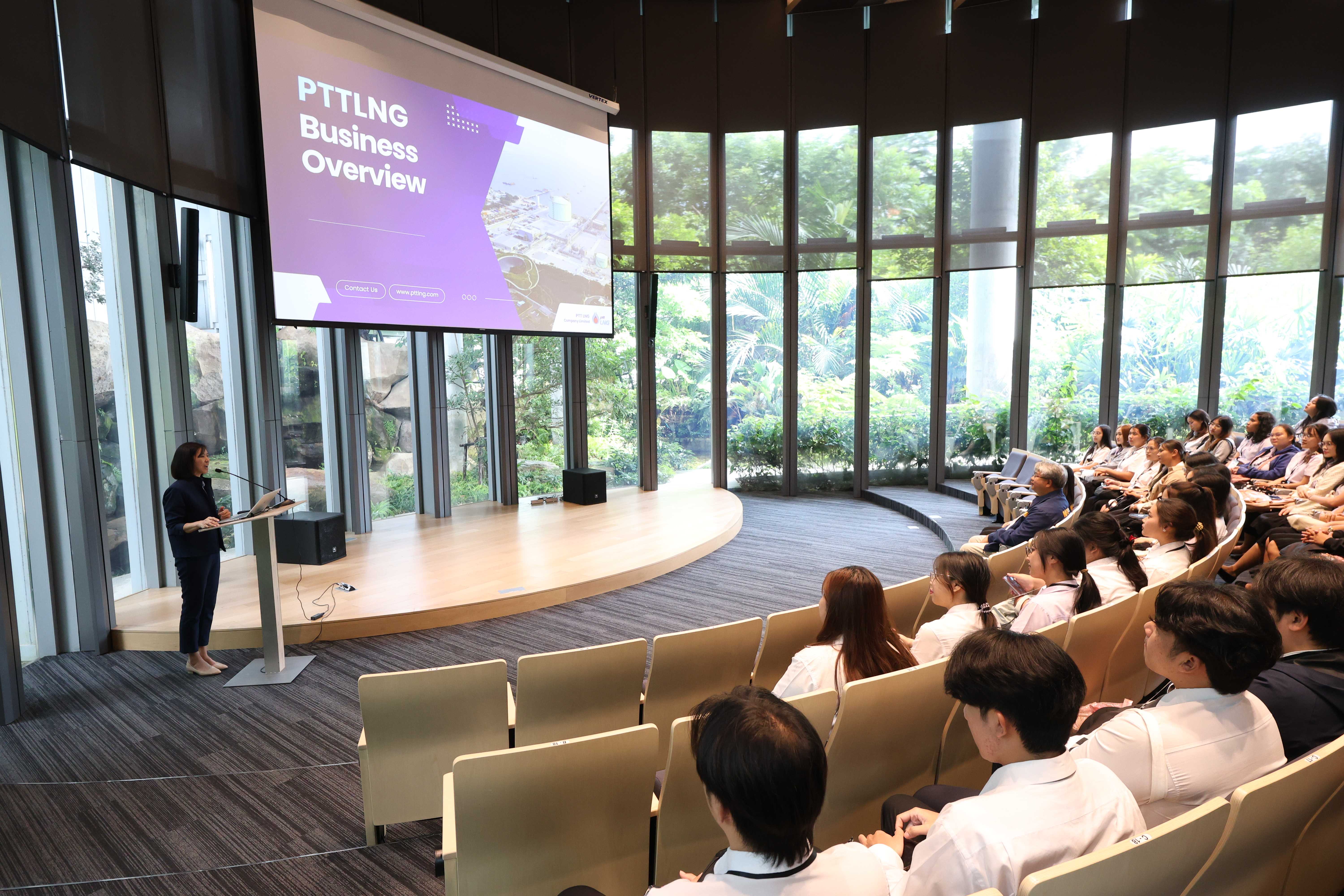 วันที่ 24 มิถุนายน พ.ศ. 2568 PTTLNG ให้การต้อนรับคณาจารย์และนักศึกษาคณะการบัญชีและการจัดการ มหาวิทยาลัยมหาสารคาม เนื่องในโอกาสเข้าเยี่ยมชม PTTLNG เพื่อศึกษาดูงานการดำเนินธุรกิจของ PTTLNG ให้เกิดความรู้ ความเข้าใจ ที่มาและการดำเนินด้านนวัตกรรมการนำพลังงานความเย็นจาก LNG ที่เหลือใช้มาพัฒนาให้เกิดประโยชน์สูงสุด รวมถึงระบบการจัดการพลังงานควบคู่กับการอนุรักษ์สิ่งแวดล้อมได้อย่างยั่งยืน โดยคณะฯได้รับฟังการบรรยายสรุป “ภาพรวมการดำเนินธุรกิจ PTTLNG” โดย คุณจุฑารัตน์ พิทักษ์วาทิน พนักงานประชาสัมพันธ์อาวุโส หลังจากนั้น คณะฯได้เข้าเยี่ยมชมไม้เมืองหนาวภายในอาคารนิทรรศน์พรรณพฤกษา ที่นำพลังงานความเย็นจากก๊าซธรรมชาติเหลว (LNG) มาใช้ประโยชน์กับระบบปรับอากาศภายในอาคาร