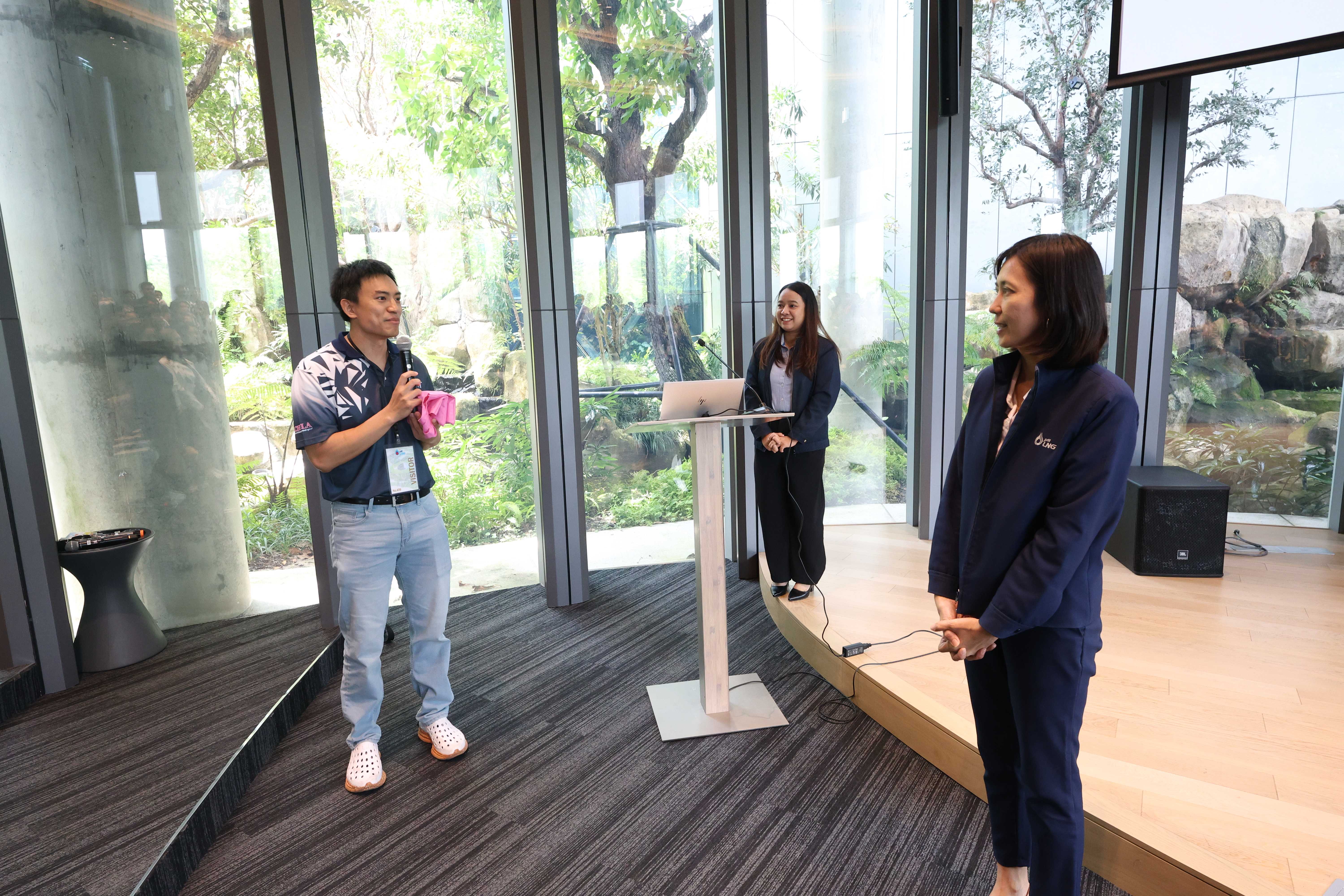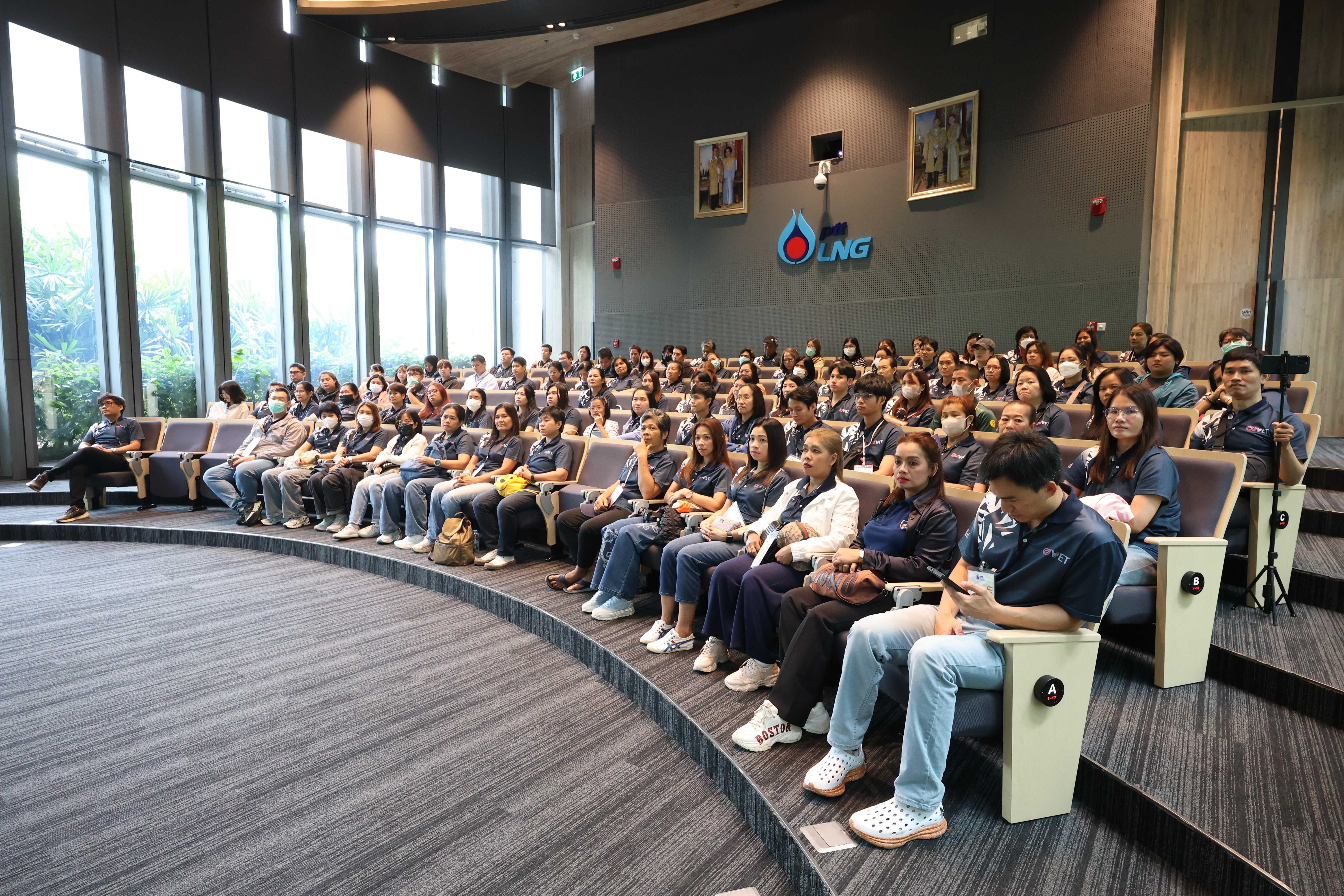 วันที่ 26 มิถุนายน พ.ศ. 2568 PTTLNG ให้การต้อนรับคณะบุคลากรที่เข้าร่วมโครงการสัมมนาบุคลากรสายปฏิบัติการเพื่อพัฒนาทักษะการเรียนรู้ด้วยตนเอง คณะสัตวแพทยศาสตร์ จุฬาลงกรณ์มหาวิทยาลัย เนื่องในโอกาสเยี่ยมชม PTTLNG เพื่อศึกษาดูงานให้เกิดความรู้ ความเข้าใจ ที่มาของการดำเนินธุรกิจของบริษัทฯ และการดำเนินงานตามภารกิจ โดยคำนึงถึงการมีส่วนรับผิดชอบต่อชุมชนและสังคมอย่างยั่งยืน โดยคณะฯได้รับฟังการบรรยายสรุป “ภาพรวมการดำเนินธุรกิจ PTTLNG” โดย คุณจุฑารัตน์ พิทักษ์วาทิน พนักงานประชาสัมพันธ์อาวุโส  หลังจากนั้นคณะฯได้เข้าเยี่ยมชมไม้เมืองหนาวภายในอาคารนิทรรศน์พรรณพฤกษา ที่นำพลังงานความเย็นจากก๊าซธรรมชาติเหลว (LNG) มาใช้ประโยชน์กับระบบปรับอากาศภายในอาคาร