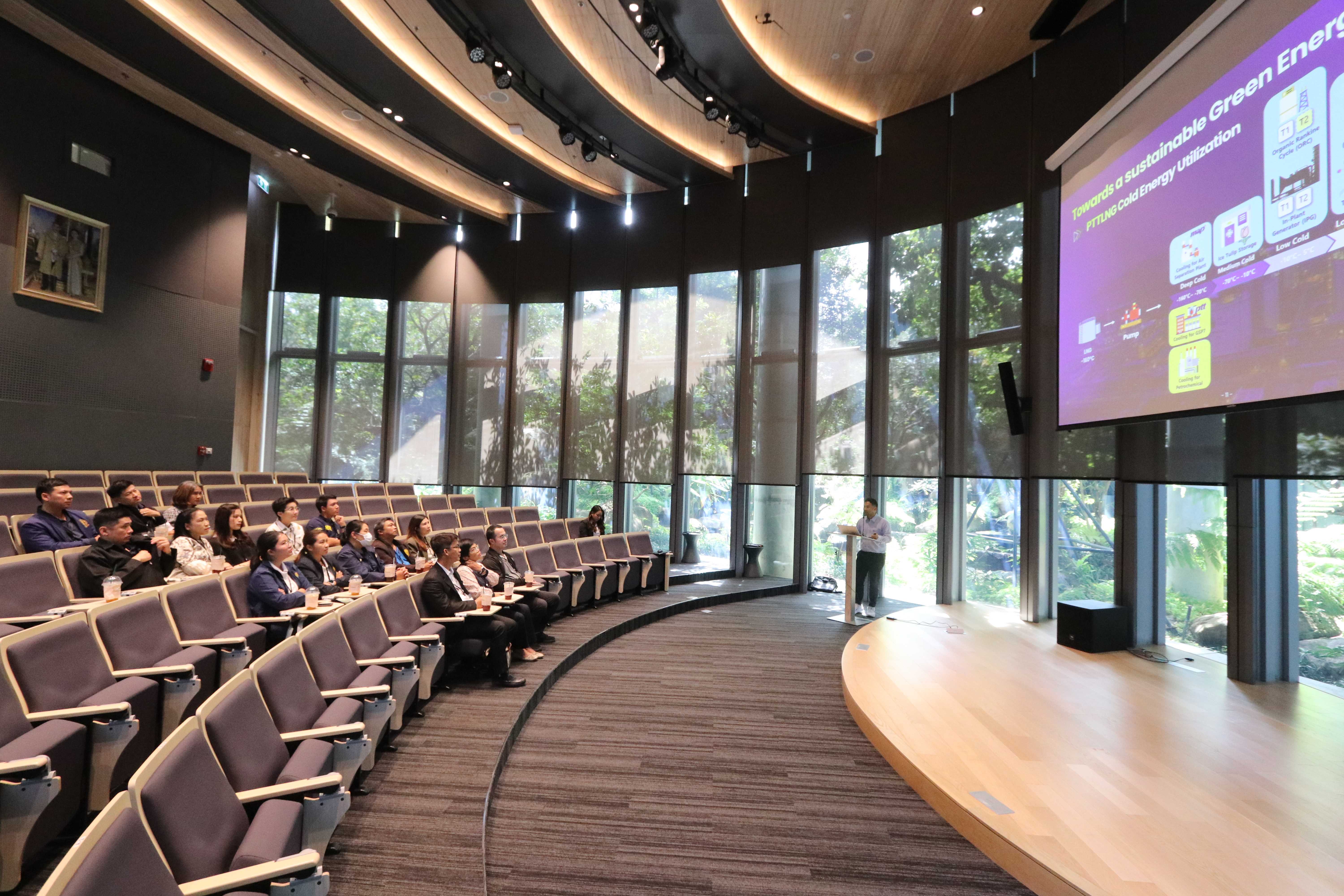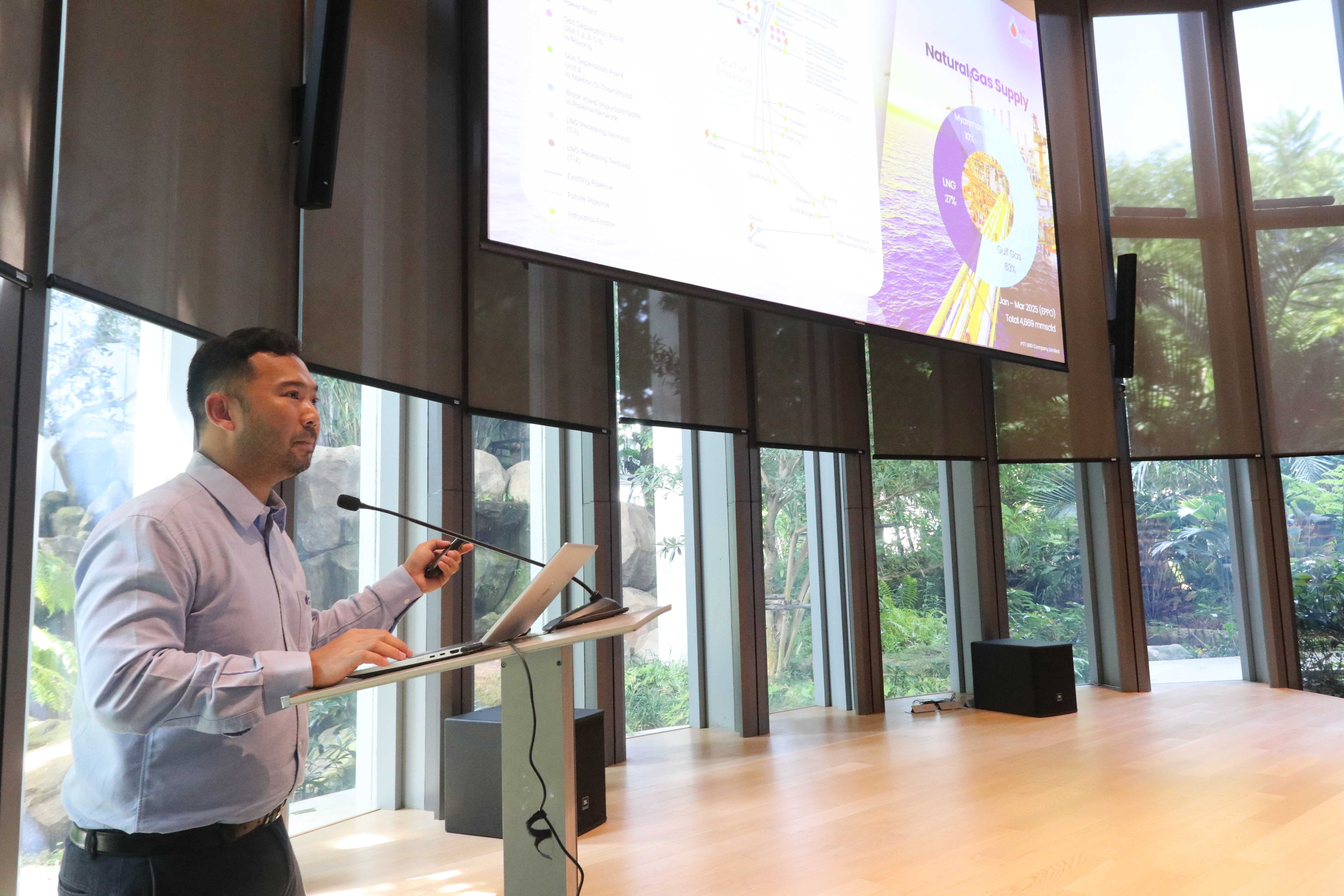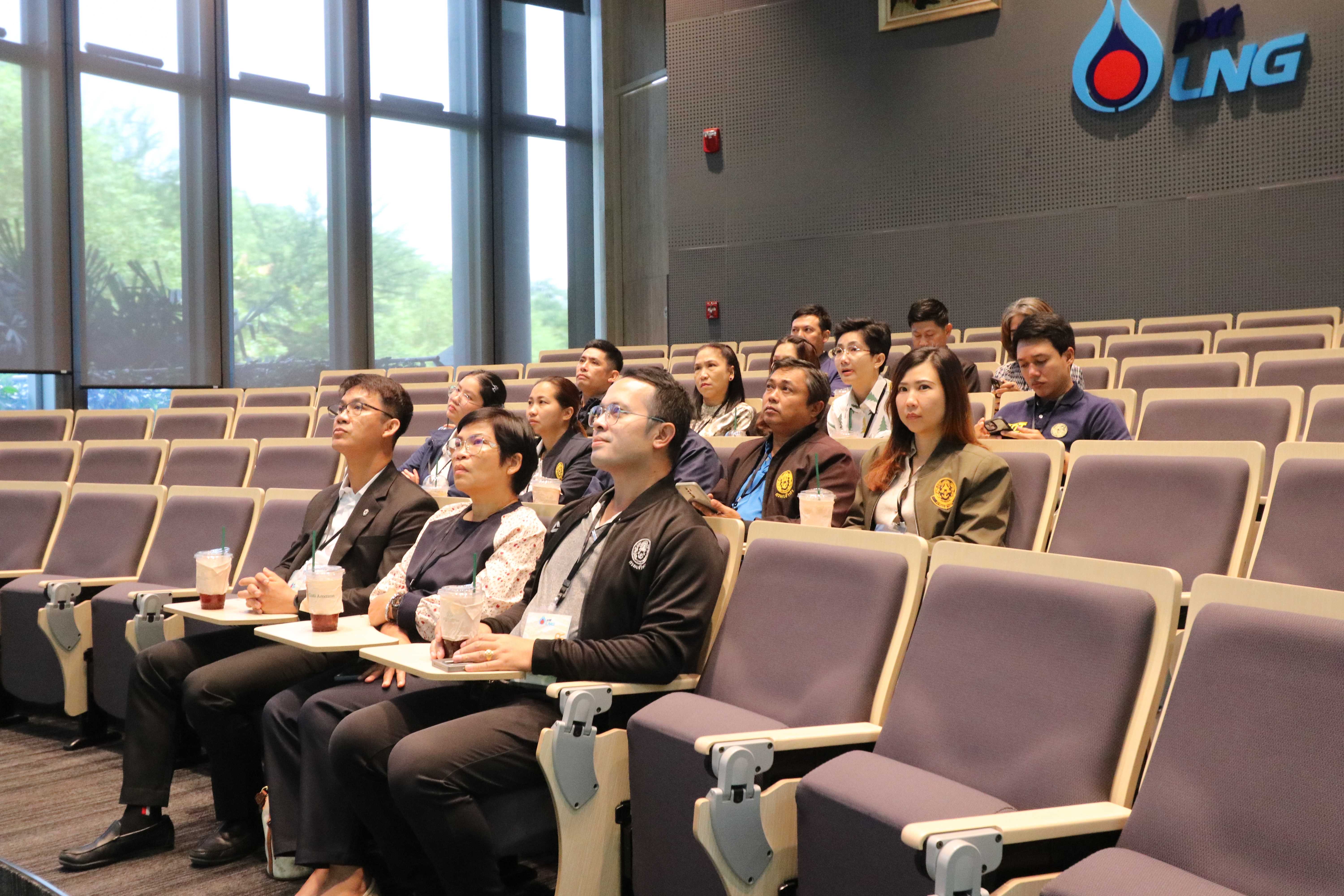 วันที่ 27 มิถุนายน พ.ศ. 2568 PTTLNG ให้การต้อนรับคณะเจ้าหน้าที่ที่เข้าร่วมอบรมหลักสูตร “พนักงานเจ้าหน้าที่ตรวจแรงงานทางทะเล ตามพระราชบัญญัติแรงงานทางทะเล พ.ศ. 2558” รุ่นที่ 5 กรมเจ้าท่า เนื่องในโอกาสเยี่ยมชม PTTLNG เพื่อศึกษาดูงานการดำเนินธุรกิจของ PTTLNG การควบคุมความปลอดภัย ระบบอาชีวอนามัยในระดับอุตสาหกรรมพลังงาน รวมถึงระบบการจัดการพลังงานควบคู่กับการอนุรักษ์สิ่งแวดล้อมได้อย่างยั่งยืน โดยคณะฯได้รับฟังการบรรยายสรุป “ภาพรวมการดำเนินธุรกิจ PTTLNG” โดย คุณธราดล จิตต์สาครสิริ ผู้จัดการแผนกปฏิบัติการท่าเรือ หลังจากนั้นคณะฯได้เข้าเยี่ยมชมไม้เมืองหนาวภายในอาคารนิทรรศน์พรรณพฤกษา ศูนย์เลิศพนานุรักษ์ ที่นำพลังงานความเย็นจากก๊าซธรรมชาติเหลว (LNG) มาใช้ประโยชน์กับระบบปรับอากาศภายในอาคาร