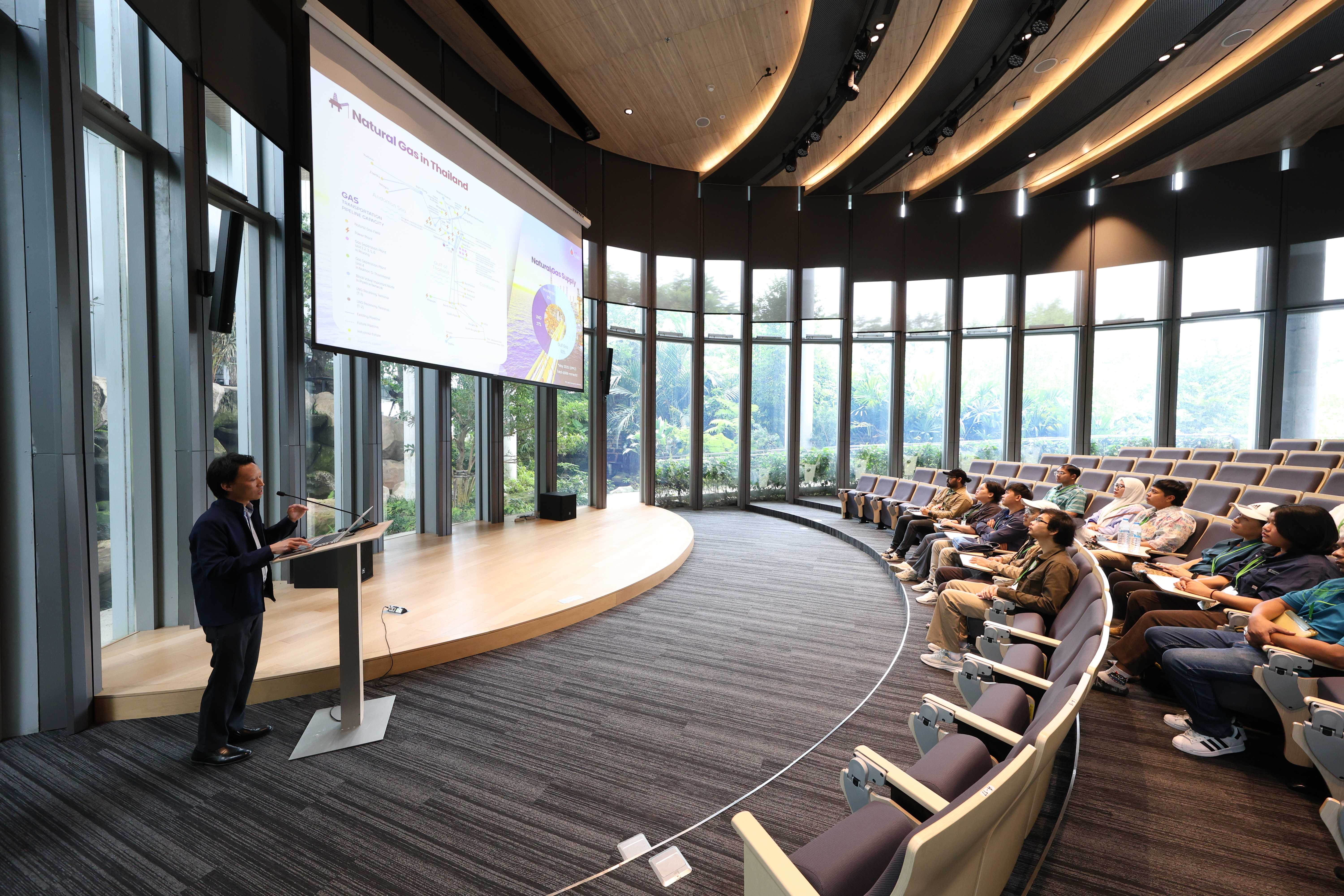 วันที่ 7 กรกฎาคม พ.ศ. 2568 PTTLNG ให้การต้อนรับคณะบุคลากรของบริษัท บียอนด์ ดีไซน์ ดีเวลลอปเมนท์ จำกัด เนื่องในโอกาสเข้าเยี่ยมชม PTTLNG และศึกษาดูงานการดำเนินธุรกิจของบริษัทฯ เพื่อให้เกิดความรู้ ความเข้าใจ ที่มาและการดำเนินด้านนวัตกรรมการนำพลังงานความเย็นจาก LNG ที่เหลือใช้มาพัฒนาให้เกิดประโยชน์สูงสุด รวมถึงระบบการจัดการพลังงานควบคู่กับการอนุรักษ์สิ่งแวดล้อมได้อย่างยั่งยืน โดยคณะได้รับฟังการบรรยายสรุป “ภาพรวมการดำเนินธุรกิจ PTTLNG” โดย คุณกิติภูมิ ตั้งวงษ์พิมุข ผู้จัดการส่วนสื่อสารองค์กรและกิจการเพื่อสังคม พร้อมกันนี้ คณะได้เข้าเยี่ยมชมไม้เมืองหนาวภายในอาคารนิทรรศน์พรรณพฤกษา นับเป็นอาคารที่นำพลังงานความเย็นจากก๊าซธรรมชาติเหลว (LNG) มาใช้ในการจัดแสดงพรรณไม้เมืองหนาวที่อุณหภูมิ 15 องศาเซลเซียส
