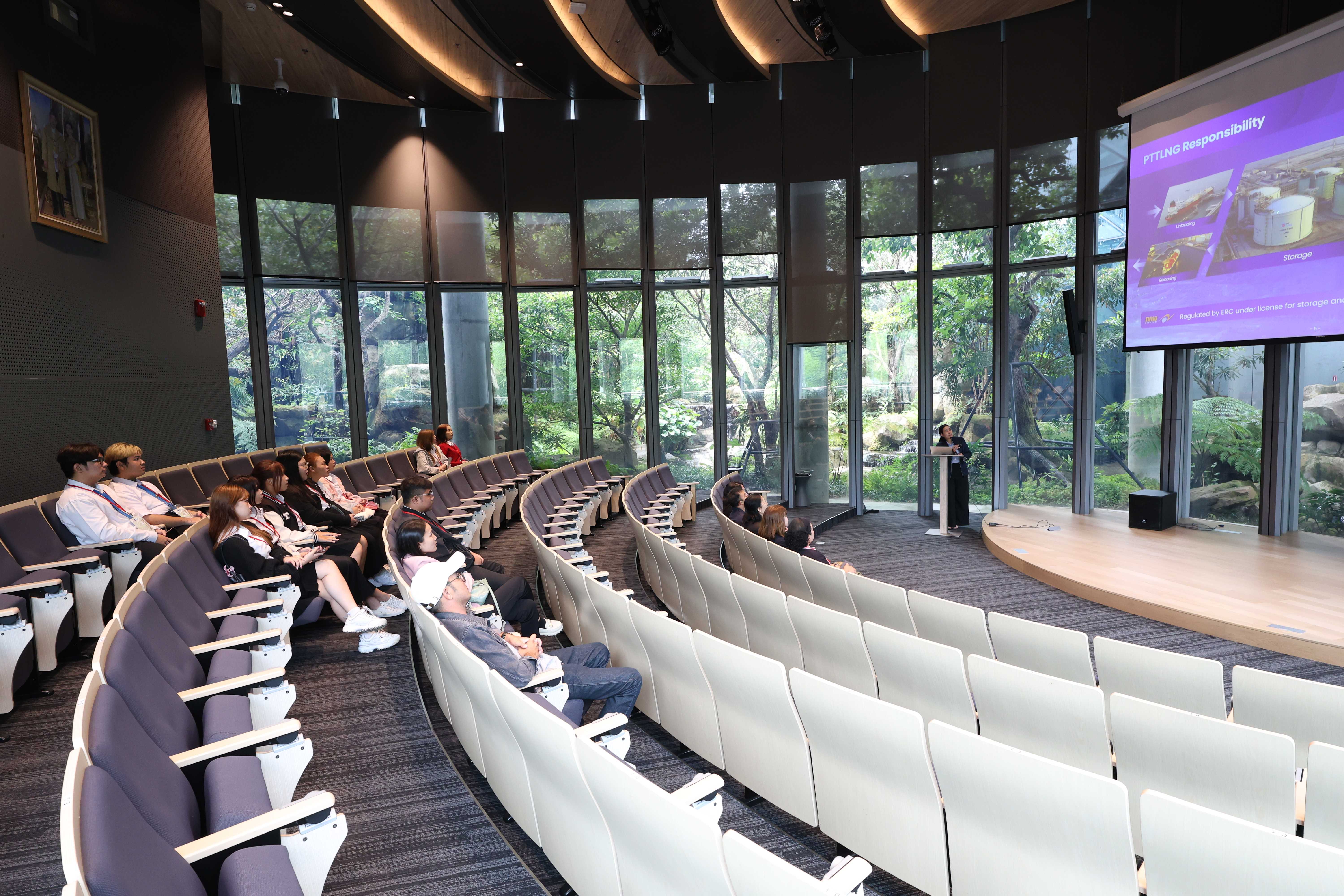 วันที่ 8 กรกฎาคม พ.ศ. 2568 PTTLNG ให้การต้อนรับคณาจารย์และนักศึกษา คณะเกษตรศาสตร์และทรัพยากรธรรมชาติ มหาวิทยาลัยเทคโนโลยีราชมงคลตะวันออก เนื่องในโอกาสเยี่ยมชม PTTLNG เพื่อศึกษาดูงานการดำเนินธุรกิจของบริษัทฯ และให้เกิดความรู้ ความเข้าใจ ด้านการบริหารจัดการงานรับ-จ่ายก๊าซธรรมชาติเหลว ที่มาและการดำเนินด้านนวัตกรรมการนำพลังงานความเย็นจาก LNG ที่เหลือใช้มาพัฒนาให้เกิดประโยชน์สูงสุด รวมถึงระบบการจัดการพลังงานควบคู่กับการอนุรักษ์สิ่งแวดล้อมได้อย่างยั่งยืน โดยคณะฯได้รับฟังการบรรยายสรุป “ภาพรวมการดำเนินธุรกิจ PTTLNG” โดย คุณวรัญญู วรธงไชย พนักงานประชาสัมพันธ์ พร้อมกันนี้ คณะฯได้เยี่ยมชมพรรณไม้เมืองหนาวภายในอาคารนิทรรศน์พรรณพฤกษา ซึ่งใช้พลังงานความเย็นที่เหลือจากกระบวนการแปรสภาพก๊าซธรรมชาติเหลว (LNG) ในการควบคุมอุณหภูมิที่ 15 องศาเซลเซียส ถือเป็นหนึ่งในตัวอย่างนวัตกรรมการใช้พลังงานอย่างมีประสิทธิภาพและยั่งยืน