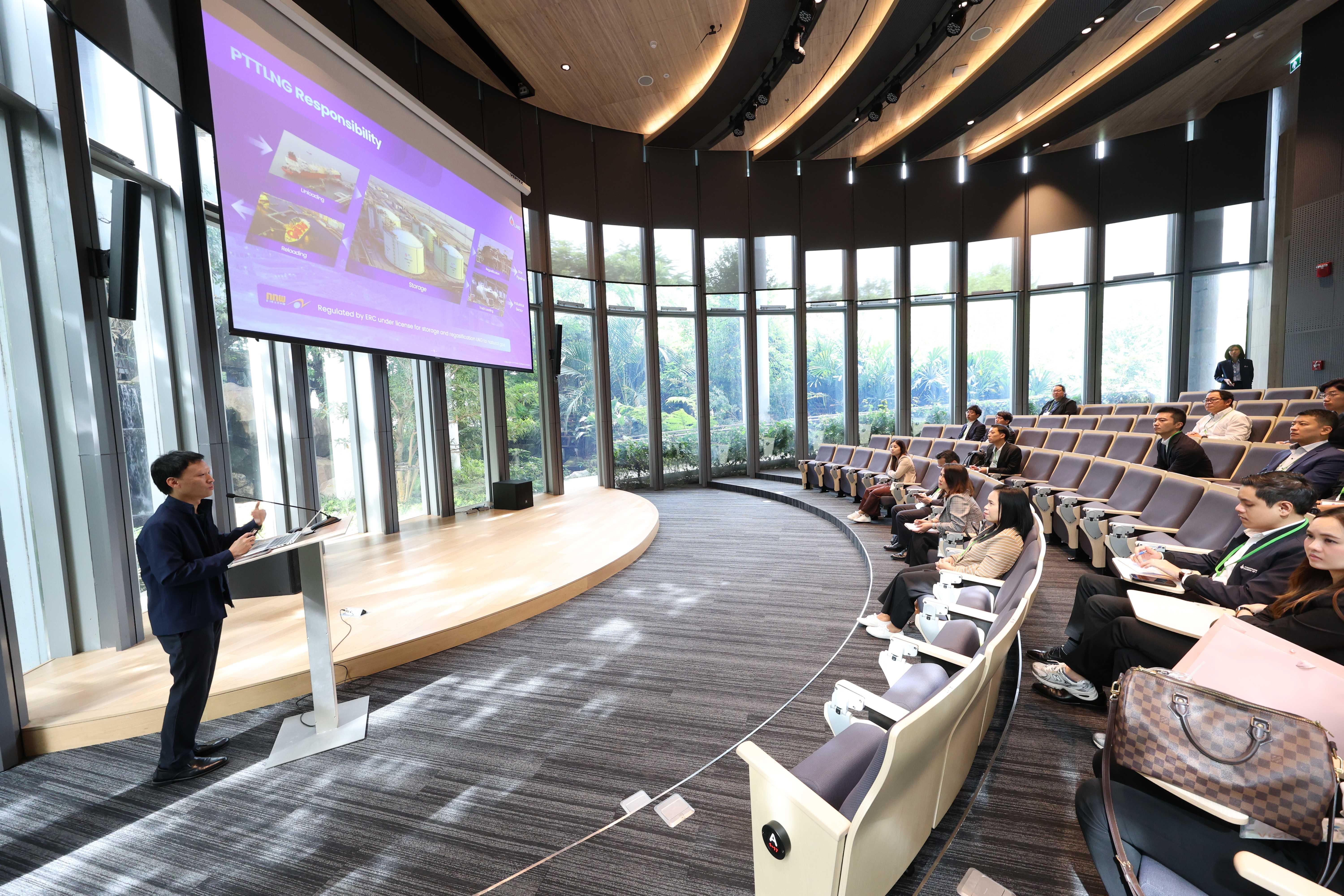 วันที่ 16 กรกฎาคม พ.ศ. 2568 PTTLNG ให้การต้อนรับคณะผู้แทนจากกระทรวงเศรษฐกิจ การค้าและอุตสาหกรรม ประเทศญี่ปุ่น และผู้แทนจากการเข้าร่วมประชุม The 7th Japan-Thailand Energy Policy Dialogue (JTEPD) เนื่องในโอกาสเยี่ยมชม PTTLNG เพื่อศึกษาดูงานการดำเนินธุรกิจของบริษัทฯ และให้เกิดความรู้ ความเข้าใจ ที่มาและการดำเนินด้านนวัตกรรมการนำพลังงานความเย็นจาก LNG ที่เหลือใช้มาพัฒนาให้เกิดประโยชน์สูงสุด รวมถึงระบบการจัดการพลังงานควบคู่กับการอนุรักษ์สิ่งแวดล้อมได้อย่างยั่งยืน โดยคณะฯได้รับฟังการบรรยายสรุป “ภาพรวมการดำเนินธุรกิจ PTTLNG” โดย คุณกิติภูมิ ตั้งวงษ์พิมุข ผู้จัดการส่วนสื่อสารองค์กรและกิจการเพื่อสังคม พร้อมกันนี้ คณะฯได้เข้าเยี่ยมชมศูนย์ควบคุมการปฏิบัติการส่วนกลาง (Central Control Room) ซึ่งเป็นหัวใจสำคัญของระบบปฏิบัติการ พร้อมทั้งเข้าเยี่ยมชมพรรณไม้เมืองหนาวภายในอาคารนิทรรศน์พรรณพฤกษา ซึ่งใช้พลังงานความเย็นที่เหลือจากกระบวนการแปรสภาพก๊าซธรรมชาติเหลว (LNG) ในการควบคุมอุณหภูมิที่ 15 องศาเซลเซียส ถือเป็นหนึ่งในตัวอย่างนวัตกรรมการใช้พลังงานอย่างมีประสิทธิภาพและยั่งยืน