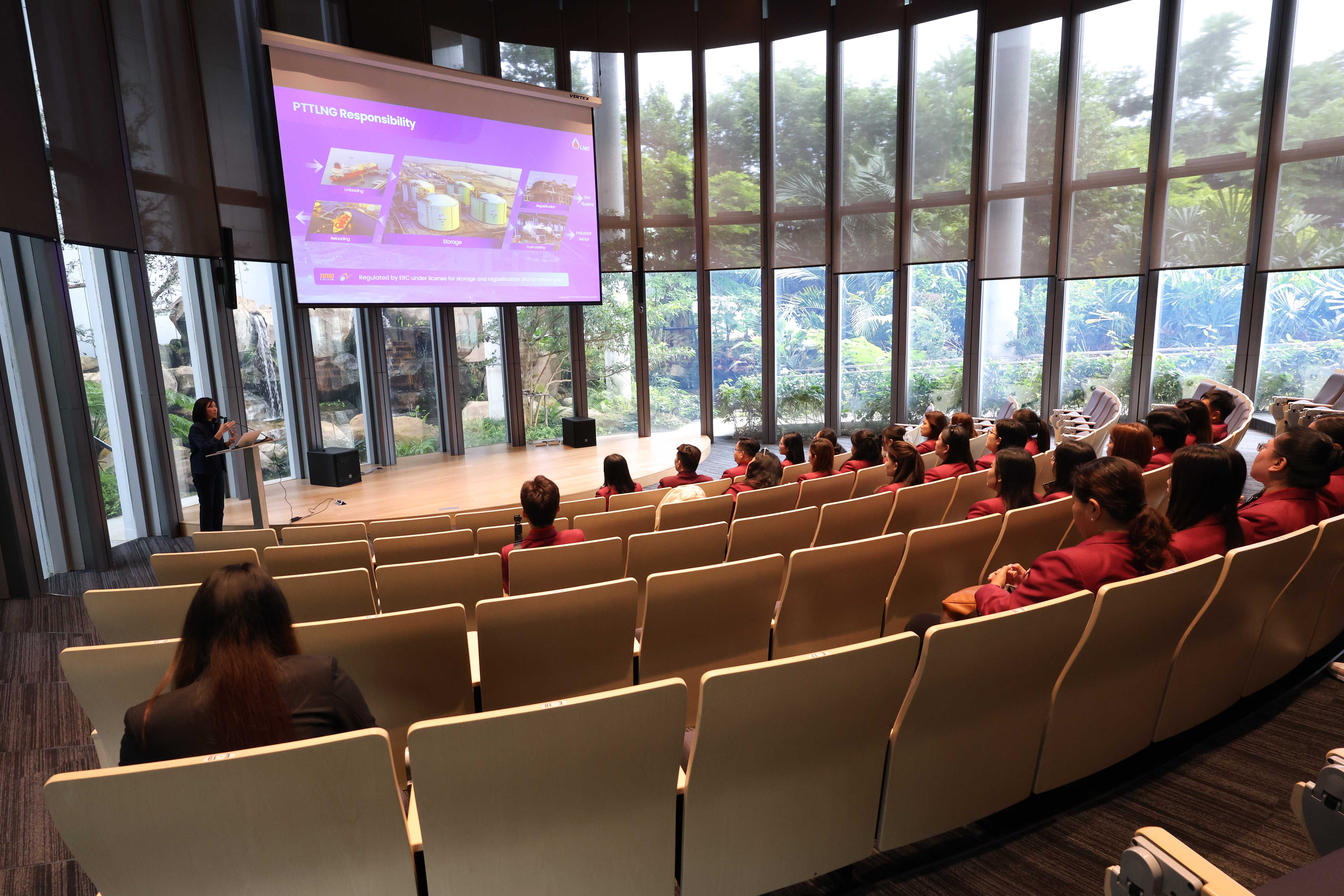วันที่ 17 กรกฎาคม พ.ศ. 2568 PTTLNG ให้การต้อนรับคณะบุคลากรของโรงเรียนกาญจนานุเคราะห์ เนื่องในโอกาสเยี่ยมชม PTTLNG เพื่อศึกษาดูงานการดำเนินธุรกิจของบริษัทฯ และให้เกิดความรู้ ความเข้าใจ ที่มาและการดำเนินด้านนวัตกรรมการนำพลังงานความเย็นจาก LNG ที่เหลือใช้มาพัฒนาให้เกิดประโยชน์สูงสุด รวมถึงระบบการจัดการพลังงานควบคู่กับการอนุรักษ์สิ่งแวดล้อมได้อย่างยั่งยืน โดยคณะฯได้รับฟังการบรรยายสรุป “ภาพรวมการดำเนินธุรกิจ PTTLNG” โดย คุณจุฑารัตน์ พิทักษ์วาทิน พนักงานประชาสัมพันธ์อาวุโส พร้อมทั้งเข้าเยี่ยมชมพรรณไม้เมืองหนาวภายในอาคารนิทรรศน์พรรณพฤกษา ซึ่งใช้พลังงานความเย็นที่เหลือจากกระบวนการแปรสภาพก๊าซธรรมชาติเหลว (LNG) ในการควบคุมอุณหภูมิที่ 15 องศาเซลเซียส ถือเป็นหนึ่งในตัวอย่างนวัตกรรมการใช้พลังงานอย่างมีประสิทธิภาพและยั่งยืน