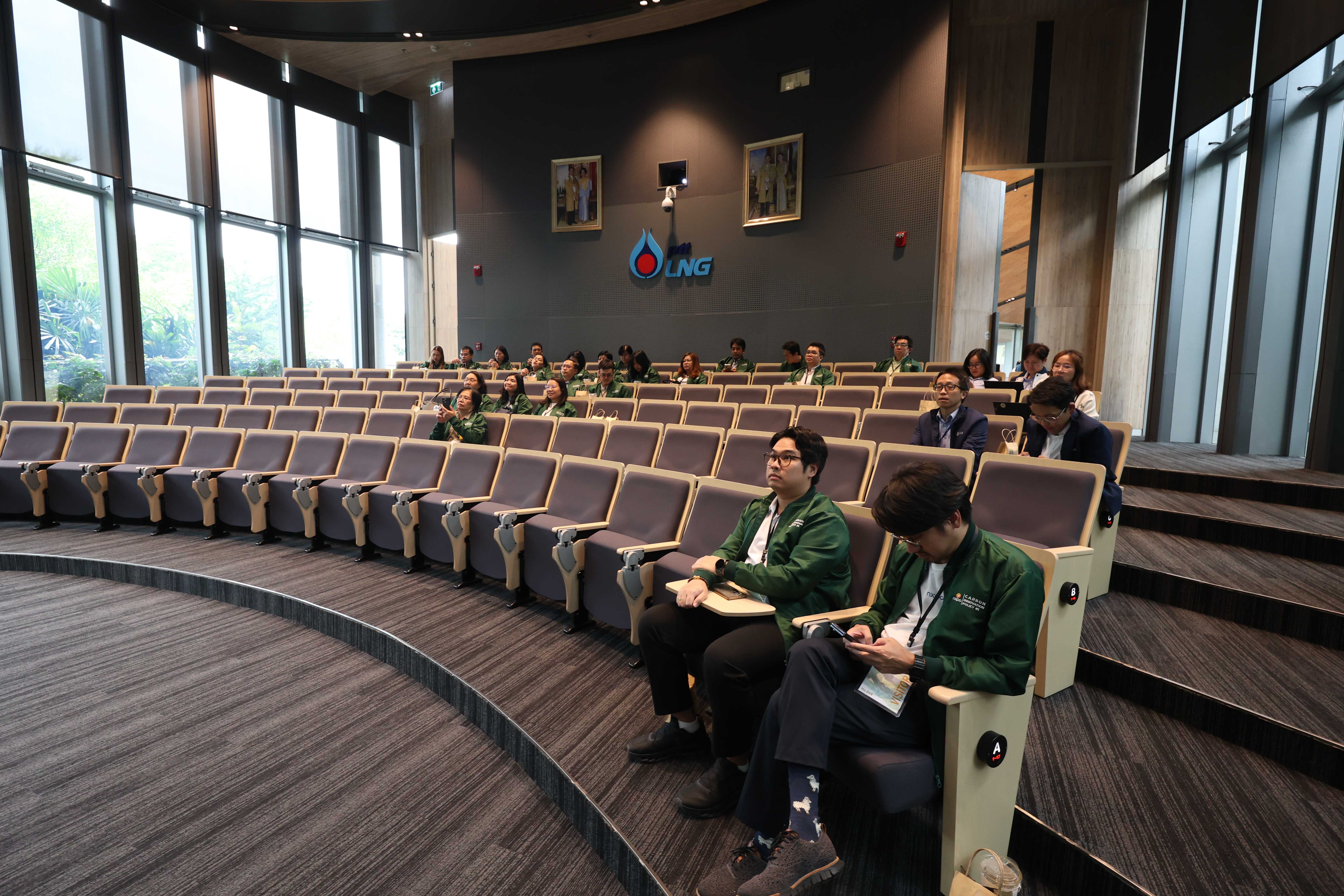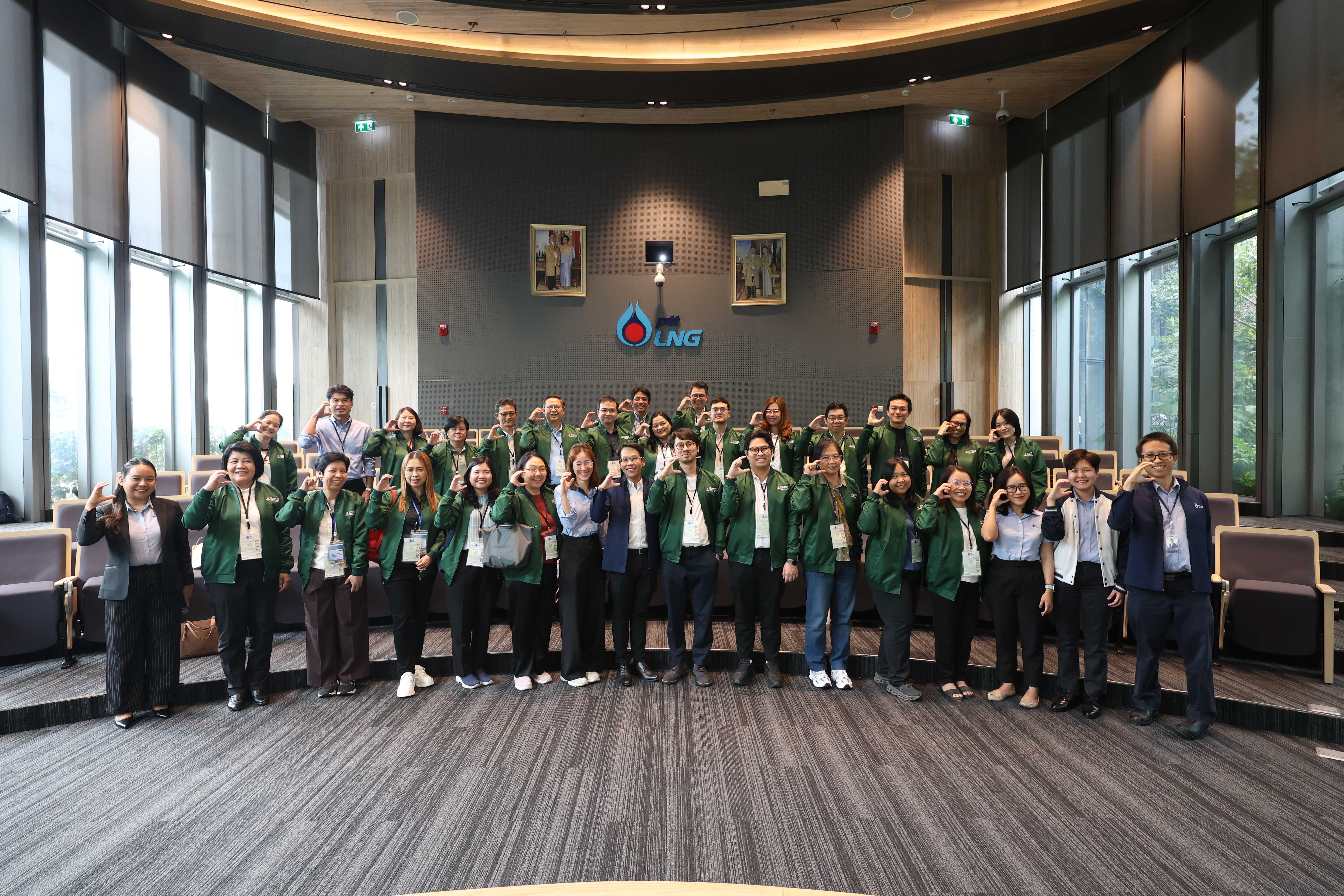 วันที่ 18 กรกฎาคม พ.ศ. 2568 PTTLNG ให้การต้อนรับคณะผู้บริหารระดับสูง และผู้เข้ารับการอบรมในระดับผู้บริหารหลักสูตรนโยบายเทคโนโลยีและนวัตกรรมการจัดการคาร์บอนสำหรับผู้บริหาร สำนักงานสภานโยบายการอุดมศึกษา วิทยาศาสตร์ วิจัยและนวัตกรรมแห่งชาติ (สอวช.) เนื่องในโอกาสเยี่ยมชม PTTLNG เพื่อศึกษาดูงานการดำเนินธุรกิจของ PTTLNG และเกิดความรู้ ความเข้าใจ ที่มาและการดำเนินด้านนวัตกรรมการนำพลังงานความเย็นจาก LNG ที่เหลือใช้มาพัฒนาให้เกิดประโยชน์สูงสุด รวมถึงองค์ความรู้ด้านการบริหารจัดการคาร์บอนที่ทันสมัย โดยคณะฯได้รับฟังการบรรยายสรุป “ภาพรวมการดำเนินธุรกิจ PTTLNG” โดย คุณตฤณ เจตสุคนธร ผู้จัดการส่วนเทคโนโลยีและนวัตกรรม พร้อมทั้งเยี่ยมชมศูนย์ควบคุมการปฏิบัติการส่วนกลาง (Central Control Room) โดยมีคุณคเณศ ธนะเอนกเจริญ รักษาการผู้จัดการส่วนกลยุทธ์องค์กรและพัฒนาธุรกิจ เป็นผู้ให้ข้อมูลเกี่ยวดับพื้นที่กระบวนการผลิต หลังจากนั้น คณะฯได้เข้าเยี่ยมชมพรรณไม้เมืองหนาวภายในอาคารนิทรรศน์พรรณพฤกษา ซึ่งใช้พลังงานความเย็นจาก LNG ในการควบคุมอุณหภูมิที่ 15°C