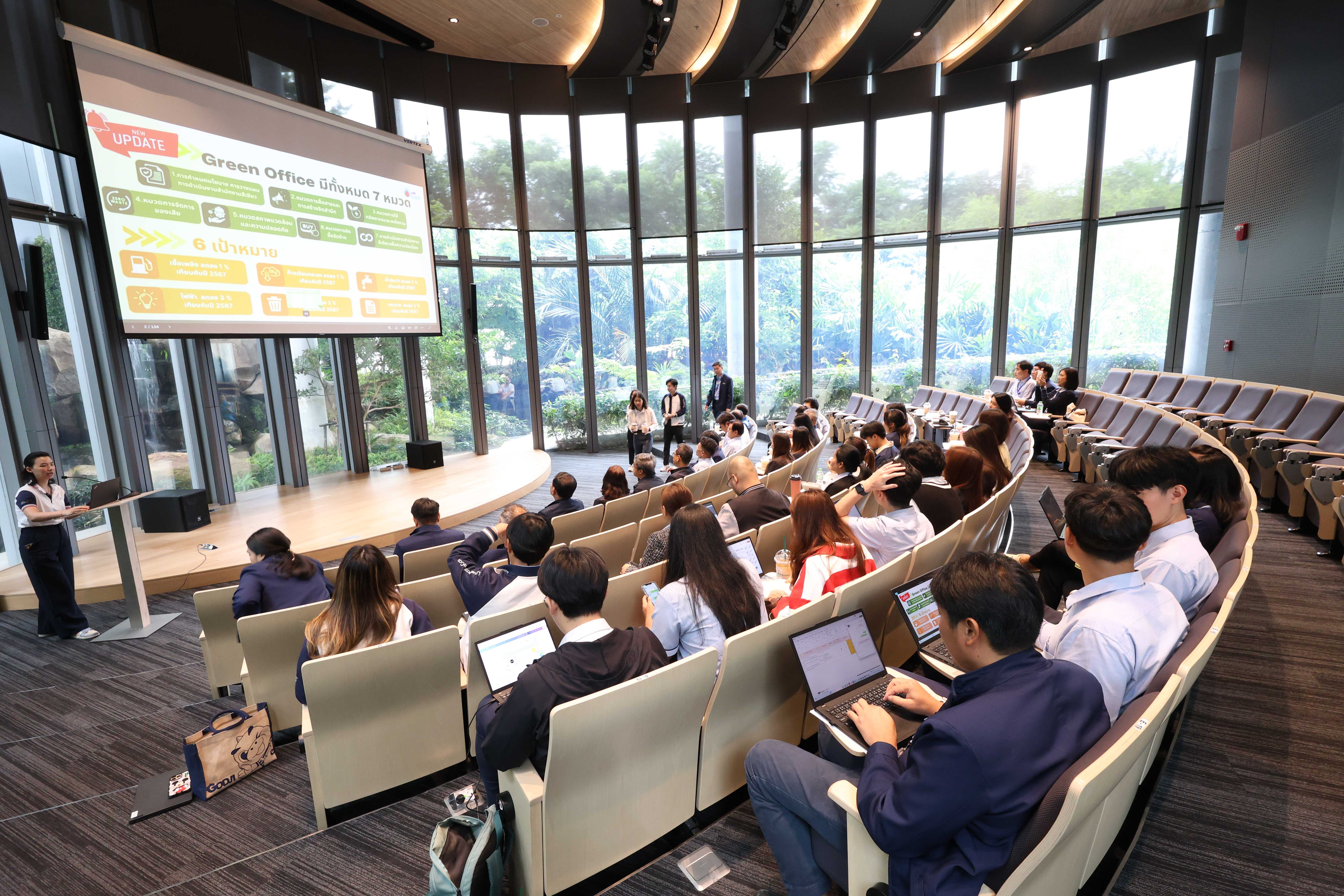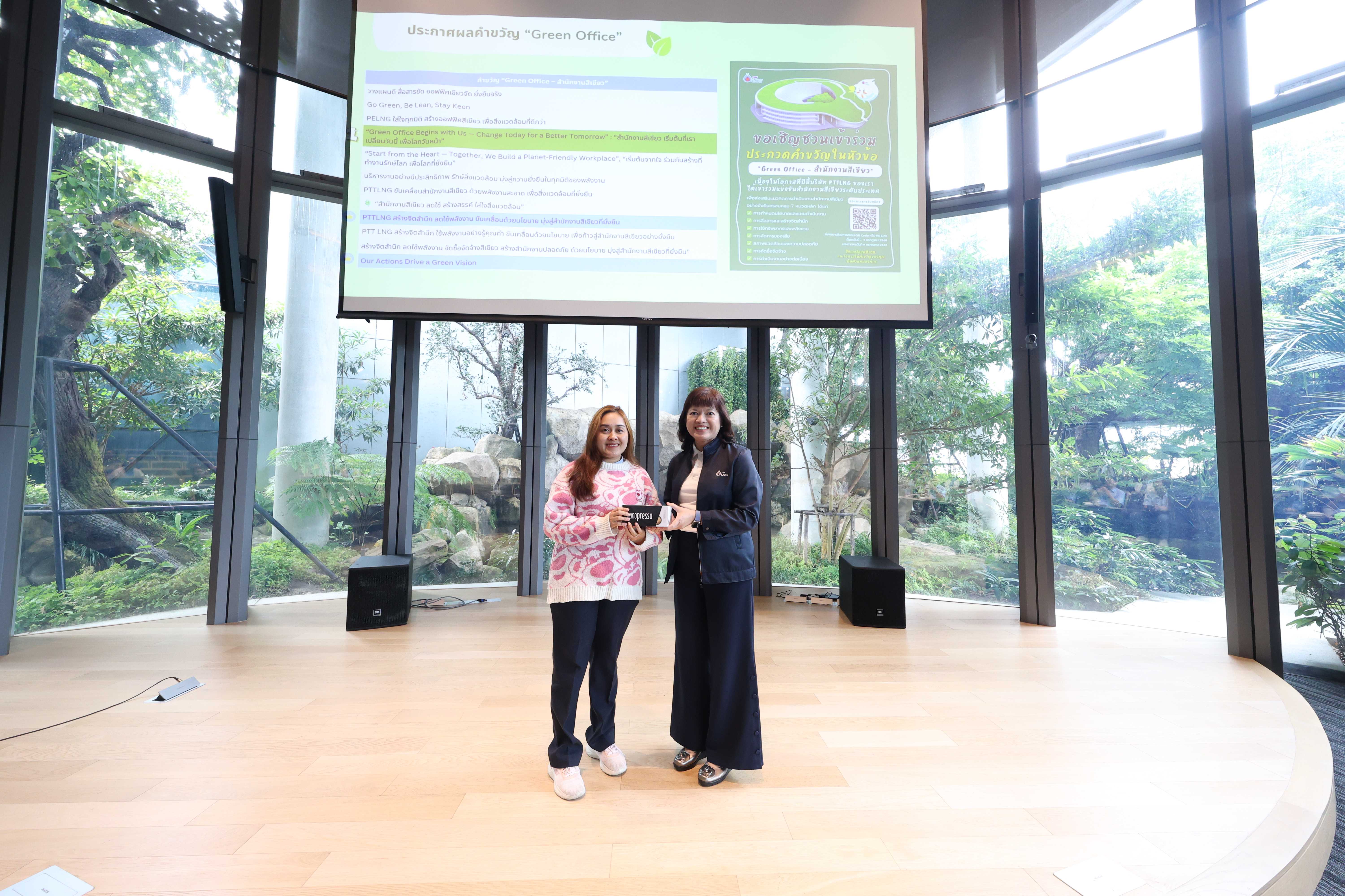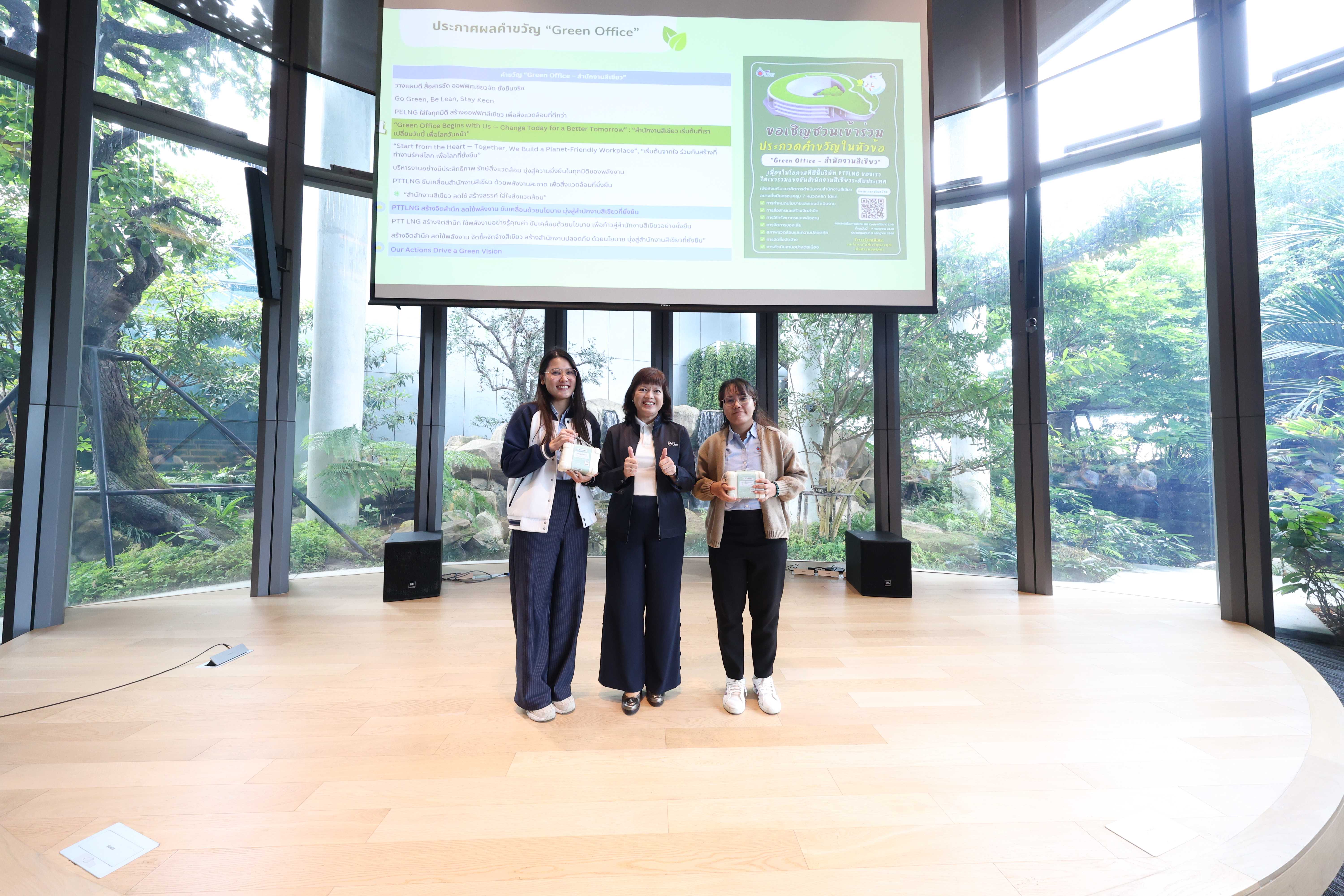 วันที่ 22 กรกฎาคม 2568 คณะผู้บริหารและพนักงานบริษัท พีทีที แอลเอ็นจี จำกัด ร่วมกิจกรรม “Townhall : Green Office Award” เพื่อทบทวนแนวทางและเตรียมความพร้อม ก่อนการประเมินสำนักงานสีเขียวประจำปี 2568 ภายในงานมีการประกาศและมอบรางวัลผู้ชนะการประกวดคำขวัญ Green Office ซึ่งชนะเลิศภายใต้คำขวัญ Green Office Begin with Us – Change Today for a Better Tomorrow สำนักงานสีเขียว เริ่มต้นที่เรา เปลี่ยนวันนี้ เพื่อโลกวันหน้า ซึ่งสะท้อนจิตสำนึกด้านสิ่งแวดล้อมของพนักงาน และส่งเสริมวัฒนธรรมองค์กรเพื่อความยั่งยืน กิจกรรมครั้งนี้นับเป็นอีกก้าวสำคัญในการขับเคลื่อน PTTLNG สู่เป้าหมาย Green Terminal อย่างต่อเนื่อง