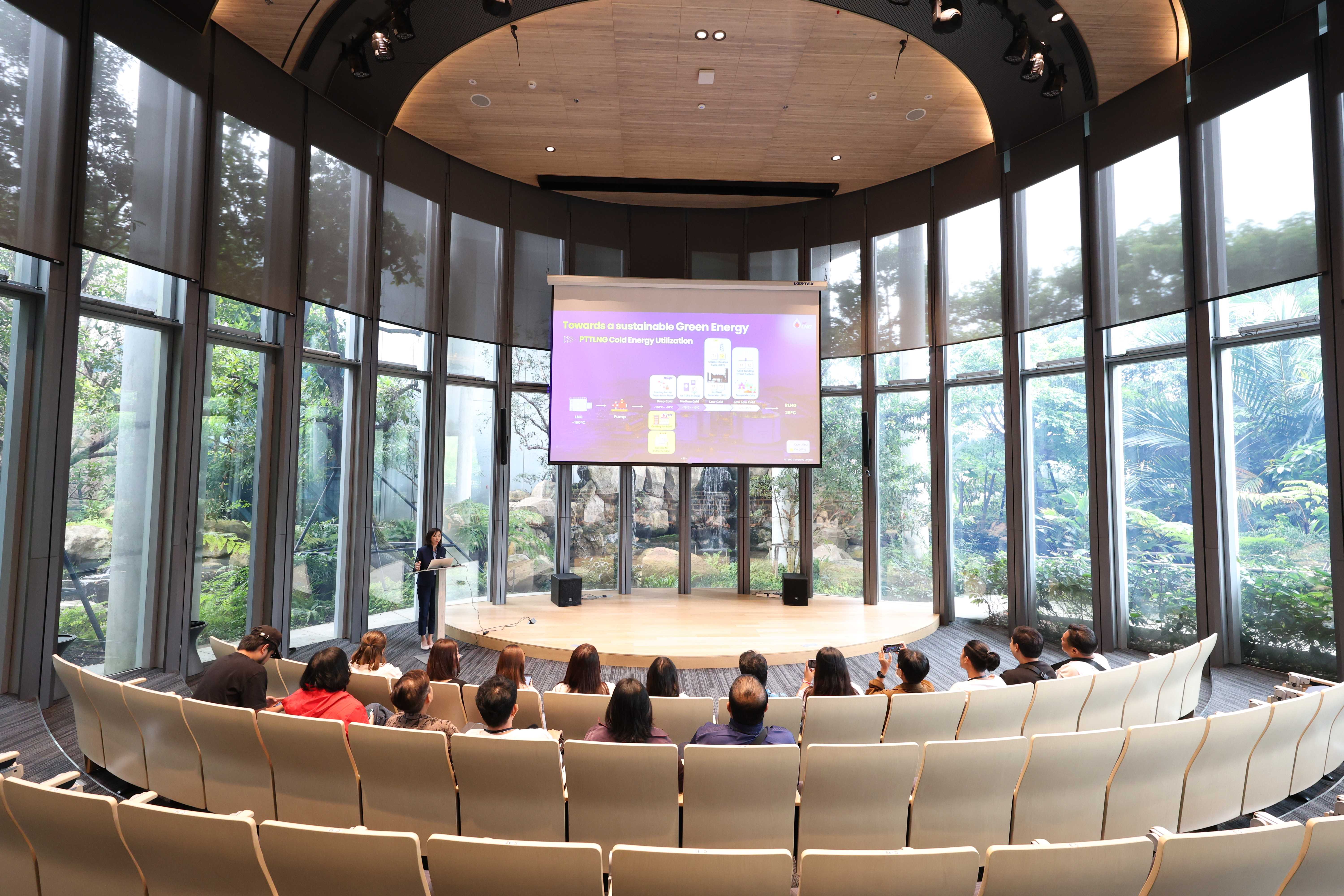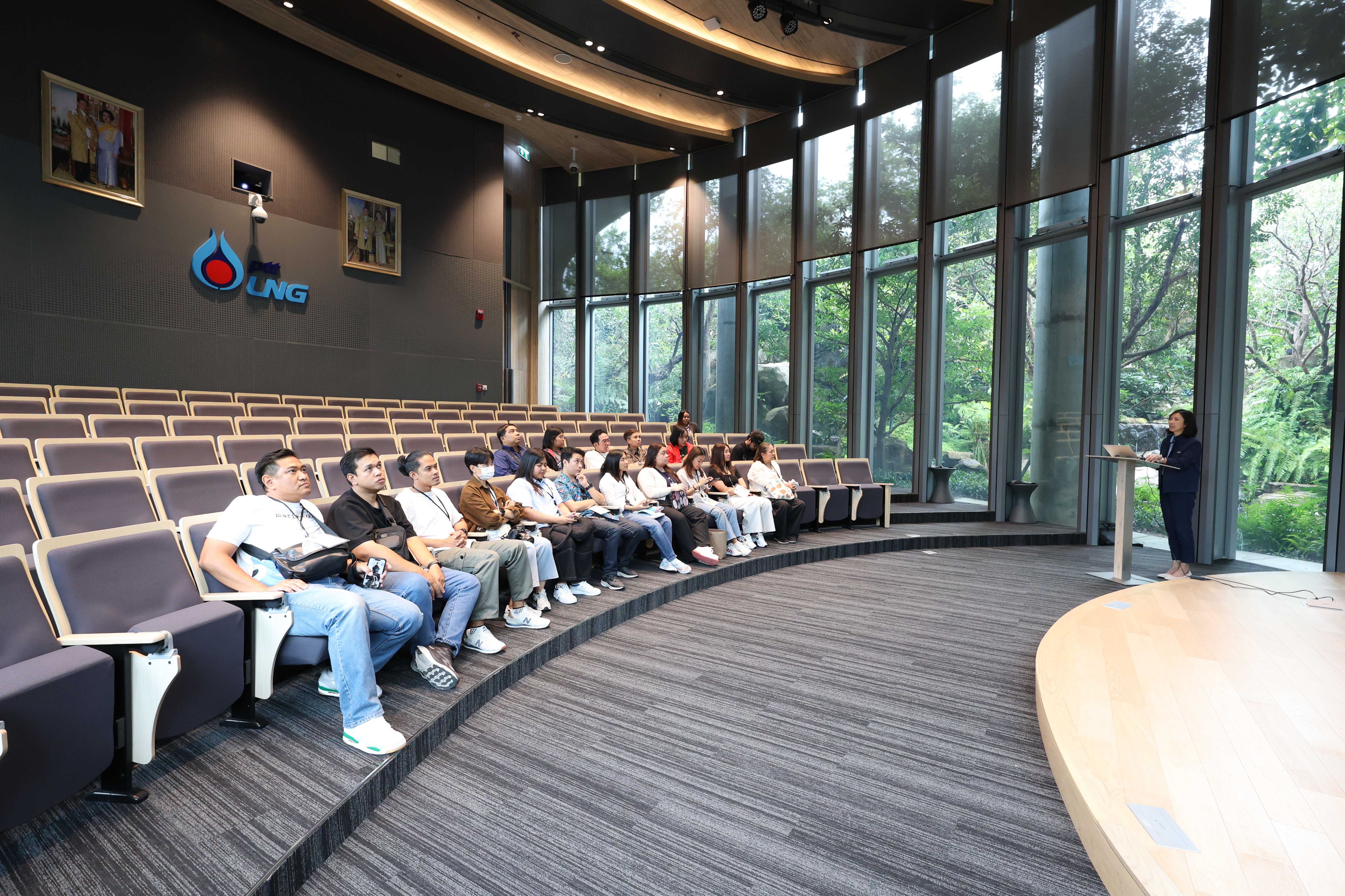 วันที่ 23 กรกฎาคม พ.ศ. 2568  PTTLNG ให้การต้อนรับคณะบุคลากรส่วนกิจการเพื่อสังคม มหาวิทยาลัยศรีนครินทรวิโรฒ เนื่องในโอกาสเยี่ยมชม PTTLNG เพื่อศึกษาเรียนรู้แนวปฏิบัติที่ดีด้านความรับผิดชอบต่อสังคมและสิ่งแวดล้อมที่สอดคล้องกับกระบวนการทำงานของบริษัทฯ และระบบการจัดการพลังงานได้อย่างมีประสิทธิภาพ โดยการนำความเย็นจากกระบวนการแปรสภาพก๊าซธรรมชาติเหลว (LNG) มาใช้ให้เกิดประโยชน์สูงสุด ควบคู่กับการอนุรักษ์สิ่งแวดล้อมได้อย่างยั่งยืน โดยคณะฯได้รับฟังการบรรยายสรุป “ภาพรวมการดำเนินธุรกิจ PTTLNG” โดย คุณจุฑารัตน์ พิทักษ์วาทิน พนักงานประชาสัมพันธ์อาวุโส หลังจากนั้น คณะฯได้เข้าเยี่ยมชมไม้เมืองหนาวภายในอาคารนิทรรศน์พรรณพฤกษา นับเป็นอาคารที่นำพลังงานความเย็นจากก๊าซธรรมชาติเหลว (LNG) มาใช้ในการจัดแสดงพรรณไม้เมืองหนาวที่อุณหภูมิ 15 องศาเซลเซียส