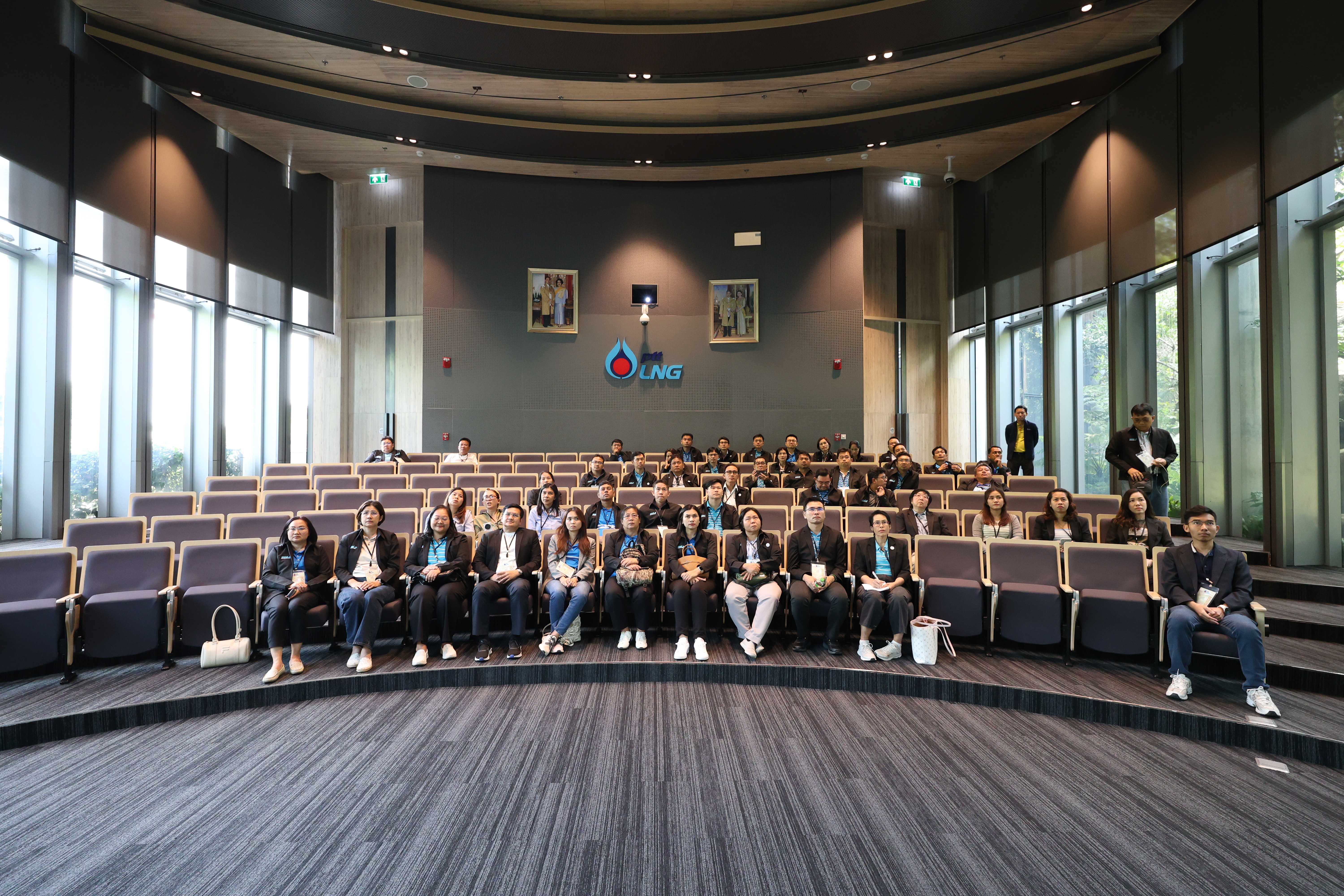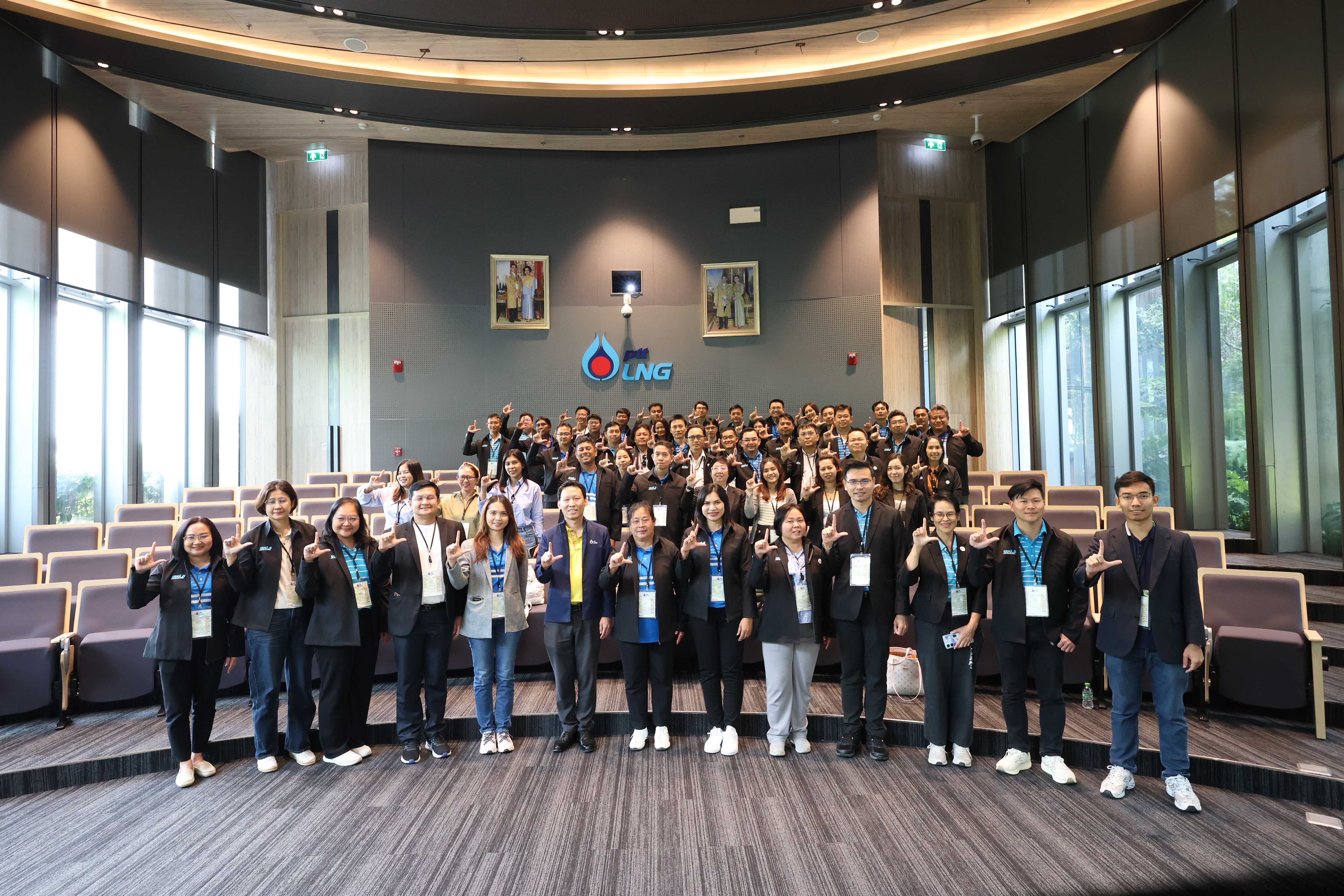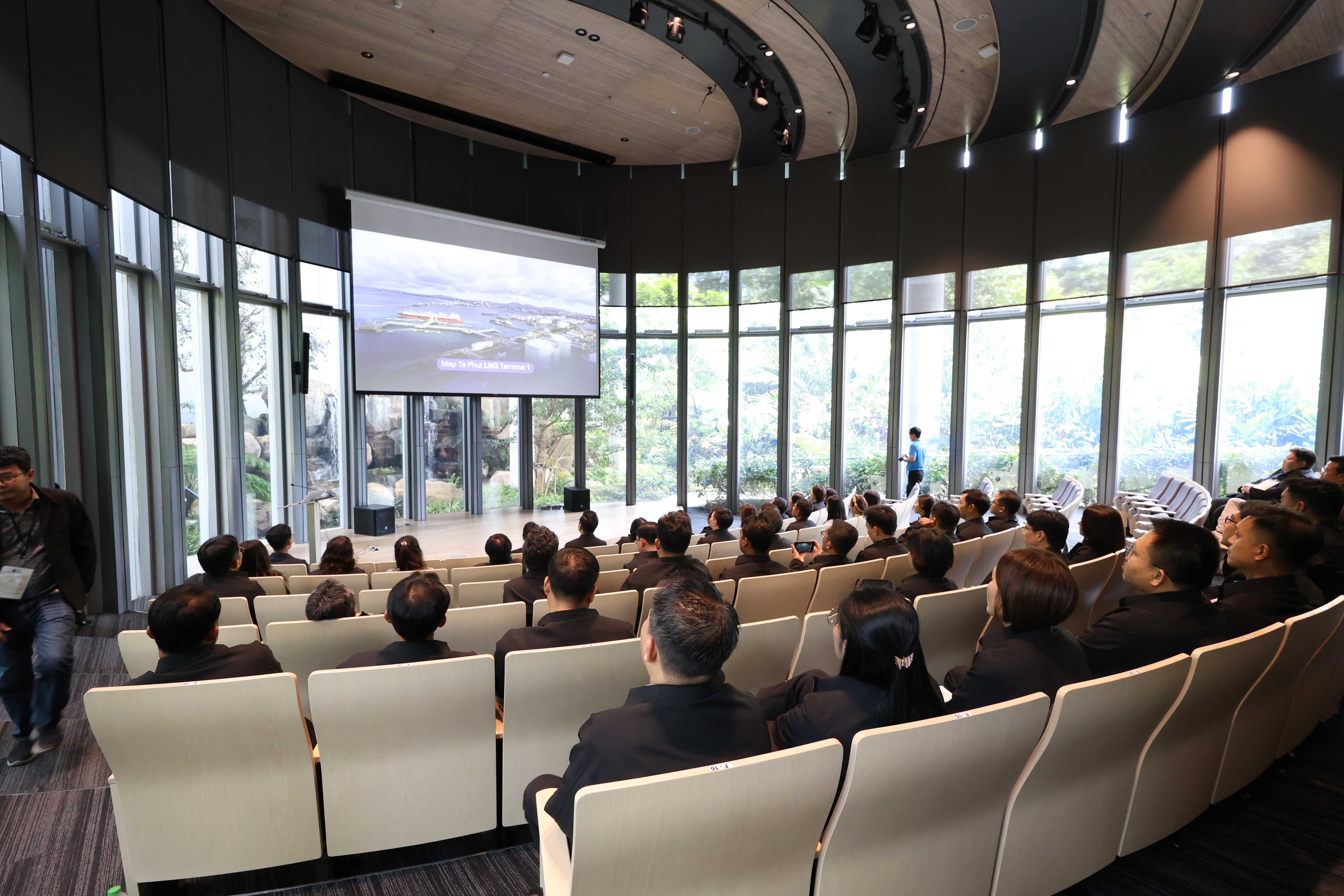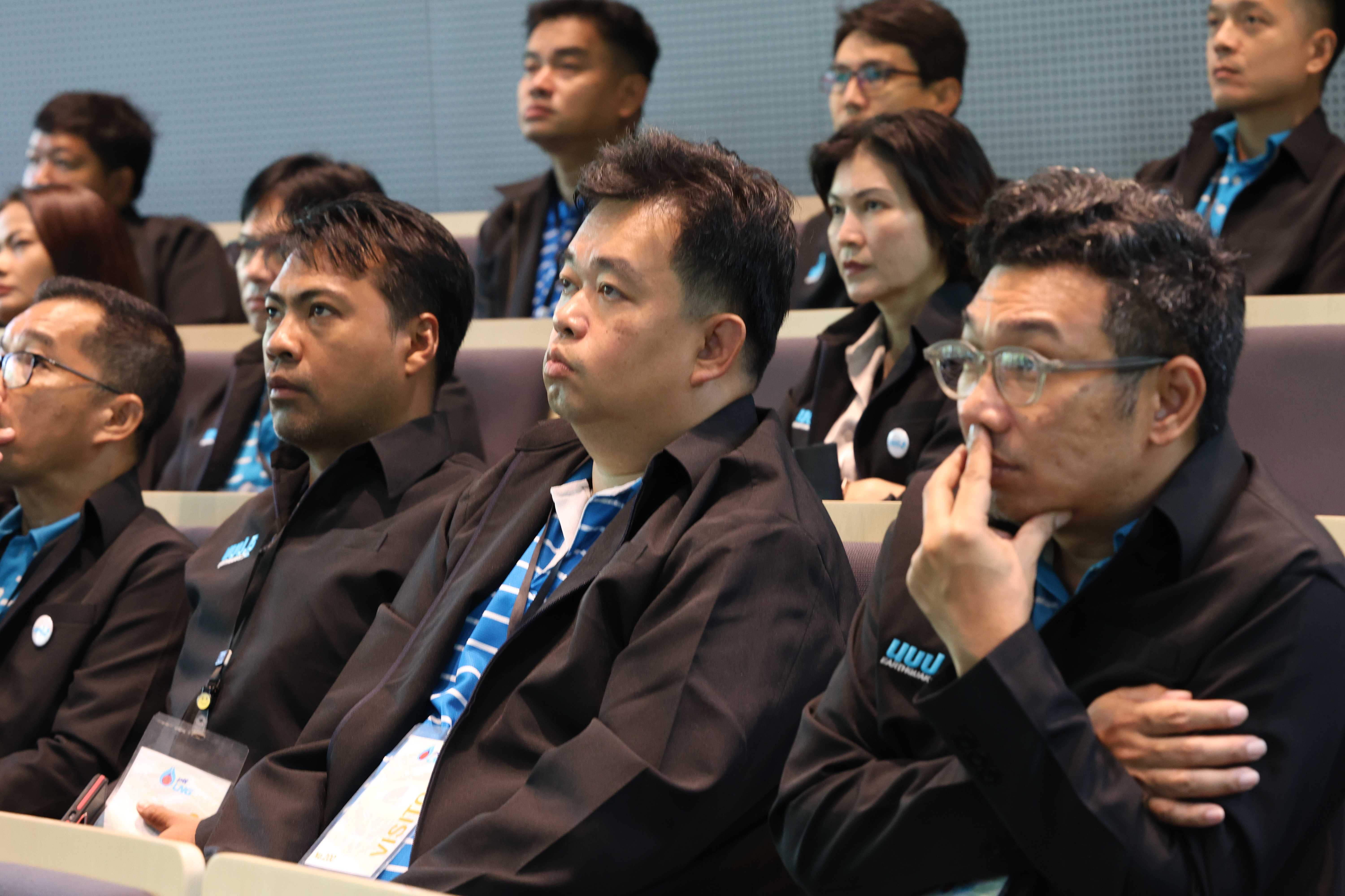 วันที่ 25 กรกฎาคม พ.ศ. 2568 PTTLNG ให้การต้อนรับคณะผู้เข้าร่วมหลักสูตร “การพัฒนานักบริหารกิจการประปา” (นบป.) รุ่นที่ 5 และเจ้าหน้าที่ดำเนินการ การประปาส่วนภูมิภาค เนื่องในโอกาสเยี่ยมชม PTTLNG เพื่อศึกษาดูงานการดำเนินธุรกิจของ PTTLNG และให้เกิดความรู้ ความเข้าใจ ที่มาและการดำเนินด้านนวัตกรรมการนำพลังงานความเย็นจาก LNG ที่เหลือใช้มาพัฒนาให้เกิดประโยชน์สูงสุด รวมถึงระบบการจัดการพลังงานควบคู่กับการอนุรักษ์สิ่งแวดล้อมได้อย่างยั่งยืน โดยคณะฯได้รับฟังการบรรยายสรุป “ภาพรวมการดำเนินธุรกิจ PTTLNG” โดย คุณกิติภูมิ ตั้งวงษ์พิมุข ผู้จัดการส่วนสื่อสารองค์กรและกิจการเพื่อสังคม และรับชมการสาธิตคุณสมบัติก๊าซธรรมชาติเหลว โดย คุณวรัญญู วรธงไชย (พนักงานประชาสัมพันธ์) หลังจากนั้น คณะฯได้เข้าเยี่ยมชมเทคโนโลยีระบบปฏิบัติการที่ศูนย์ควบคุมการปฏิบัติการส่วนกลาง (Central Control Room) ตลอดจนเข้าเยี่ยมชมไม้เมืองหนาวภายในอาคารนิทรรศน์พรรณพฤกษา นับเป็นอาคารที่นำพลังงานความเย็นจากก๊าซธรรมชาติเหลว (LNG) มาใช้ในการจัดแสดงพรรณไม้เมืองหนาวที่อุณหภูมิ 15 องศาเซลเซียส