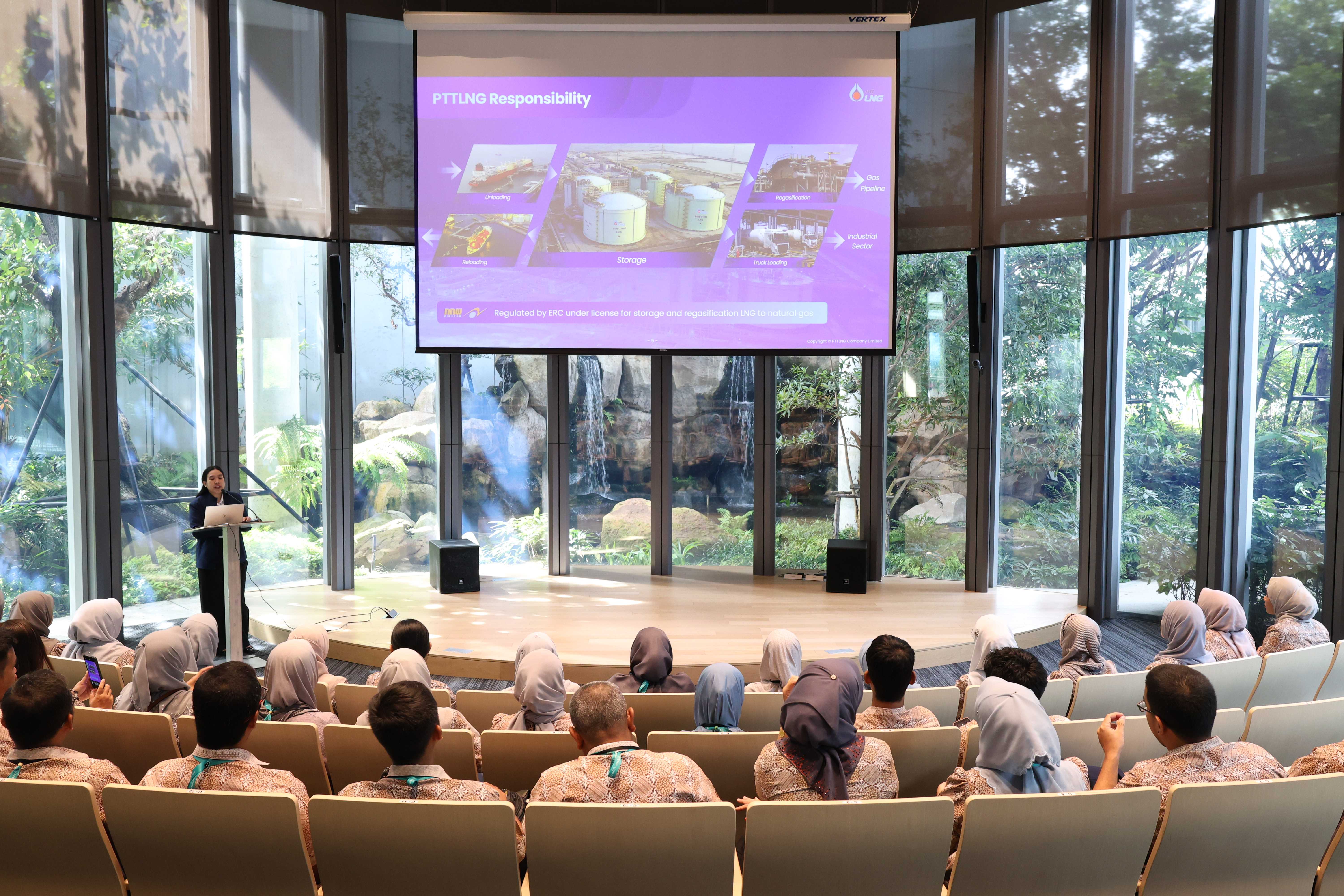วันที่ 6 สิงหาคม พ.ศ. 2568 PTTLNG ให้การต้อนรับคณะบุคลากรที่เข้าร่วมโครงการพัฒนาบุคลากรสู่การเป็นองค์กรอัจฉริยะ โรงพยาบาลไม้แก่น เนื่องในโอกาสเยี่ยมชม PTTLNG เพื่อศึกษาดูงานการดำเนินธุรกิจของบริษัทฯ และให้เกิดความรู้ ความเข้าใจ ด้านการบริหารจัดการงานรับ-จ่ายก๊าซธรรมชาติเหลว ที่มาและการดำเนินด้านนวัตกรรมการนำพลังงานความเย็นจาก LNG ที่เหลือใช้มาพัฒนาให้เกิดประโยชน์สูงสุด รวมถึงระบบการจัดการพลังงานควบคู่กับการอนุรักษ์สิ่งแวดล้อมได้อย่างยั่งยืน โดยคณะฯได้รับฟังการบรรยายสรุป “ภาพรวมการดำเนินธุรกิจ PTTLNG” โดย คุณวรัญญู วรธงไชย พนักงานประชาสัมพันธ์ หลังจากนั้น คณะฯได้เข้าเยี่ยมชมไม้เมืองหนาวภายในอาคารนิทรรศน์พรรณพฤกษา นับเป็นอาคารที่นำพลังงานความเย็นจากก๊าซธรรมชาติเหลว (LNG) มาใช้ในการจัดแสดงพรรณไม้เมืองหนาวที่อุณหภูมิ 15 องศาเซลเซียส