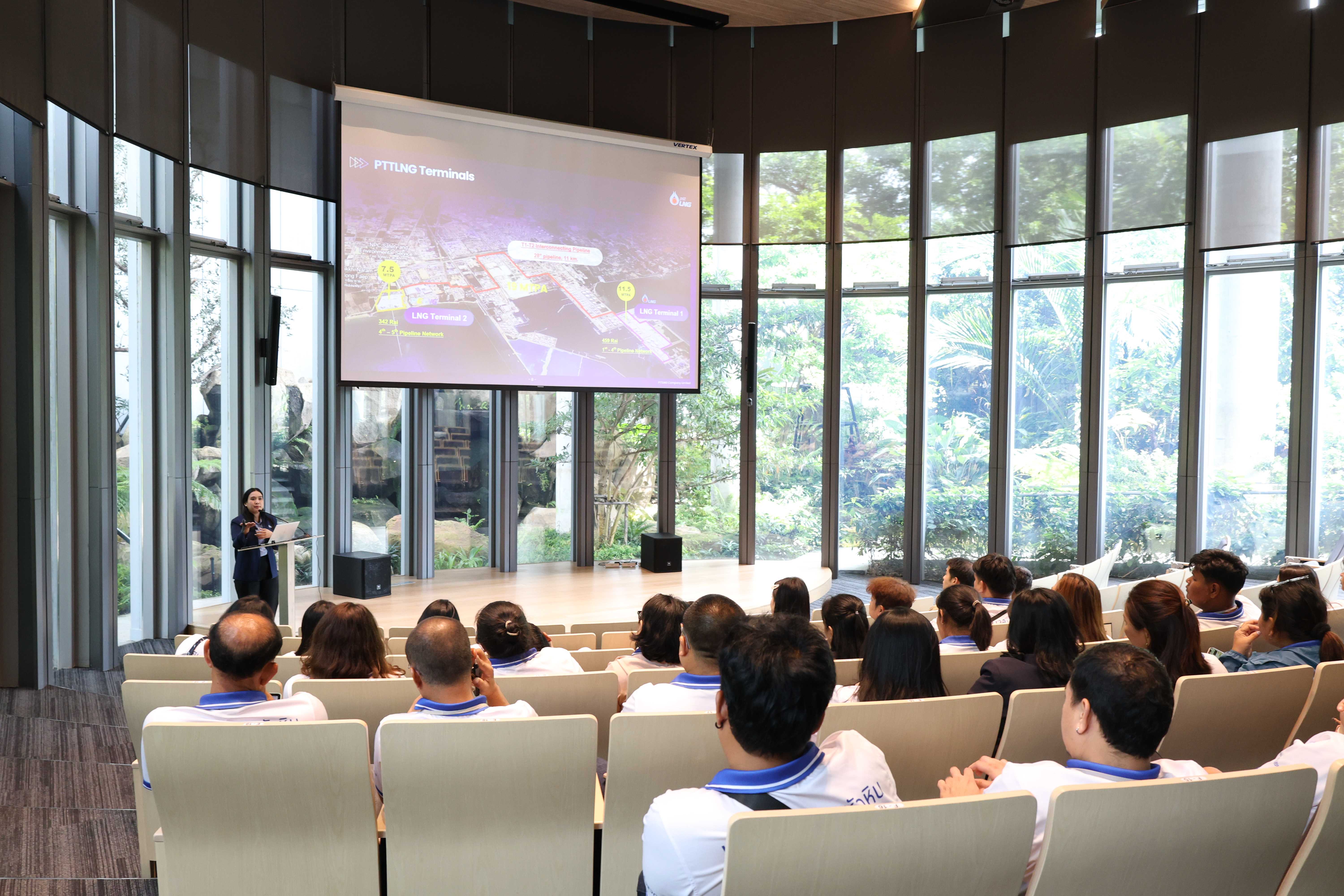 วันที่ 7 สิงหาคม พ.ศ. 2568 PTTLNG ให้การต้อนรับคณะผู้บริหาร หัวหน้าส่วนราชการ พนักงานเทศบาล และบุคลากรกองสาธารณสุขและสิ่งแวดล้อม เทศบาลนครหัวหิน เนื่องในโอกาสเยี่ยมชม PTTLNG และศึกษาดูงานการดำเนินธุรกิจของบริษัทฯ และให้เกิดความรู้ ความเข้าใจ ที่มาและการดำเนินด้านนวัตกรรมการนำพลังงานความเย็นจาก LNG ที่เหลือใช้มาพัฒนาให้เกิดประโยชน์สูงสุด รวมถึงระบบการจัดการพลังงานควบคู่กับการอนุรักษ์สิ่งแวดล้อมได้อย่างยั่งยืน  โดยคณะฯได้รับฟังการบรรยายสรุป “ภาพรวมการดำเนินธุรกิจ PTTLNG” โดย คุณวรัญญู วรธงไชย พนักงานประชาสัมพันธ์ พร้อมกันนี้ คณะฯได้เข้าเยี่ยมชมไม้เมืองหนาวภายในอาคารนิทรรศน์พรรณพฤกษา นับเป็นอาคารที่นำพลังงานความเย็นจากก๊าซธรรมชาติเหลว (LNG) มาใช้ในการจัดแสดงพรรณไม้เมืองหนาวที่อุณหภูมิ 15 องศาเซลเซียส