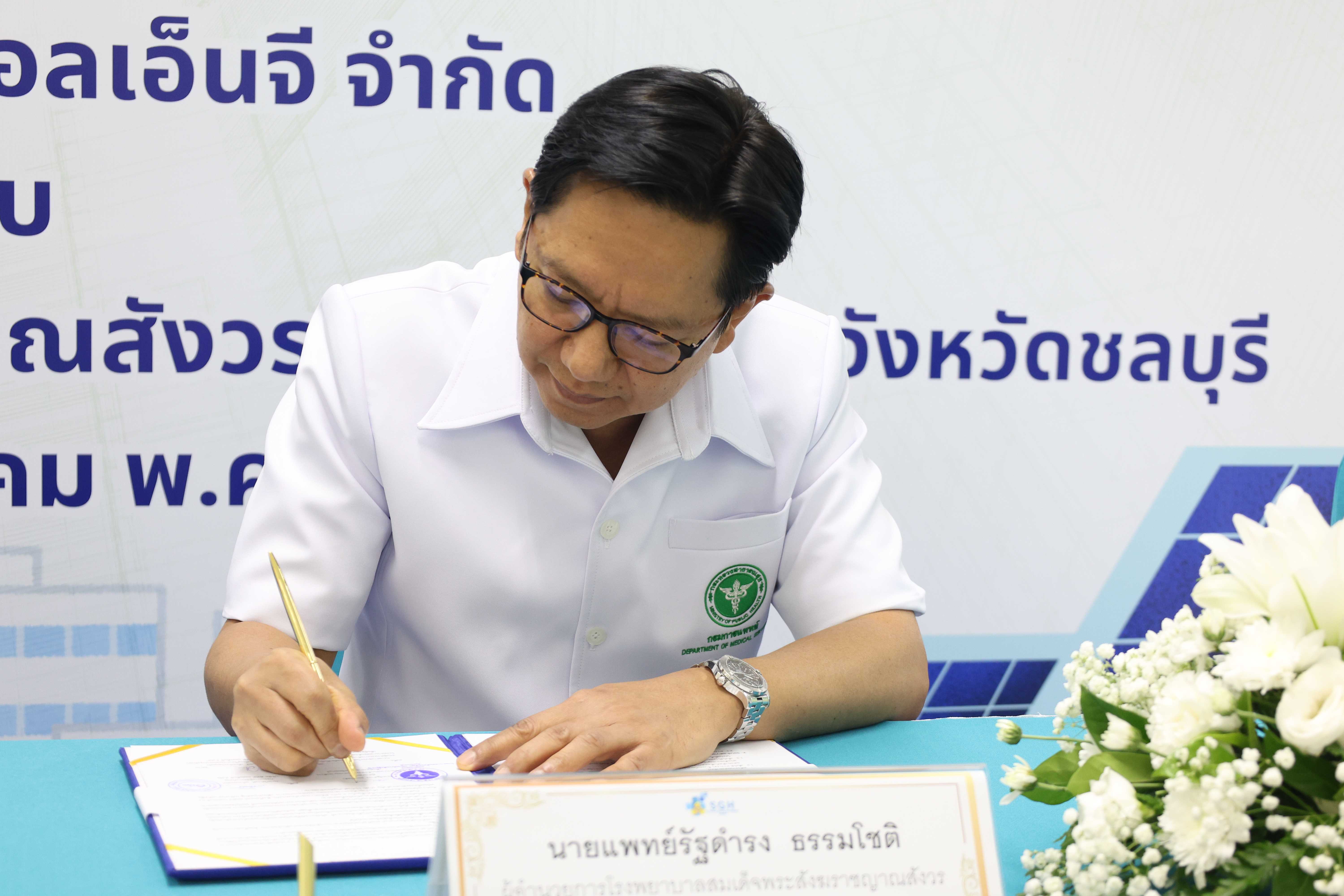 พิธีลงนามมี คุณวารินทร์ เอี่ยมธีระไพบูลย์ รองกรรมการผู้จัดการใหญ่วิศวกรรมและบำรุงรักษา และ คุณปาจรีย์ ลพสัตถยุทธ รองกรรมการผู้จัดการใหญ่บริหารองค์กร ร่วมลงนามกับ นพ.รัฐดำรง ธรรมโชติ ผู้อำนวยการโรงพยาบาล และ พญ.สุประวีณ์ โอภาเฉลิมพันธุ์ รองผู้อำนวยการด้านพัฒนาระบบสุขภาพ โดยโครงการจะแล้วเสร็จไตรมาส 4 ปี 2568 และพร้อมผลิตไฟฟ้าใช้งานต้นปี 2569