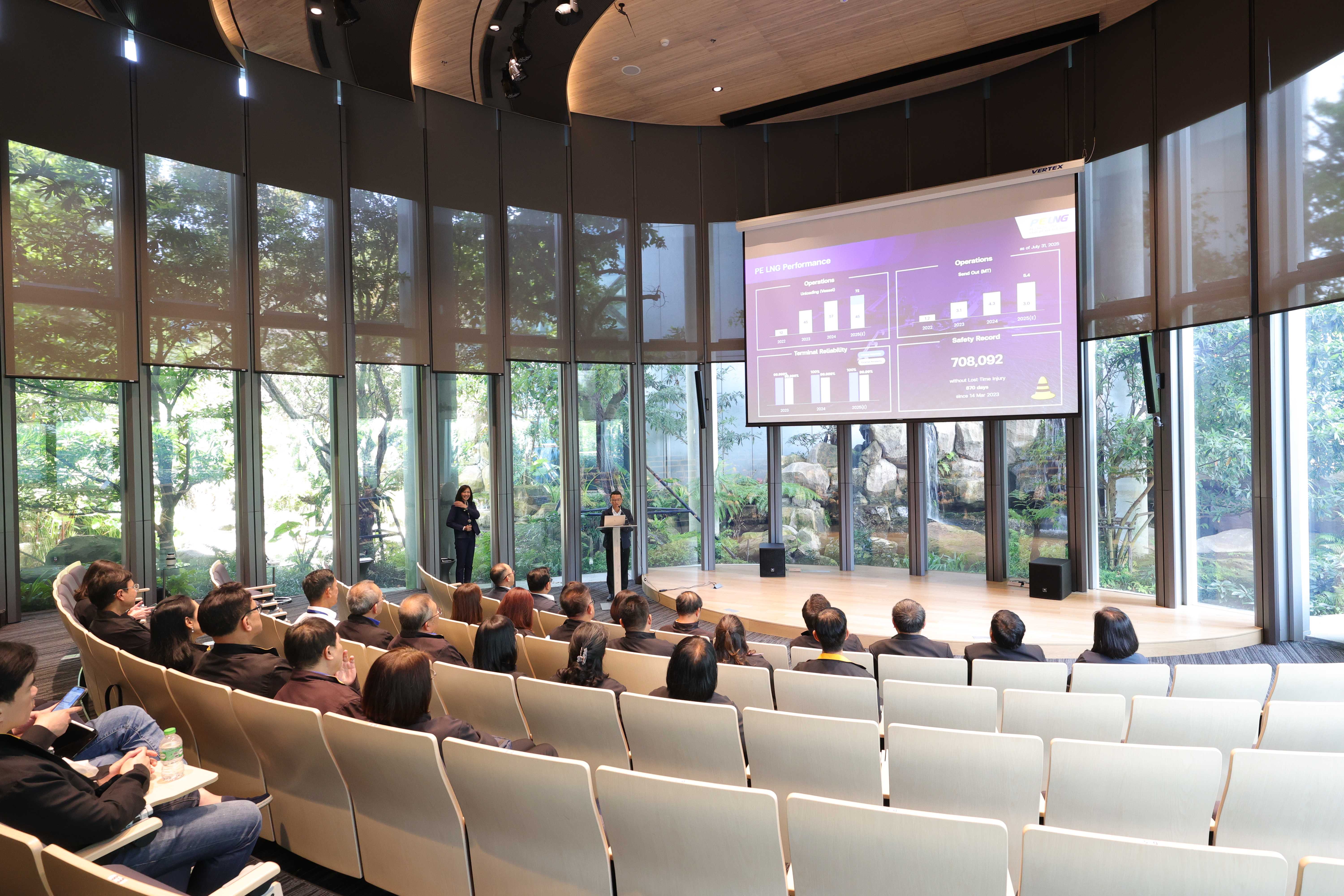 คณะผู้บริหาร กฟผ. ได้รับฟังการบรรยายสรุป “ภาพรวมการดำเนินธุรกิจของบริษัทฯ” โดย คุณสมชาย ระมาศ กรรมการผู้จัดการ บริษัท พีอี แอลเอ็นจี จำกัด พร้อมทั้งรับชมการสาธิตคุณสมบัติของก๊าซธรรมชาติเหลว และเข้าเยี่ยมชมศูนย์ควบคุมการปฏิบัติการส่วนกลาง (Central Control Room) ซึ่งเป็นศูนย์กลางในการควบคุมระบบปฏิบัติการทั้งหมดของสถานีฯ