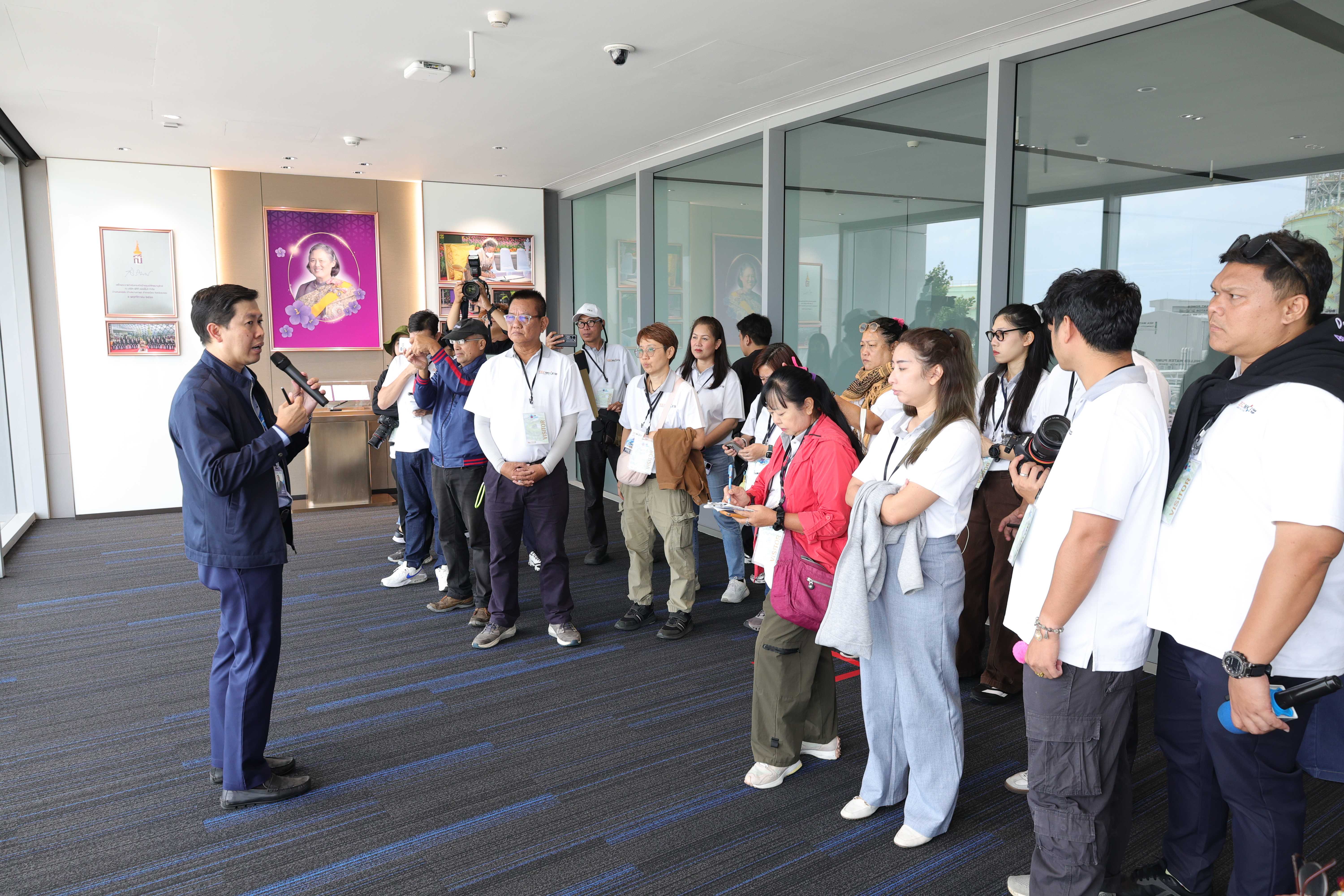 วันที่ 26 สิงหาคม พ.ศ. 2568 PTTLNG ให้การต้อนรับคณะสื่อมวลชนจากกรุงเทพมหานคร ที่เข้าร่วมกิจกรรมประชาสัมพันธ์ศักยภาพพื้นที่ EEC (EEC Media Fam Trip) ภายใต้แนวคิด “EEC MAXIMICE THE FUTURE: เปิดศักยภาพ MICE ก้าวสู่อนาคตไปกับ EEC” เส้นทางจังหวัดระยอง ของคณะสำนักงานส่งเสริมการประชุมและนิทรรศการ (องค์การมหาชน) (สสปน.) ในโอกาสเยี่ยมชม PTTLNG เพื่อศึกษาดูงานการดำเนินธุรกิจของบริษัทฯ และให้เกิดความรู้ ความเข้าใจ ที่มาและการดำเนินด้านนวัตกรรมการนำพลังงานความเย็นจาก LNG ที่เหลือใช้มาพัฒนาให้เกิดประโยชน์สูงสุด รวมถึงระบบการจัดการพลังงานควบคู่กับการอนุรักษ์สิ่งแวดล้อม พร้อมทั้งคำนึงถึงการมีส่วนรับผิดชอบต่อชุมชนและสังคมอย่างยั่งยืน โดยคณะฯได้รับฟังการบรรยายสรุป “ภาพรวมการดำเนินธุรกิจ PTTLNG” โดย คุณนฤนาถ หุ่นเจริญ ผู้จัดการส่วนทรัพยากรบุคคลและพัฒนาองค์กร พร้อมกันนี้ คณะฯได้เข้าเยี่ยมชมศูนย์ควบคุมการปฏิบัติการส่วนกลาง (Central Control Room) ซึ่งเป็นหัวใจสำคัญของระบบปฏิบัติการ หลังจากนั้น คณะฯเข้าเยี่ยมชมพรรณไม้เมืองหนาวภายในอาคารนิทรรศน์พรรณพฤกษา ที่ใช้พลังงานความเย็นที่เหลือจากกระบวนการแปรสภาพก๊าซธรรมชาติเหลว (LNG) ในการควบคุมอุณหภูมิที่ 15 องศาเซลเซียส