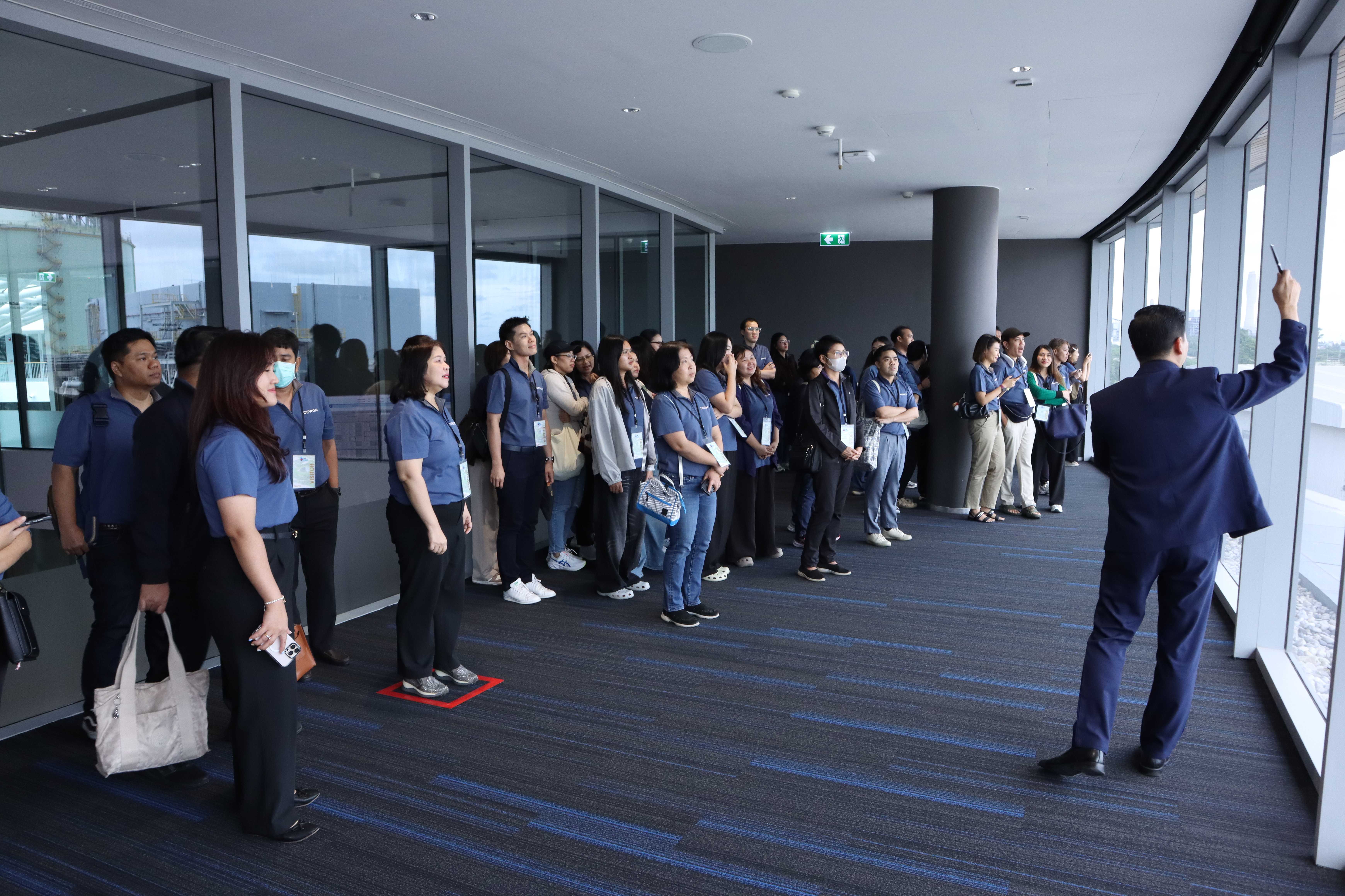 วันที่ 10 กันยายน พ.ศ. 2568 PTTLNG ให้การต้อนรับคณะผู้บริหารและบุคลากรกองยุทธศาสตร์และแผนงาน กรมส่งเสริมอุตสาหกรรม ในโอกาสเข้าเยี่ยมชมและศึกษาดูงานการดำเนินธุรกิจของ PTTLNG และเกิดความรู้ ความเข้าใจ ที่มาและการดำเนินด้านนวัตกรรมการนำพลังงานความเย็นจาก LNG ที่เหลือใช้มาพัฒนาให้เกิดประโยชน์สูงสุด รวมถึงองค์ความรู้ด้านการพัฒนาอย่างยั่งยืน โดยคณะฯได้รับฟังการบรรยายสรุป “ภาพรวมการดำเนินธุรกิจ PTTLNG” โดย คุณนฤนาถ หุ่นเจริญ ผู้จัดการส่วนทรัพยากรบุคคลและพัฒนาองค์กร และคุณทีปกร ราชสืบ พนักงานความปลอดภัย ร่วมการตอบข้อซักถาม หลังจากนั้น คณะฯได้เข้าเยี่ยมชมศูนย์ควบคุมการปฏิบัติการส่วนกลาง (Central Control Room) ซึ่งเป็นหัวใจสำคัญของระบบปฏิบัติการ และเข้าเยี่ยมชมพรรณไม้เมืองหนาวภายในอาคารนิทรรศน์พรรณพฤกษา ซึ่งใช้พลังงานความเย็นที่เหลือจากกระบวนการแปรสภาพก๊าซธรรมชาติเหลว (LNG) ในการควบคุมอุณหภูมิที่ 15 องศาเซลเซียส ถือเป็นหนึ่งในตัวอย่างนวัตกรรมการใช้พลังงานอย่างมีประสิทธิภาพและยั่งยืน