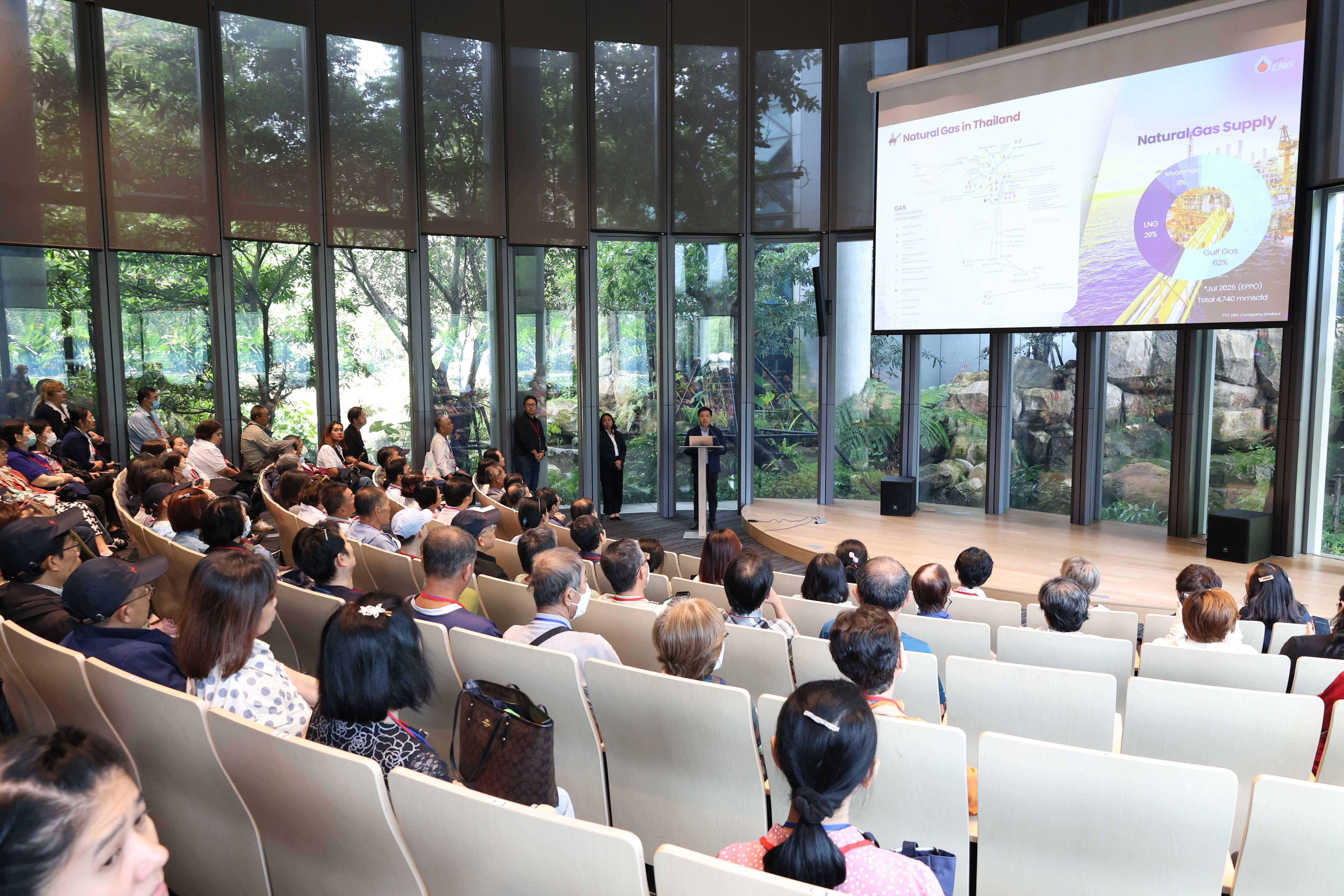 วันที่ 11 กันยายน พ.ศ. 2568 PTTLNG ให้การต้อนรับคณะผู้ถือหุ้น บริษัท ไออาร์พีซี จำกัด (มหาชน) ในโอกาสเข้าเยี่ยมชมและศึกษาดูงานการดำเนินธุรกิจของ PTTLNG และเกิดความรู้ ความเข้าใจ ที่มาและการดำเนินด้านนวัตกรรมการนำพลังงานความเย็นจาก LNG ที่เหลือใช้มาพัฒนาให้เกิดประโยชน์สูงสุด รวมถึงองค์ความรู้ด้านการพัฒนาอย่างยั่งยืน นโยบายกำกับกิจการที่ดี และการประเมินผลกระทบสิ่งแวดล้อม โดยคณะฯได้รับฟังการบรรยายสรุป “ภาพรวมการดำเนินธุรกิจ PTTLNG” โดย คุณนรา โตแย้ม ผู้จัดการส่วนบริการกลาง จัดหาและคลังพัสดุ หลังจากนั้นคณะฯได้เข้าเยี่ยมชมไม้เมืองหนาวภายในอาคารนิทรรศน์พรรณพฤกษา ที่นำพลังงานความเย็นจากก๊าซธรรมชาติเหลว (LNG) มาใช้ประโยชน์กับระบบปรับอากาศภายในอาคาร