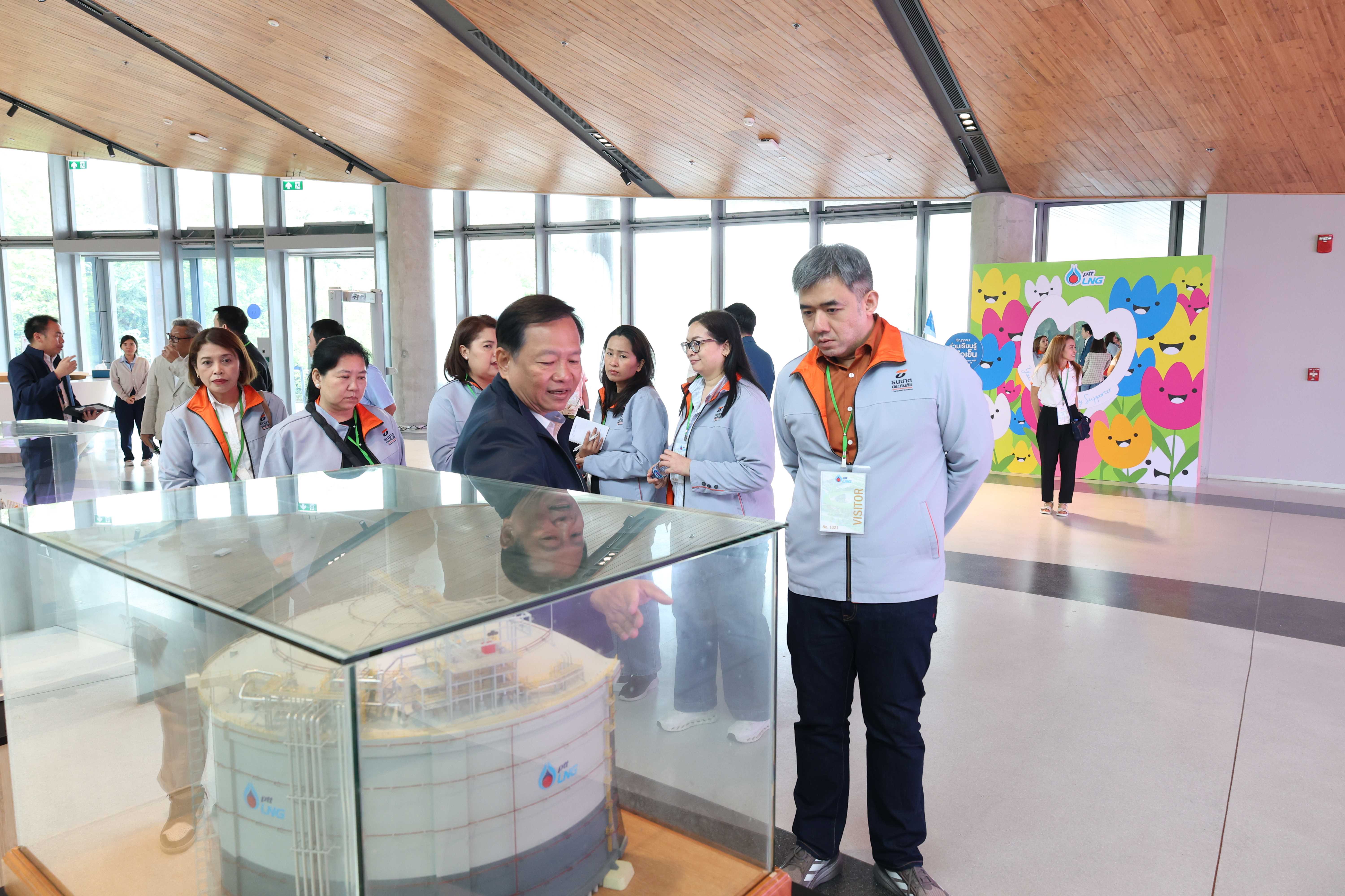วันที่ 12 กันยายน พ.ศ. 2568 บริษัท พีทีที แอลเอ็นจี จำกัด นำโดย คุณวารินทร์ เอี่ยมธีระไพบูลย์ รองกรรมการผู้จัดการใหญ่วิศวกรรมและบำรุงรักษา ให้การต้อนรับคณะผู้บริหารและพนักงาน กลุ่มบริษัท ธนชาต กรุ๊ป เนื่องในโอกาสเยี่ยมชม PTTLNG เพื่อศึกษาดูงานการดำเนินธุรกิจของ PTTLNG ให้เกิดความรู้ ความเข้าใจ ที่มาและการดำเนินด้านนวัตกรรมการนำพลังงานความเย็นจาก LNG ที่เหลือใช้มาพัฒนาให้เกิดประโยชน์สูงสุด รวมถึงการใช้แนวคิด ESG ในการบริหารองค์กรสู่ความยั่งยืน โดยคณะฯได้รับฟังการบรรยายสรุป “ภาพรวมการดำเนินธุรกิจ PTTLNG” โดย คุณกิตติพงษ์ ภวะจันทร์สถิต ผู้จัดการแผนกวิศวกรรม พร้อมทั้งเยี่ยมชมศูนย์ควบคุมการปฏิบัติการส่วนกลาง (Central Control Room) หลังจากนั้น คณะฯได้เข้าเยี่ยมชมพรรณไม้เมืองหนาวภายในอาคารนิทรรศน์พรรณพฤกษา ซึ่งใช้พลังงานความเย็นจาก LNG ในการควบคุมอุณหภูมิที่ 15 องศาเซลเซียส