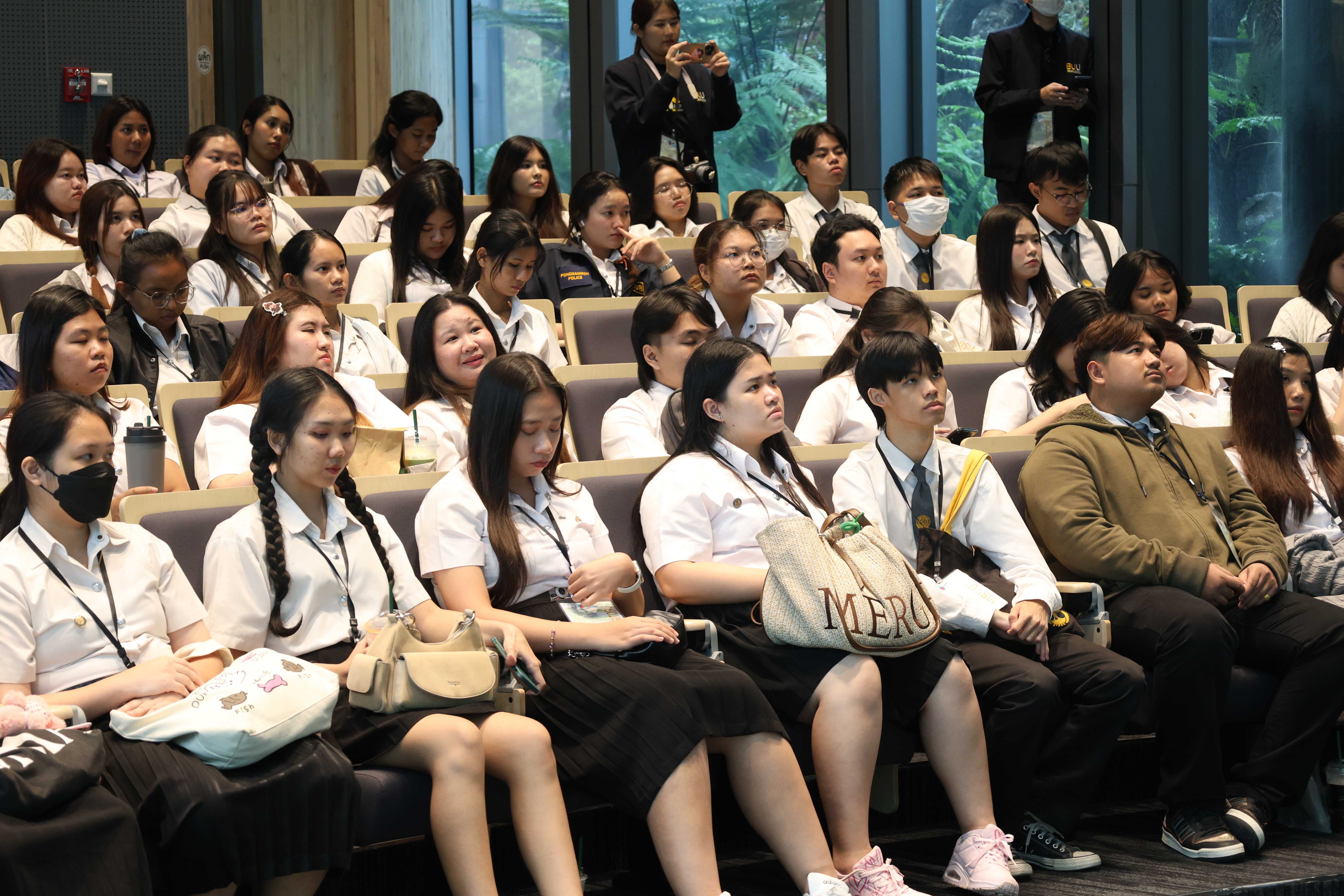 วันที่ 15 ตุลาคม พ.ศ. 2568 PTTLNG ให้การต้อนรับคณาจารย์และนักศึกษาจากคณะรัฐศาสตร์และนิติศาสตร์ มหาวิทยาลัยบูรพา ในโอกาสเยี่ยมชม PTTLNG เพื่อศึกษาดูงานการดำเนินธุรกิจของ PTTLNG และให้เกิดความรู้ ความเข้าใจ ด้านการบริหารจัดการงานรับ-จ่ายก๊าซธรรมชาติเหลว ที่มาและการดำเนินด้านนวัตกรรมการนำพลังงานความเย็นจาก LNG ที่เหลือใช้มาพัฒนาให้เกิดประโยชน์สูงสุด รวมถึงระบบการจัดการพลังงานควบคู่กับการอนุรักษ์สิ่งแวดล้อมได้อย่างยั่งยืน โดยคณะฯได้รับฟังการบรรยายสรุป “ภาพรวมการดำเนินธุรกิจ PTTLNG” โดย คุณจุฑารัตน์ พิทักษ์วาทิน พนักงานประชาสัมพันธ์อาวุโส หลังจากนั้น คณะฯได้เข้าเยี่ยมชมพรรณไม้เมืองหนาวภายในอาคารนิทรรศน์พรรณพฤกษา ซึ่งใช้พลังงานความเย็นที่เหลือจากกระบวนการแปรสภาพก๊าซธรรมชาติเหลว (LNG) ในการควบคุมอุณหภูมิที่ 15 องศาเซลเซียส
