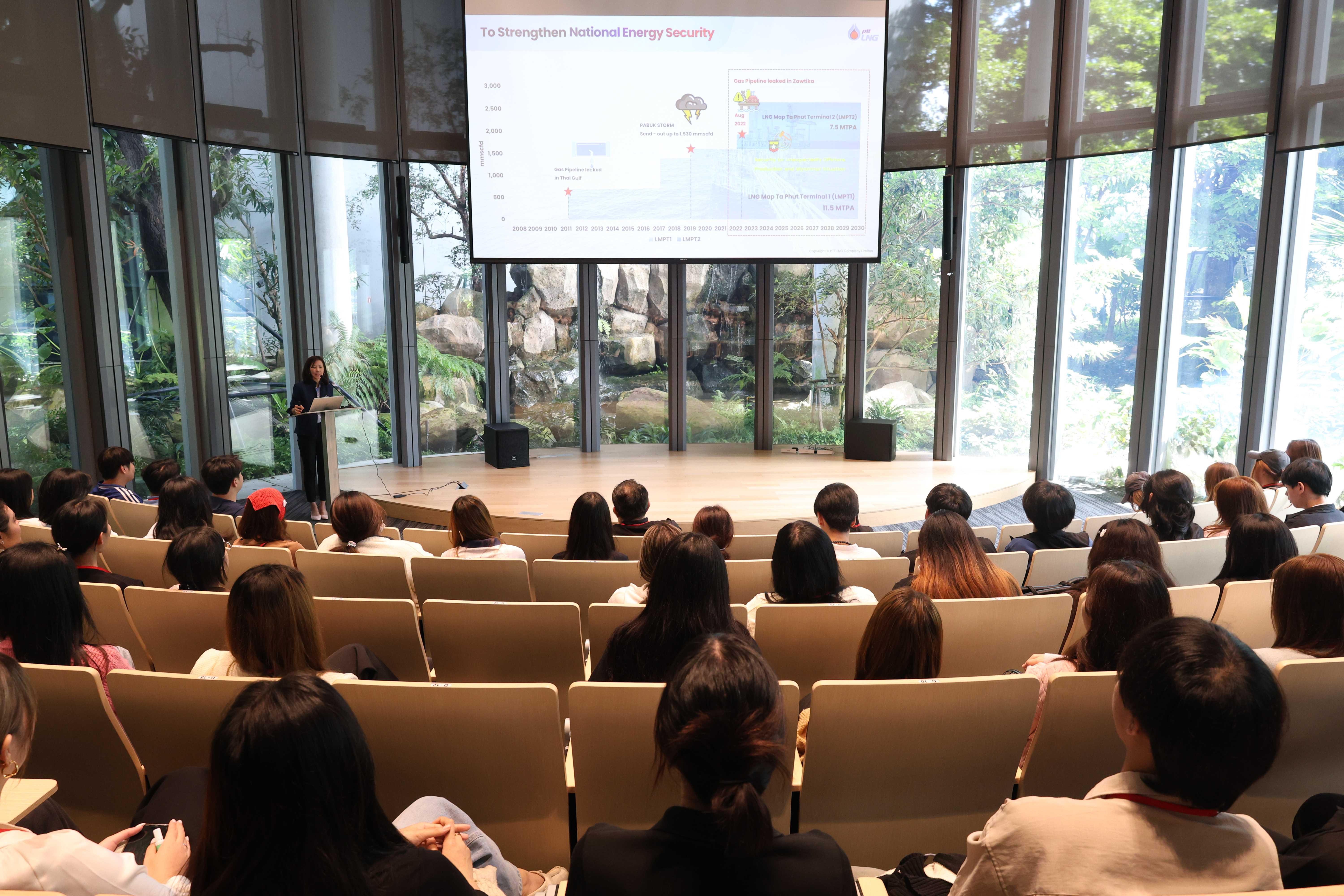 วันที่ 15 ตุลาคม พ.ศ. 2568 PTTLNG ให้การต้อนรับคณาจารย์และนักศึกษาที่เข้าร่วม "โครงการศึกษาดูงานด้านการจัดการนวัตกรรมและดิจิทัลสู่อนาคตที่ยั่งยืน” สาขาการจัดการนวัตกรรมทางธุรกิจ คณะวิทยาการจัดการ มหาวิทยาลัยศิลปากร ในโอกาสเยี่ยมชม PTTLNG เพื่อศึกษาดูงานการดำเนินธุรกิจของ PTTLNG และให้เกิดความรู้ ความเข้าใจ ด้านการบริหารจัดการงานรับ-จ่ายก๊าซธรรมชาติเหลว ที่มาและการดำเนินด้านนวัตกรรมการนำพลังงานความเย็นจาก LNG ที่เหลือใช้มาพัฒนาให้เกิดประโยชน์สูงสุด รวมถึงระบบการจัดการพลังงานควบคู่กับการอนุรักษ์สิ่งแวดล้อมได้อย่างยั่งยืน โดยคณะฯได้รับฟังการบรรยายสรุป “ภาพรวมการดำเนินธุรกิจ PTTLNG” โดย คุณจุฑารัตน์ พิทักษ์วาทิน พนักงานประชาสัมพันธ์อาวุโส หลังจากนั้น คณะฯได้เข้าเยี่ยมชมพรรณไม้เมืองหนาวภายในอาคารนิทรรศน์พรรณพฤกษา ซึ่งใช้พลังงานความเย็นที่เหลือจากกระบวนการแปรสภาพก๊าซธรรมชาติเหลว (LNG) ในการควบคุมอุณหภูมิที่ 15 องศาเซลเซียส