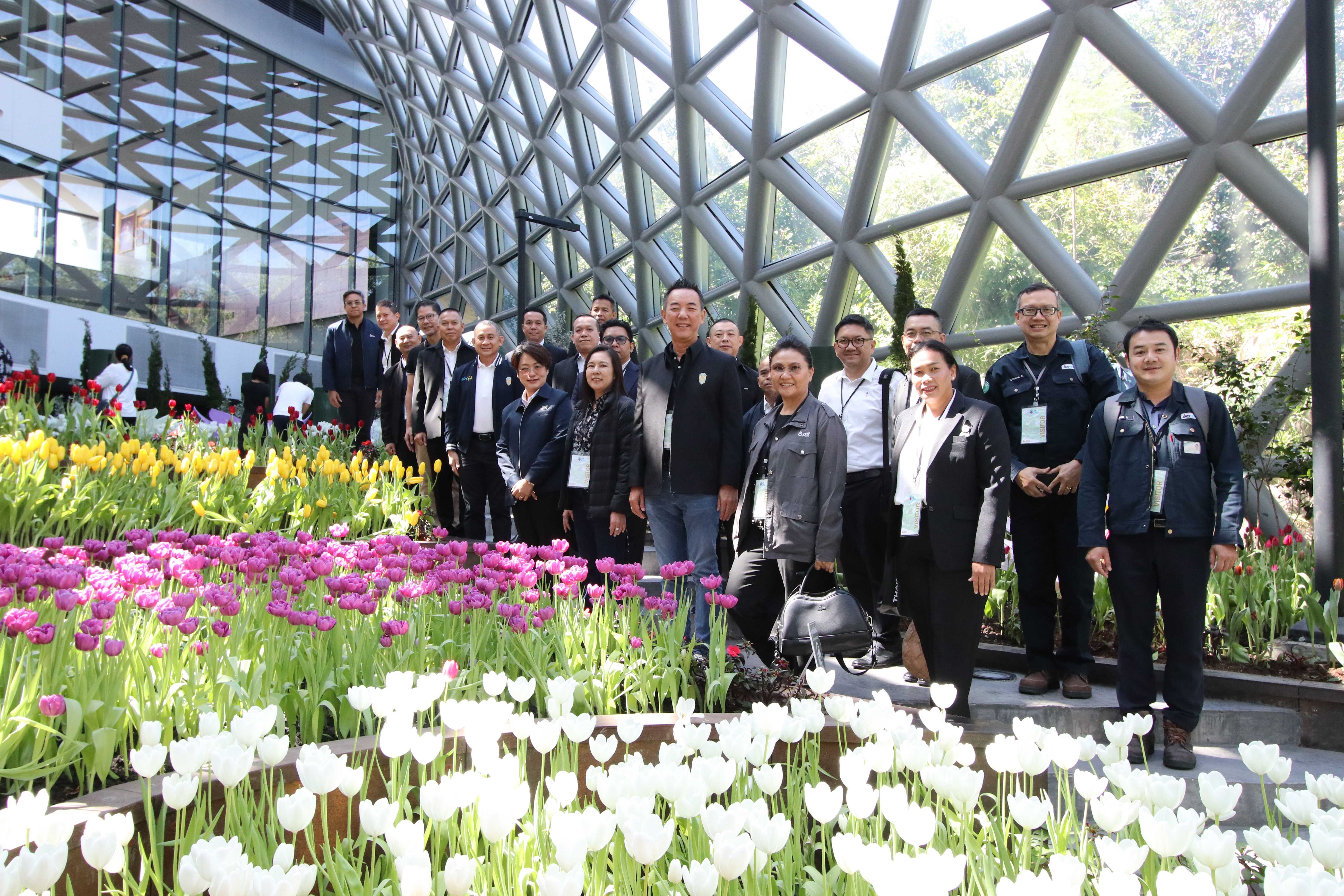 การประชุมรายงานข้อมูลของแต่ละบริษัทจัดขึ้น ณ อาคารนิทรรศน์พรรณพฤกษา ซึ่งเป็นสถานที่ที่เหมาะสมและสะท้อนถึงการเติบโตสู่การเป็นองค์กรที่ดำเนินงานตามนโยบาย ESG หลังจากนั้น คณะผู้เข้าร่วมได้เพลิดเพลินกับการชมดอกไม้เมืองหนาวภายในอาคาร ก่อนเดินทางไปเยี่ยมชมพื้นที่ปฏิบัติการของบริษัทอื่น ๆ ในกลุ่ม ปตท.