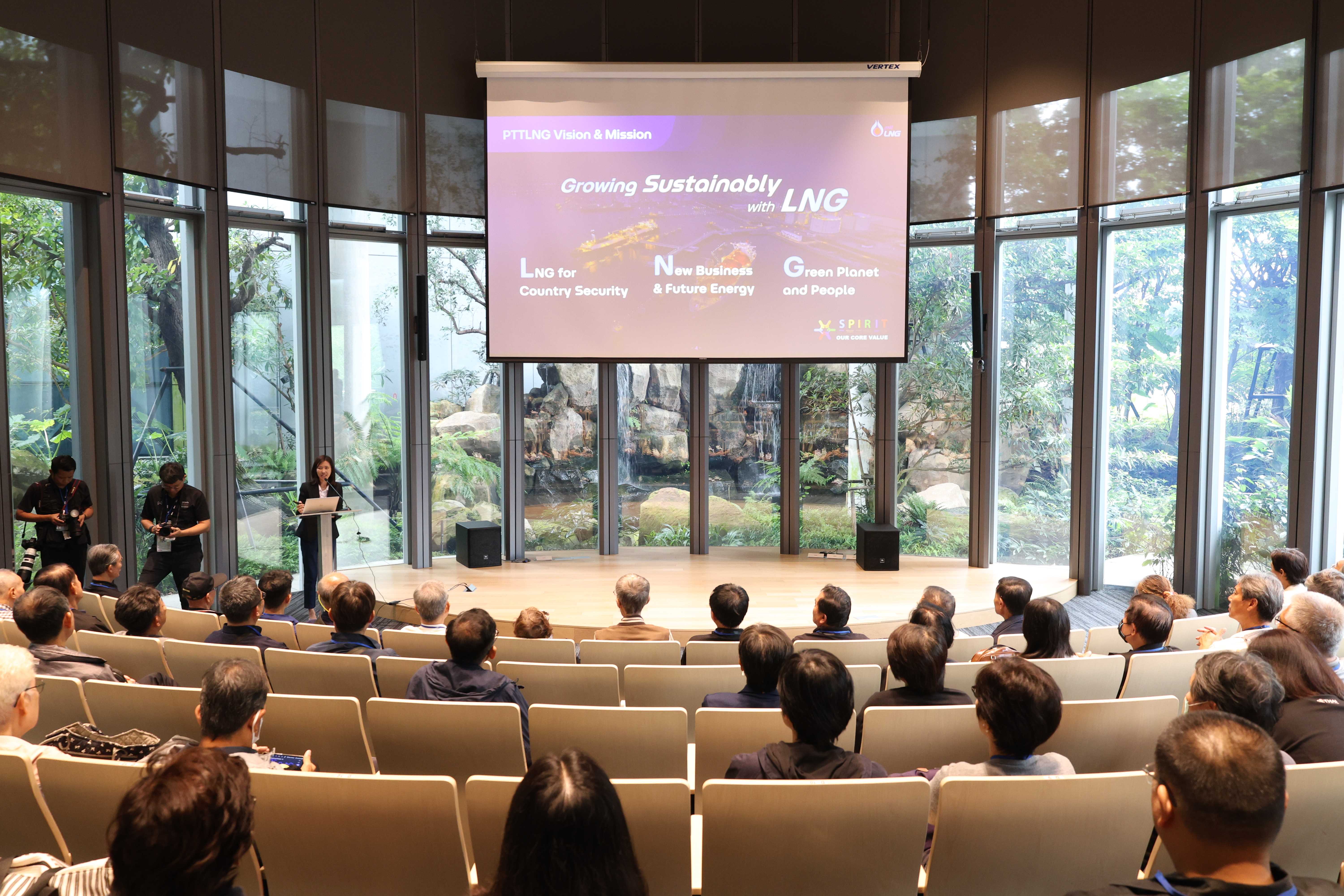 วันที่ 6 พฤศจิกายน พ.ศ. 2568 PTTLNG ให้การต้อนรับคณะผู้ถือหุ้น ผู้บริหารและพนักงานของบริษัท โกลบอล เพาเวอร์ ซินเนอร์ยี่ จำกัด (มหาชน) ในโอกาสเยี่ยมชม PTTLNG เพื่อศึกษาดูงานการดำเนินธุรกิจของ PTTLNG และให้เกิดความรู้ ความเข้าใจ ด้านการบริหารจัดการงานรับ-จ่ายก๊าซธรรมชาติเหลว ที่มาและการดำเนินด้านนวัตกรรมการนำพลังงานความเย็นจาก LNG ที่เหลือใช้มาพัฒนาให้เกิดประโยชน์สูงสุด รวมถึงการดำเนินงานตามภารกิจ โดยคำนึงถึงการมีส่วนรับผิดชอบต่อชุมชนและสังคมอย่างยั่งยืน โดยคณะฯได้รับฟังการบรรยายสรุป “ภาพรวมการดำเนินธุรกิจ PTTLNG” โดย คุณจุฑารัตน์ พิทักษ์วาทิน พนักงานประชาสัมพันธ์อาวุโส หลังจากนั้น คณะฯได้เข้าเยี่ยมชมพรรณไม้เมืองหนาวภายในอาคารนิทรรศน์พรรณพฤกษา ซึ่งใช้พลังงานความเย็นที่เหลือจากกระบวนการแปรสภาพก๊าซธรรมชาติเหลว (LNG) ในการควบคุมอุณหภูมิที่ 15 องศาเซลเซียส