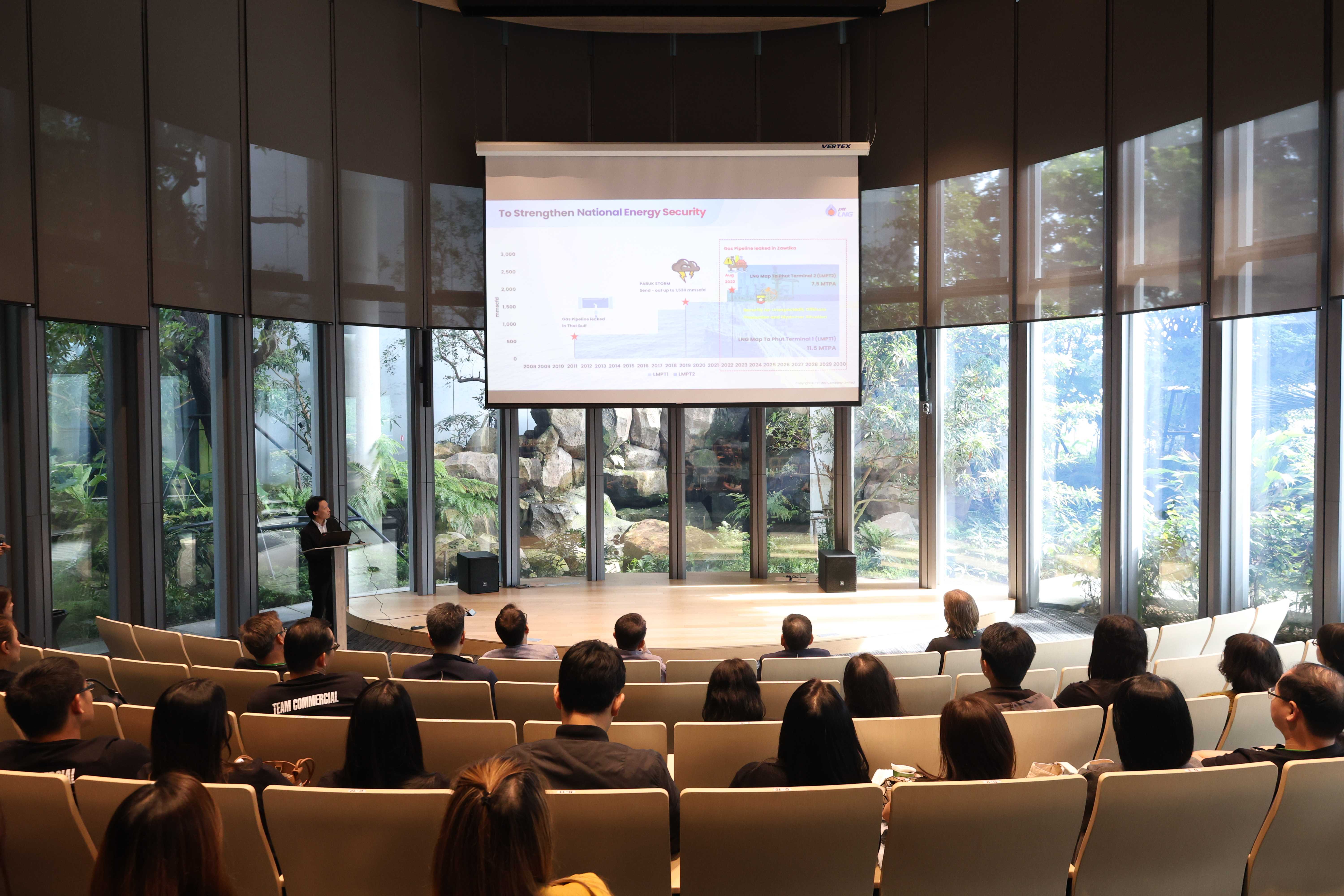 วันที่ 13 พฤศจิกายน พ.ศ. 2568 PTTLNG ให้การต้อนรับคณะผู้บริหารและพนักงานหน่วยงานการพาณิชย์ บริษัท โกลบอล เพาเวอร์ ซินเนอร์ยี่ จำกัด (มหาชน) (GPSC) ในโอกาสเข้าเยี่ยมชมและศึกษาดูงานการดำเนินธุรกิจของ PTTLNG เพื่อสร้างความรู้ความเข้าใจเกี่ยวกับการดำเนินงานของบริษัทฯ และนวัตกรรมการนำพลังงานความเย็นที่เหลือใช้จากก๊าซธรรมชาติเหลว (LNG) มาพัฒนาให้เกิดประโยชน์สูงสุด ควบคู่กับระบบการจัดการพลังงานและการอนุรักษ์สิ่งแวดล้อม โดยคณะฯ ได้รับฟังการบรรยายสรุป “ภาพรวมการดำเนินธุรกิจของบริษัทฯ” โดยคุณกิติภูมิ ตั้งวงษ์พิมุข ผู้จัดการส่วนสื่อสารองค์กรและกิจการเพื่อสังคม พร้อมทั้งเข้าเยี่ยมชมศูนย์ควบคุมการปฏิบัติการส่วนกลาง (Central Control Room) ซึ่งเป็นหัวใจสำคัญในการบริหารจัดการระบบปฏิบัติการทั้งหมดของบริษัทฯ หลังจากนั้น คณะฯได้เข้าเยี่ยมชมอาคารนิทรรศน์พรรณพฤกษา ที่จัดแสดงพรรณไม้เมืองหนาวโดยอาศัยพลังงานความเย็นจากกระบวนการแปรสภาพก๊าซธรรมชาติเหลว (LNG) ในการรักษาอุณหภูมิไว้ที่ 15 องศาเซลเซียส ซึ่งถือเป็นหนึ่งในตัวอย่างนวัตกรรมการใช้พลังงานอย่างมีประสิทธิภาพและยั่งยืน