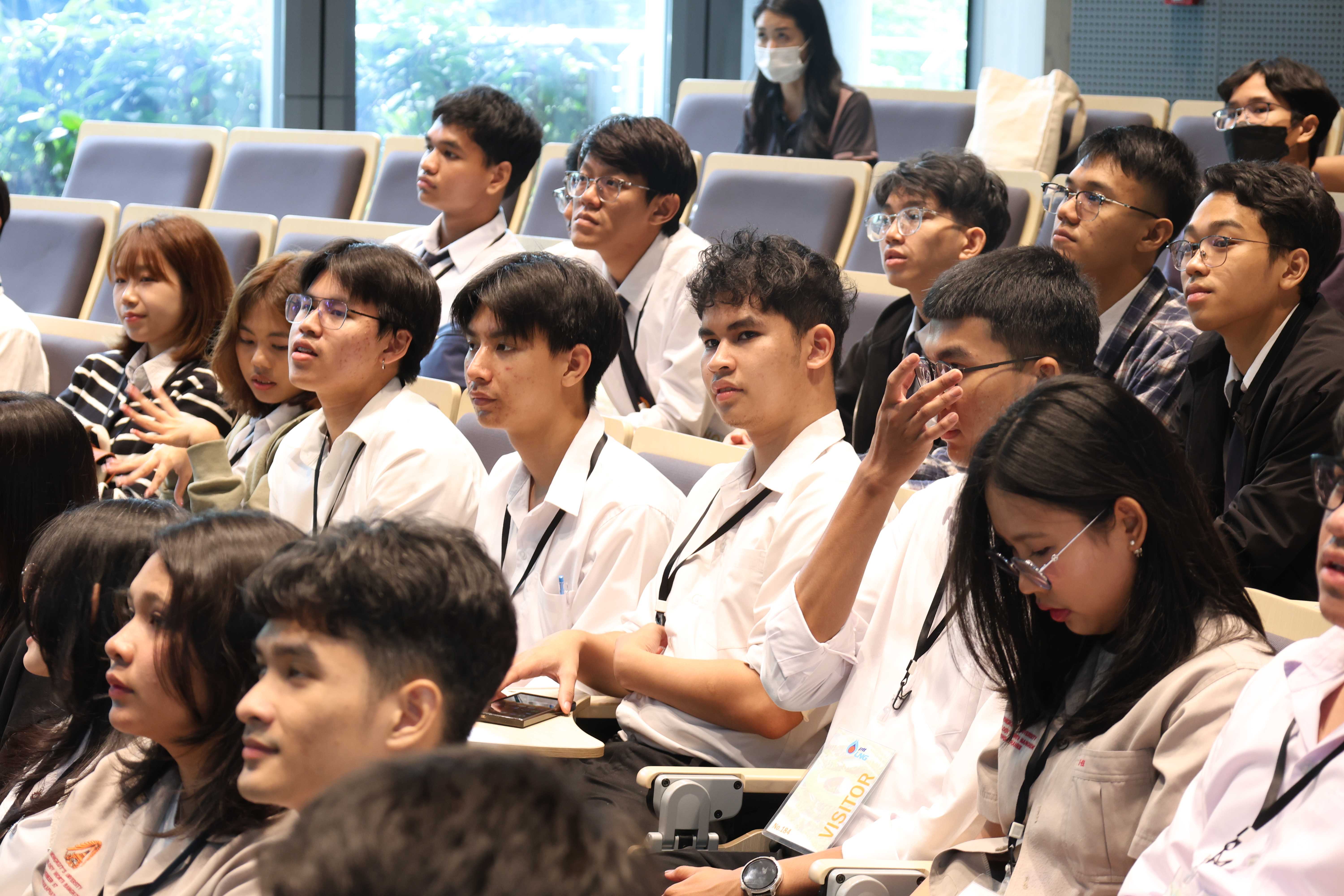 วันที่ 17 พฤศจิกายน พ.ศ. 2568 PTTLNG ให้การต้อนรับคณาจารย์และนักศึกษาภาควิชาวิศวกรรมไฟฟ้าและคอมพิวเตอร์ คณะวิศวกรรมศาสตร์ มหาวิทยาลัยเทคโนโลยี พระจอมเกล้าพระนครเหนือ ในโอกาสเข้าเยี่ยมชมและศึกษาดูงานการดำเนินธุรกิจของ PTTLNG เพื่อสร้างความรู้ความเข้าใจเกี่ยวกับการดำเนินงานของบริษัทฯ และนวัตกรรมการนำพลังงานความเย็นที่เหลือใช้จากก๊าซธรรมชาติเหลว (LNG) มาพัฒนาให้เกิดประโยชน์สูงสุด ควบคู่กับระบบการจัดการพลังงานและการอนุรักษ์สิ่งแวดล้อม โดยคณะฯได้รับฟังการบรรยายสรุป “ภาพรวมการดำเนินธุรกิจ PTTLNG” โดย คุณจุฑารัตน์ พิทักษ์วาทิน พนักงานประชาสัมพันธ์อาวุโส หลังจากนั้น คณะฯได้เข้าเยี่ยมชมพรรณไม้เมืองหนาวภายในอาคารนิทรรศน์พรรณพฤกษา ซึ่งใช้พลังงานความเย็นที่เหลือจากกระบวนการแปรสภาพก๊าซธรรมชาติเหลว (LNG) ในการควบคุมอุณหภูมิที่ 15 องศาเซลเซียส ซึ่งถือเป็นหนึ่งในตัวอย่างนวัตกรรมการใช้พลังงานอย่างมีประสิทธิภาพและยั่งยืน