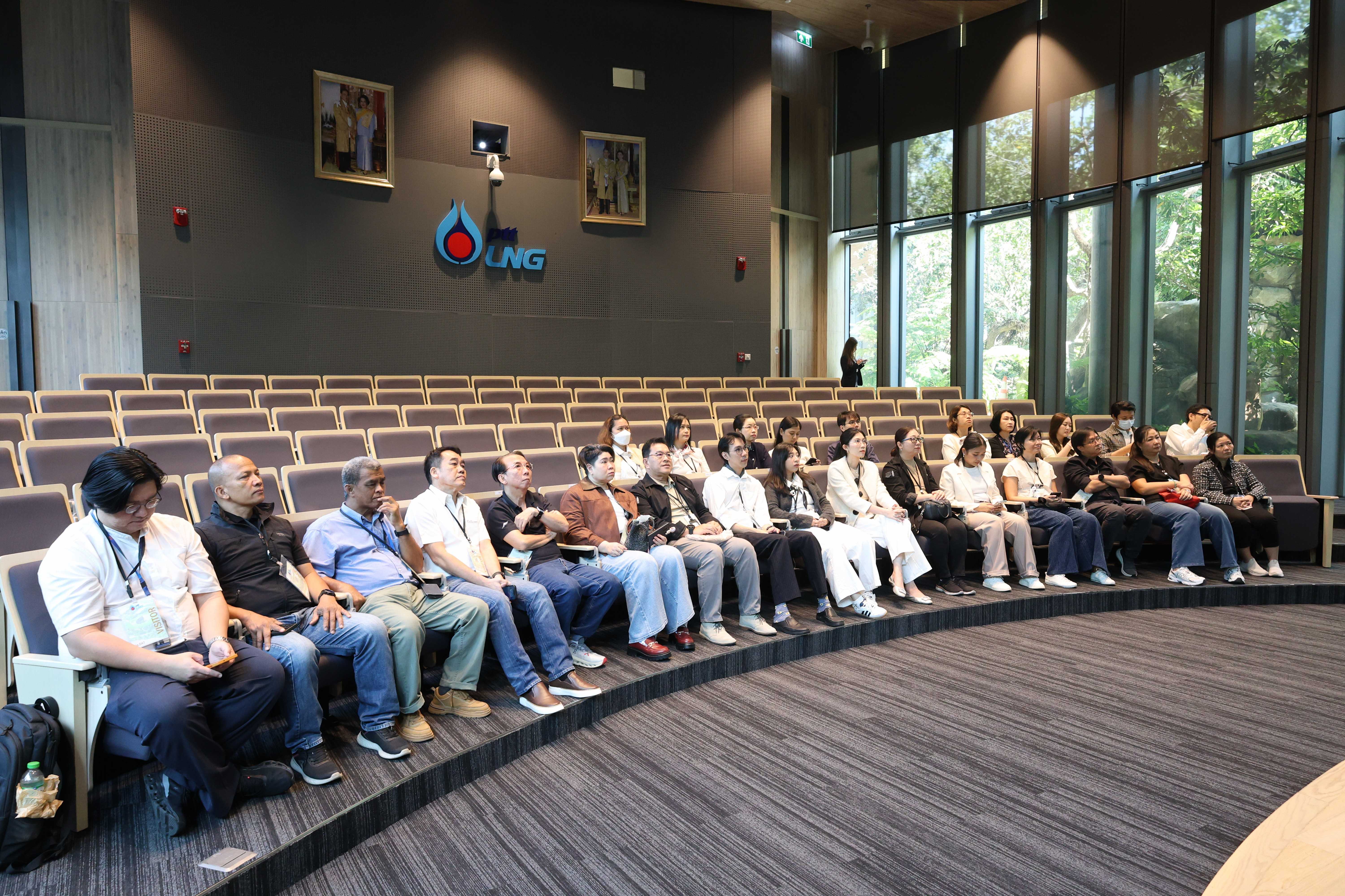 วันที่ 27 พฤศจิกายน พ.ศ. 2568 PTTLNG ให้การต้อนรับคณะผู้บริหารและพนักงานหน่วยงาน Center of People Excellence (H-PE) บริษัท พีทีที โกลบอล เคมีคอล จำกัด (มหาชน) เนื่องในโอกาสเยี่ยมชม PTTLNG เพื่อศึกษาดูงานการดำเนินธุรกิจของ PTTLNG และให้เกิดความรู้ ความเข้าใจ ด้านการบริหารจัดการงานรับ-จ่ายก๊าซธรรมชาติเหลว ที่มาและการดำเนินด้านนวัตกรรมการนำพลังงานความเย็นจาก LNG ที่เหลือใช้มาพัฒนาให้เกิดประโยชน์สูงสุด รวมถึงการดำเนินงานตามภารกิจ โดยคำนึงถึงการมีส่วนรับผิดชอบต่อชุมชนและสังคมอย่างยั่งยืน ทั้งนี้ คณะฯได้รับฟังการบรรยายสรุป “ภาพรวมการดำเนินธุรกิจ PTTLNG” โดย คุณนรา โตแย้ม ผู้จัดการส่วนบริการกลาง จัดหาและคลังพัสดุ พร้อมทั้งเยี่ยมชมศูนย์ควบคุมการปฏิบัติการส่วนกลาง (Central Control Room) ซึ่งเป็นหัวใจสำคัญในการบริหารจัดการระบบปฏิบัติการทั้งหมดของบริษัทฯ หลังจากนั้น คณะฯได้เข้าเยี่ยมชมอาคารนิทรรศน์พรรณพฤกษา ที่จัดแสดงพรรณไม้เมืองหนาวโดยอาศัยพลังงานความเย็นจากกระบวนการแปรสภาพก๊าซธรรมชาติเหลว (LNG) ในการรักษาอุณหภูมิไว้ที่ 15 องศาเซลเซียส ซึ่งถือเป็นหนึ่งในตัวอย่างนวัตกรรมการใช้พลังงานอย่างมีประสิทธิภาพและยั่งยืน