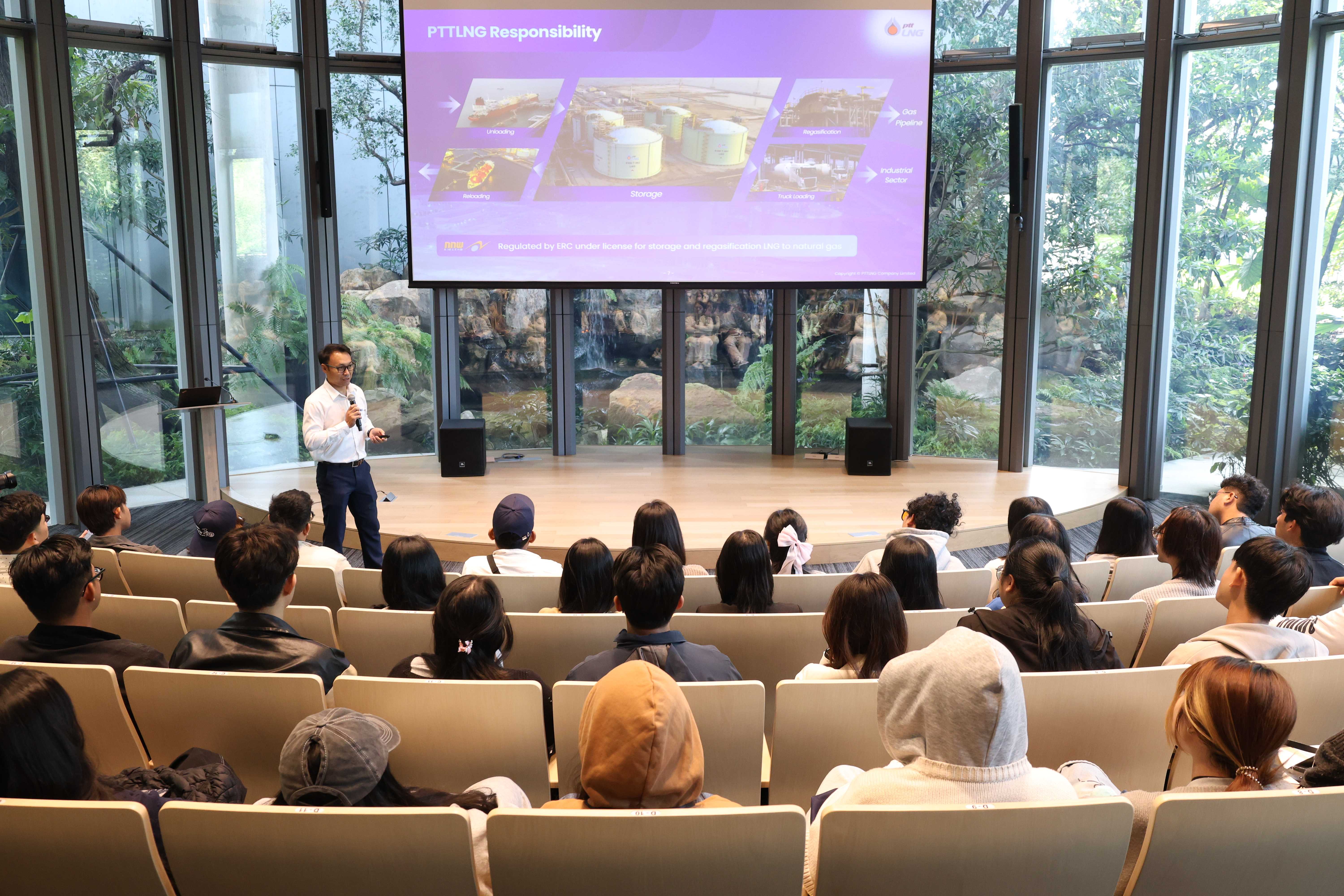 วันที่ 28 พฤศจิกายน พ.ศ. 2568 PTTLNG ให้การต้อนรับคณะเยาวชนอาเซียนที่เข้าร่วมโครงการ OR Seeding the Future ASEAN Camp 2025 ในโอกาสเยี่ยมชม PTTLNG เพื่อศึกษาดูงานการดำเนินธุรกิจของ PTTLNG และให้เกิดความรู้ ความเข้าใจ ด้านการบริหารจัดการงานรับ-จ่ายก๊าซธรรมชาติเหลว ที่มาและการดำเนินด้านนวัตกรรมการนำพลังงานความเย็นจาก LNG ที่เหลือใช้มาพัฒนาให้เกิดประโยชน์สูงสุด รวมถึงการดำเนินงานตามภารกิจ โดยคำนึงถึงการมีส่วนรับผิดชอบต่อชุมชนและสังคมอย่างยั่งยืน ทั้งนี้ คณะฯได้รับฟังการบรรยายสรุป “ภาพรวมการดำเนินธุรกิจ PTTLNG” โดย คุณเอกรินทร์ บุญสนอง พนักงานปฏิบัติการท่าเรือ หลังจากนั้น คณะฯได้เข้าเยี่ยมชมพรรณไม้เมืองหนาวภายในอาคารนิทรรศน์พรรณพฤกษา ซึ่งใช้พลังงานความเย็นที่เหลือจากกระบวนการแปรสภาพก๊าซธรรมชาติเหลว (LNG) ในการควบคุมอุณหภูมิที่ 15 องศาเซลเซียส ซึ่งถือเป็นหนึ่งในตัวอย่างนวัตกรรมการใช้พลังงานอย่างมีประสิทธิภาพและยั่งยืน