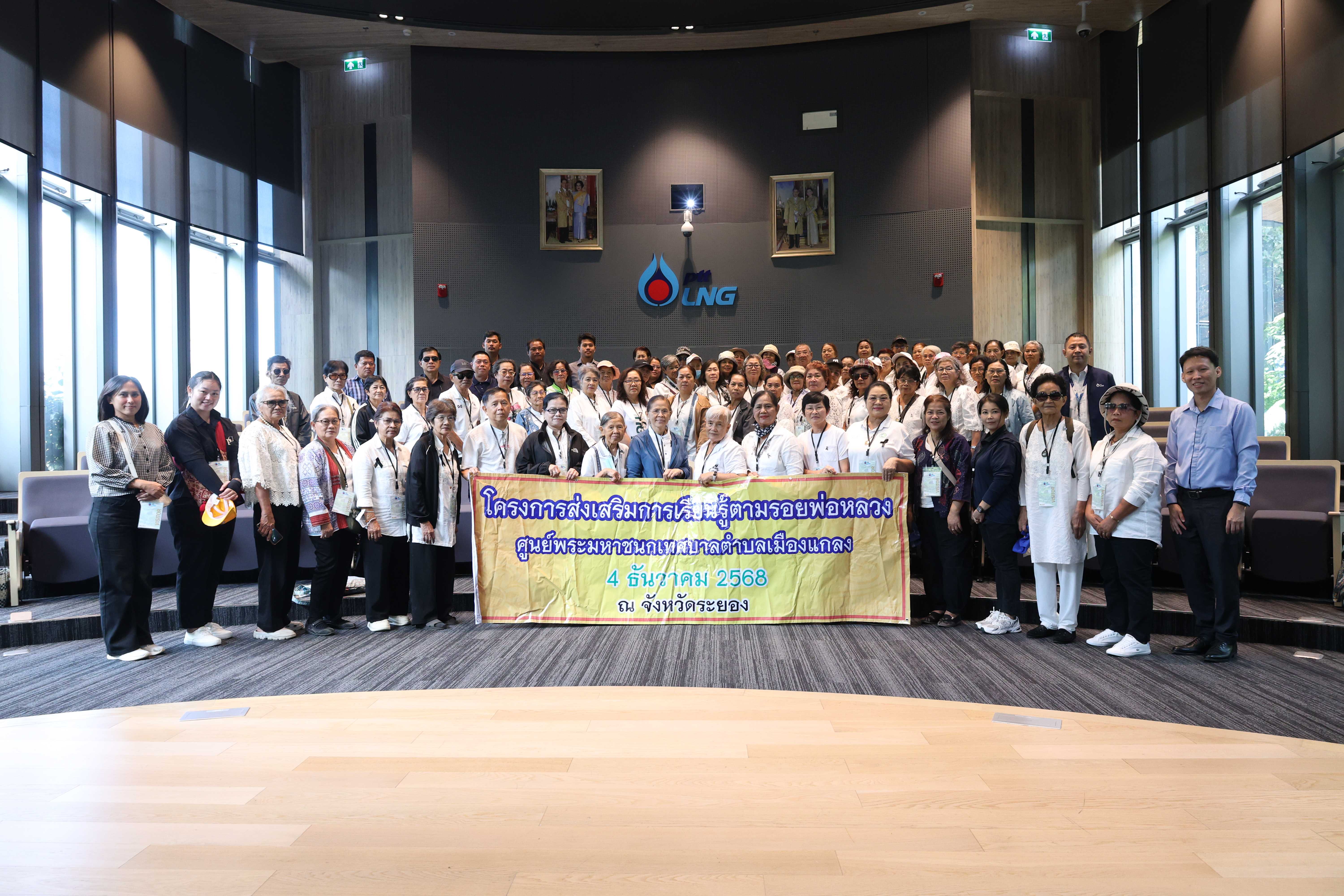 วันที่ 4 ธันวาคม พ.ศ. 2568 PTTLNG ให้การต้อนรับคณะผู้เข้าร่วมโครงการส่งเสริมการเรียนรู้ตามรอยพ่อหลวง ศูนย์พระมหาชนกเทศบาลตำบลเมืองแกลง เนื่องในโอกาสเยี่ยมชม PTTLNG เพื่อศึกษาดูงานการดำเนินธุรกิจของ PTTLNG และให้เกิดความรู้ ความเข้าใจ ด้านการบริหารจัดการงานรับ-จ่ายก๊าซธรรมชาติเหลว ที่มาและการดำเนินด้านนวัตกรรมการนำพลังงานความเย็นจาก LNG ที่เหลือใช้มาพัฒนาให้เกิดประโยชน์สูงสุด รวมถึงการดำเนินงานตามภารกิจ โดยคำนึงถึงการมีส่วนรับผิดชอบต่อชุมชนและสังคมอย่างยั่งยืน ทั้งนี้ คณะฯได้รับฟังการบรรยายสรุป “ภาพรวมการดำเนินธุรกิจ PTTLNG” โดย คุณกิติภูมิ ตั้งวงษ์พิมุข ผู้จัดการส่วนสื่อสารองค์กรและกิจการเพื่อสังคม หลังจากนั้น คณะฯได้เข้าเยี่ยมชมอาคารนิทรรศน์พรรณพฤกษา ที่จัดแสดงพรรณไม้เมืองหนาวโดยอาศัยพลังงานความเย็นจากกระบวนการแปรสภาพก๊าซธรรมชาติเหลว (LNG) ในการรักษาอุณหภูมิไว้ที่ 15 องศาเซลเซียส ซึ่งถือเป็นหนึ่งในตัวอย่างนวัตกรรมการใช้พลังงานอย่างมีประสิทธิภาพและยั่งยืน