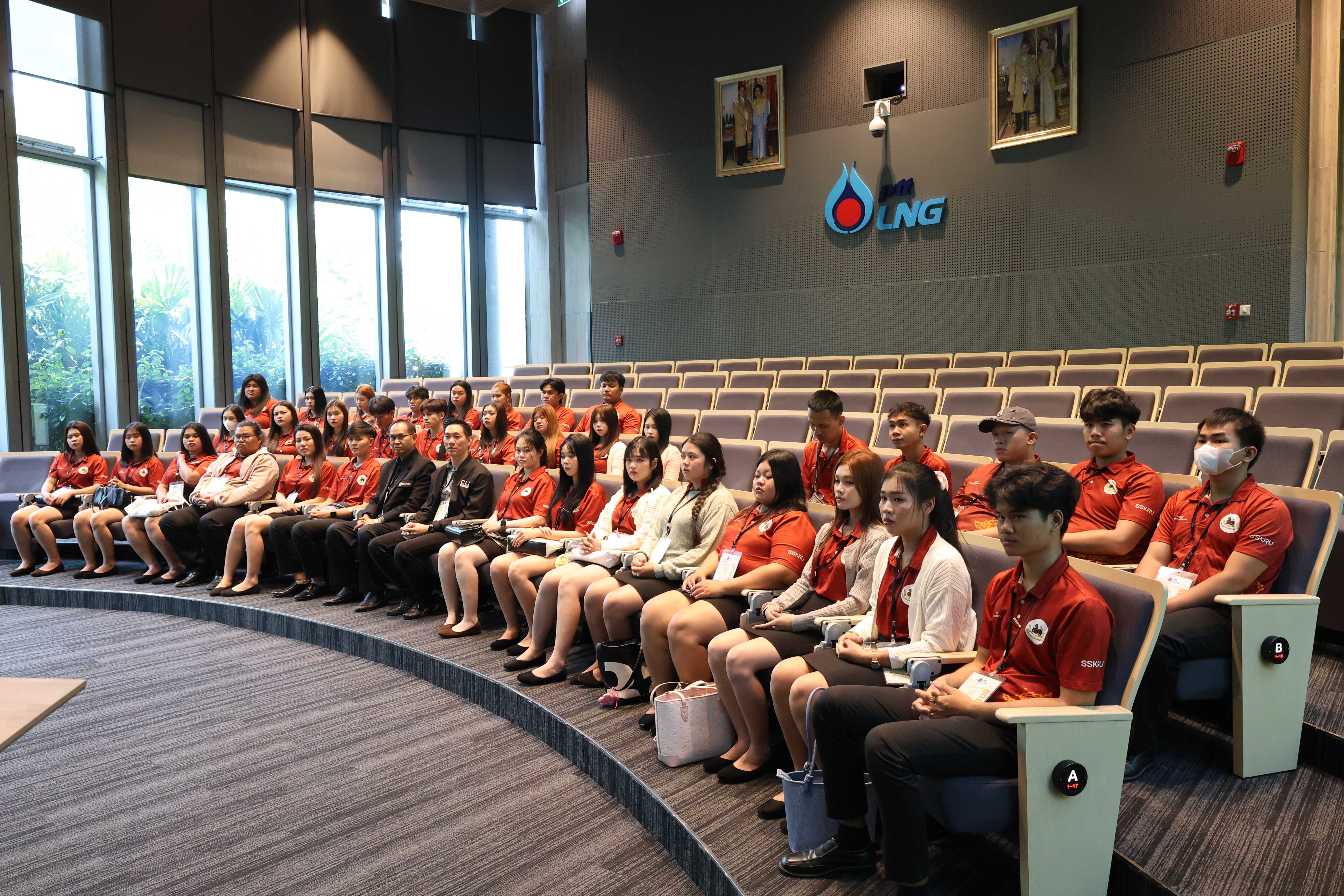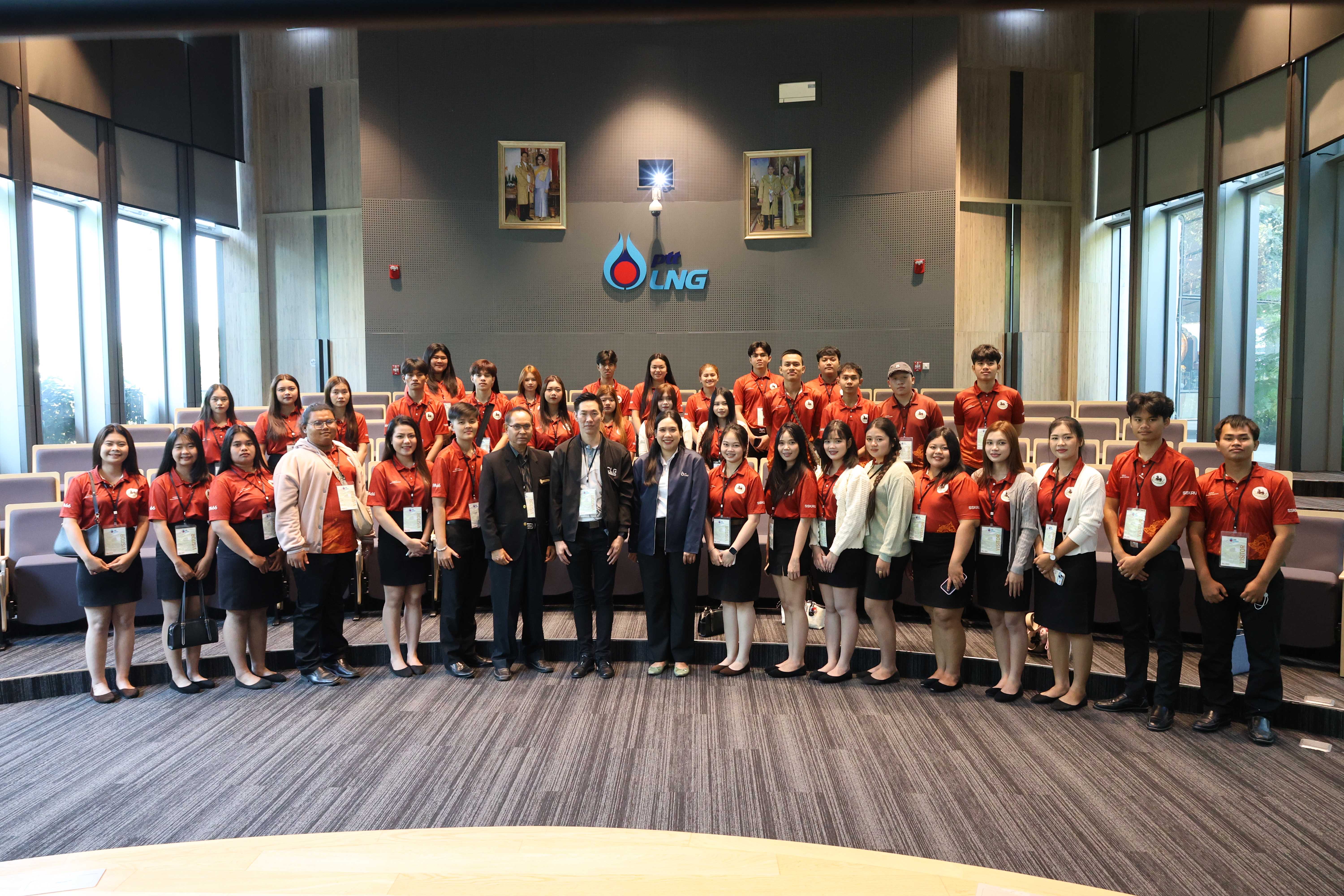 วันที่ 8 ธันวาคม พ.ศ. 2568 PTTLNG ให้การต้อนรับคณาจารย์และนักศึกษาสาขาวิชารัฐประศาสนศาสตร์ วิทยาลัยกฎหมายและการปกครอง มหาวิทยาลัยราชภัฏศรีสะเกษ ในโอกาสเยี่ยมชม PTTLNG เพื่อศึกษาดูงานการดำเนินธุรกิจของ PTTLNG และให้เกิดความรู้ ความเข้าใจ ด้านการบริหารจัดการงานรับ-จ่ายก๊าซธรรมชาติเหลว ที่มาและการดำเนินด้านนวัตกรรมการนำพลังงานความเย็นจาก LNG ที่เหลือใช้มาพัฒนาให้เกิดประโยชน์สูงสุด รวมถึงการดำเนินงานตามภารกิจ โดยคำนึงถึงการมีส่วนรับผิดชอบต่อชุมชนและสังคมอย่างยั่งยืน ทั้งนี้ คณะฯได้รับฟังการบรรยายสรุป “ภาพรวมการดำเนินธุรกิจ PTTLNG” โดย คุณวรัญญู วรธงไชย พนักงานประชาสัมพันธ์ หลังจากนั้น คณะฯได้เข้าเยี่ยมชมพรรณไม้เมืองหนาวภายในอาคารนิทรรศน์พรรณพฤกษา ซึ่งใช้พลังงานความเย็นที่เหลือจากกระบวนการแปรสภาพก๊าซธรรมชาติเหลว (LNG) ในการควบคุมอุณหภูมิที่ 15 องศาเซลเซียส