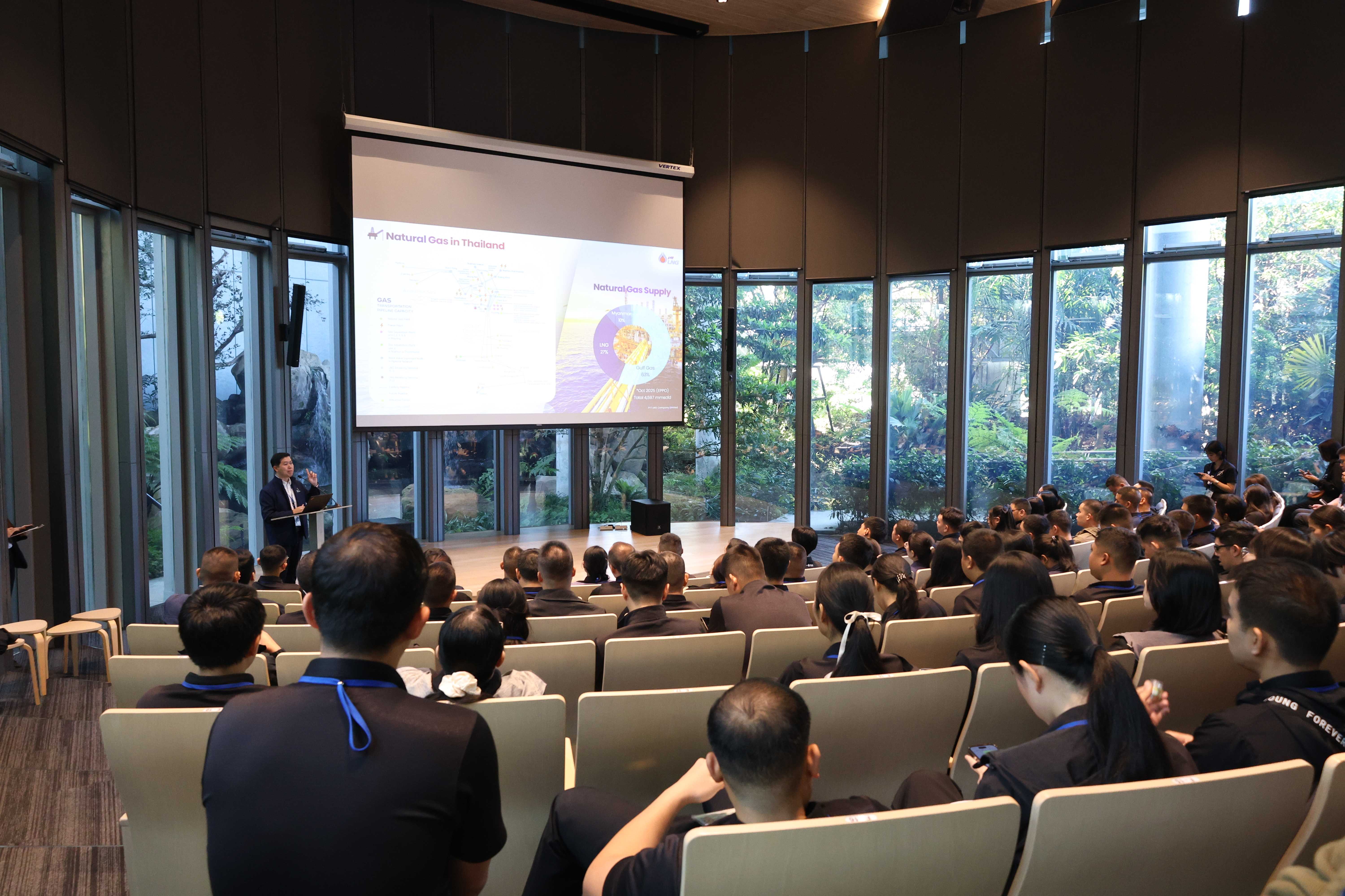 วันที่ 8 มกราคม พ.ศ. 2569 PTTLNG ให้การต้อนรับคณะข้าราชการตำรวจชั้นสัญญาบัตรยศร้อยตำรวจเอก ตำแหน่ง รองสารวัตร หรือเทียบเท่า ที่ร่วมอบรมหลักสูตรสารวัตร รุ่นที่ 264 วิทยาลัยการตำรวจ ในโอกาสเข้าเยี่ยมชมและศึกษาดูงานการดำเนินธุรกิจของ PTTLNG เพื่อศึกษาดูงานการดำเนินธุรกิจของ PTTLNG และให้เกิดความรู้ ความเข้าใจ ด้านการบริหารจัดการงานรับ-จ่ายก๊าซธรรมชาติเหลว ที่มาและการดำเนินด้านนวัตกรรมการนำพลังงานความเย็นจาก LNG ที่เหลือใช้มาพัฒนาให้เกิดประโยชน์สูงสุด รวมถึงการดำเนินงานตามภารกิจ โดยคำนึงถึงการมีส่วนรับผิดชอบต่อชุมชนและสังคมอย่างยั่งยืน โดยคณะฯได้รับฟังการบรรยายสรุป “ภาพรวมการดำเนินธุรกิจ PTTLNG” โดย คุณนฤนาถ หุ่นเจริญ ผู้จัดการส่วนทรัพยากรบุคคลและพัฒนาองค์กร หลังจากนั้น คณะฯได้เข้าเยี่ยมชมอาคารนิทรรศน์พรรณพฤกษา ที่จัดแสดงพรรณไม้เมืองหนาวโดยอาศัยพลังงานความเย็นจากกระบวนการแปรสภาพก๊าซธรรมชาติเหลว (LNG) ในการรักษาอุณหภูมิไว้ที่ 15 องศาเซลเซียส ซึ่งถือเป็นหนึ่งในตัวอย่างนวัตกรรมการใช้พลังงานอย่างมีประสิทธิภาพและยั่งยืน
